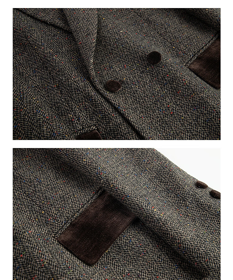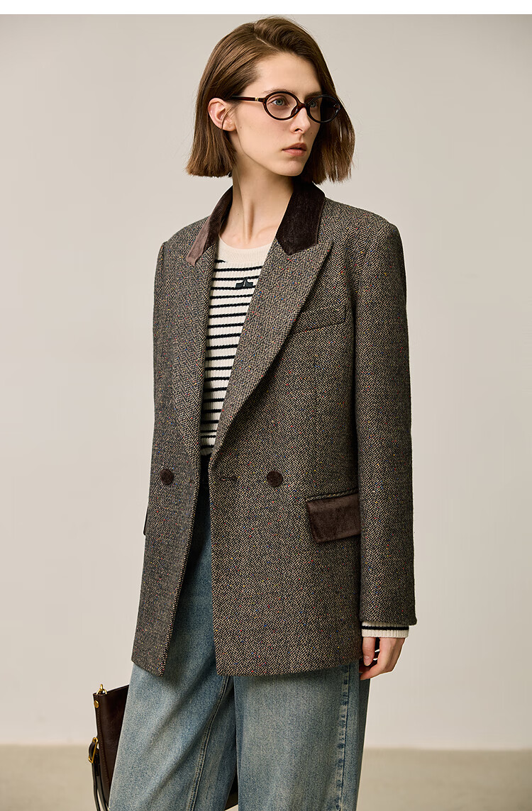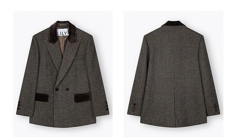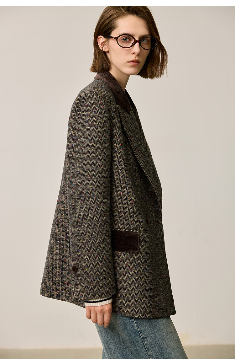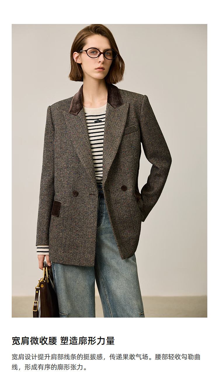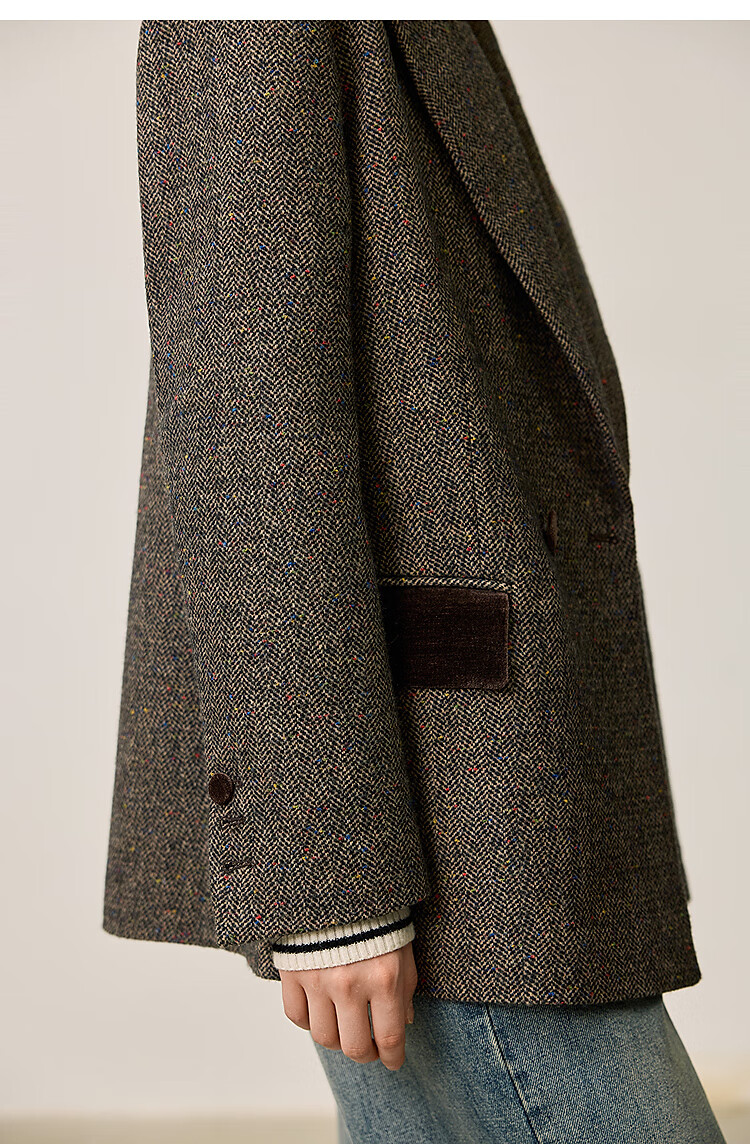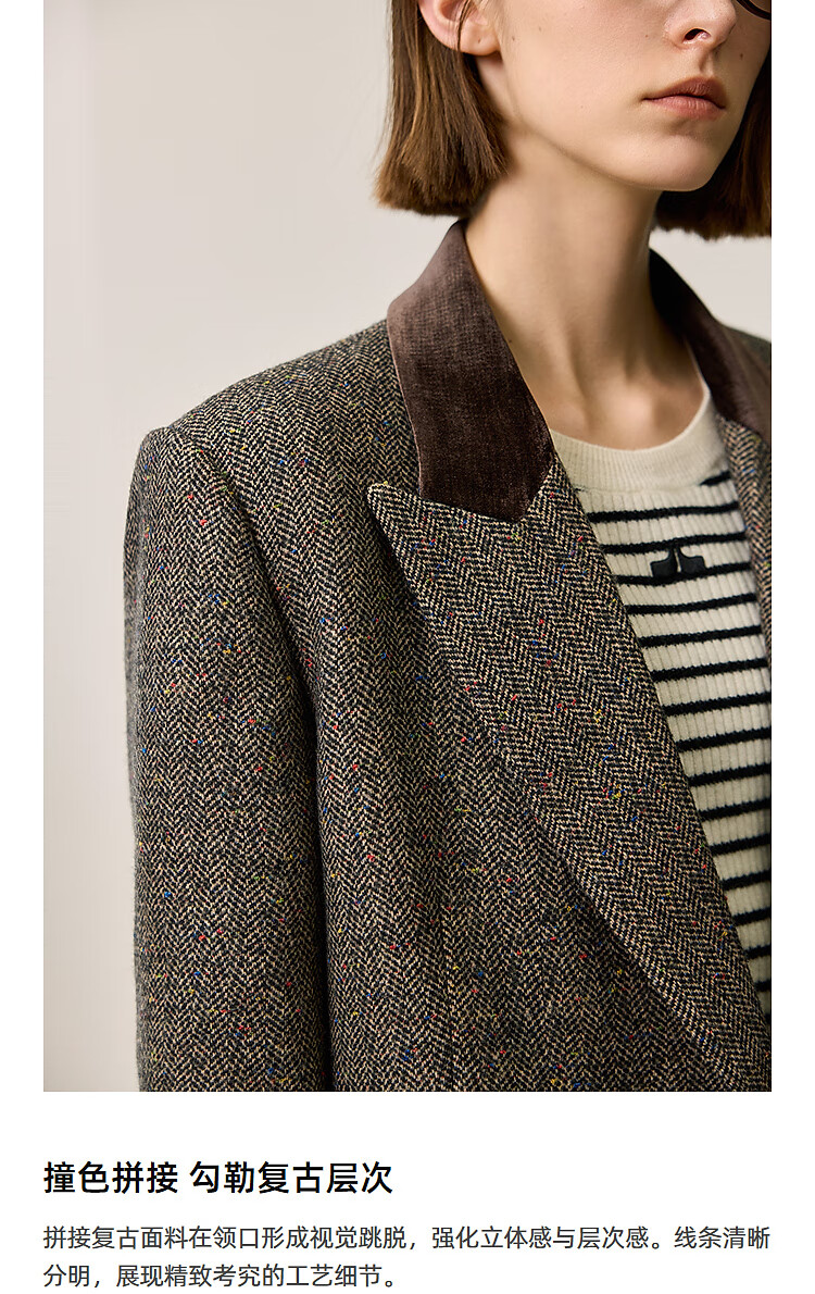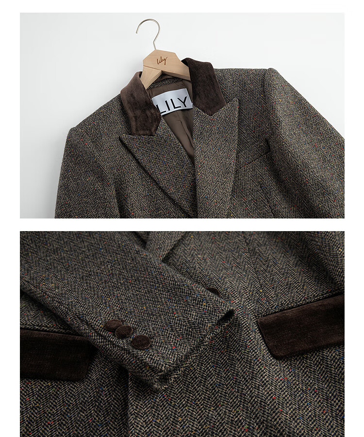 LILY2025 new winter style wool retro Maillard colorful dot velvet waist temperament commuter suit jacket for women 710 coffee M