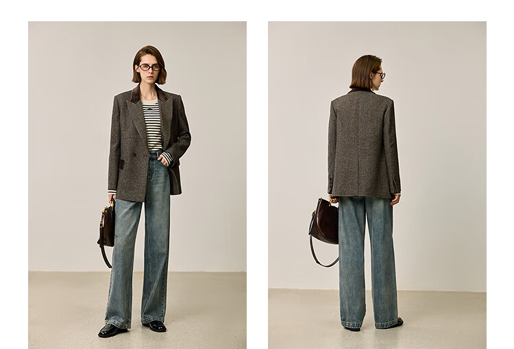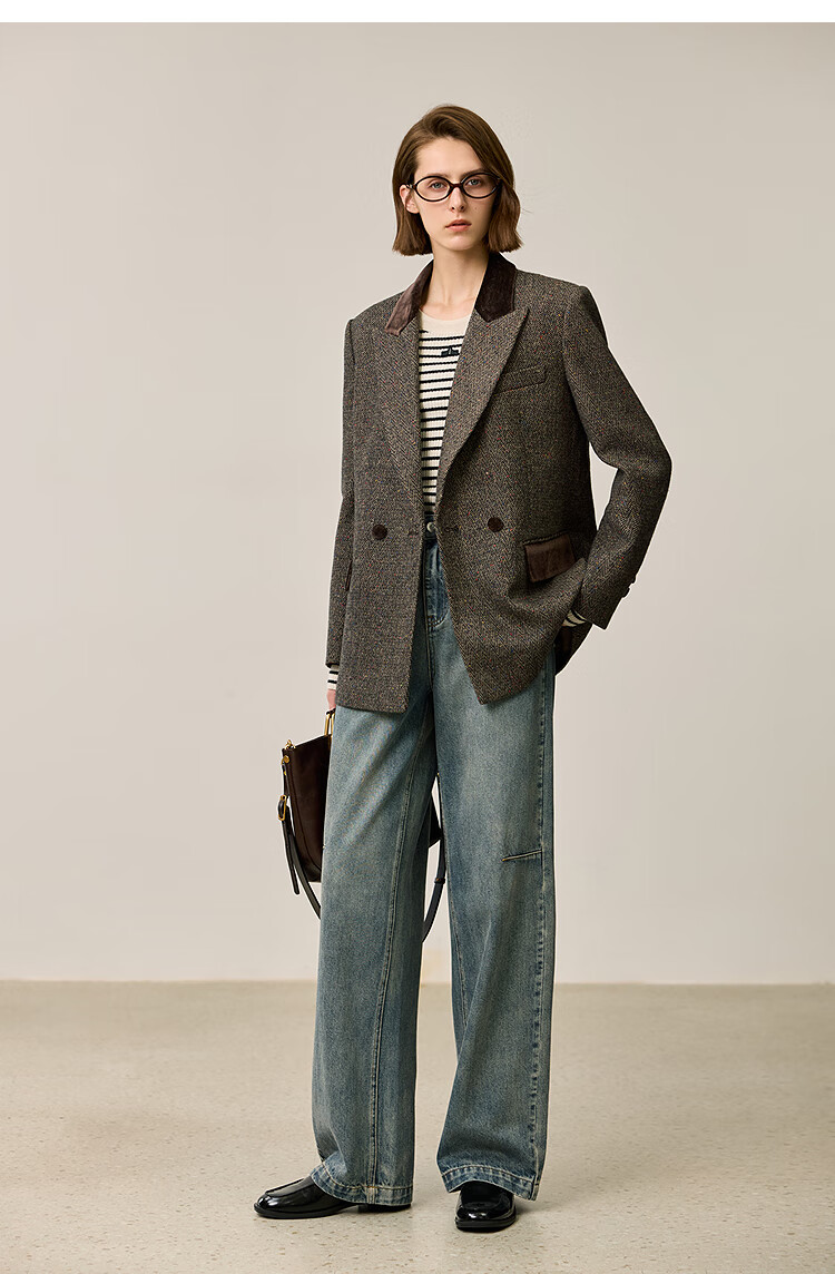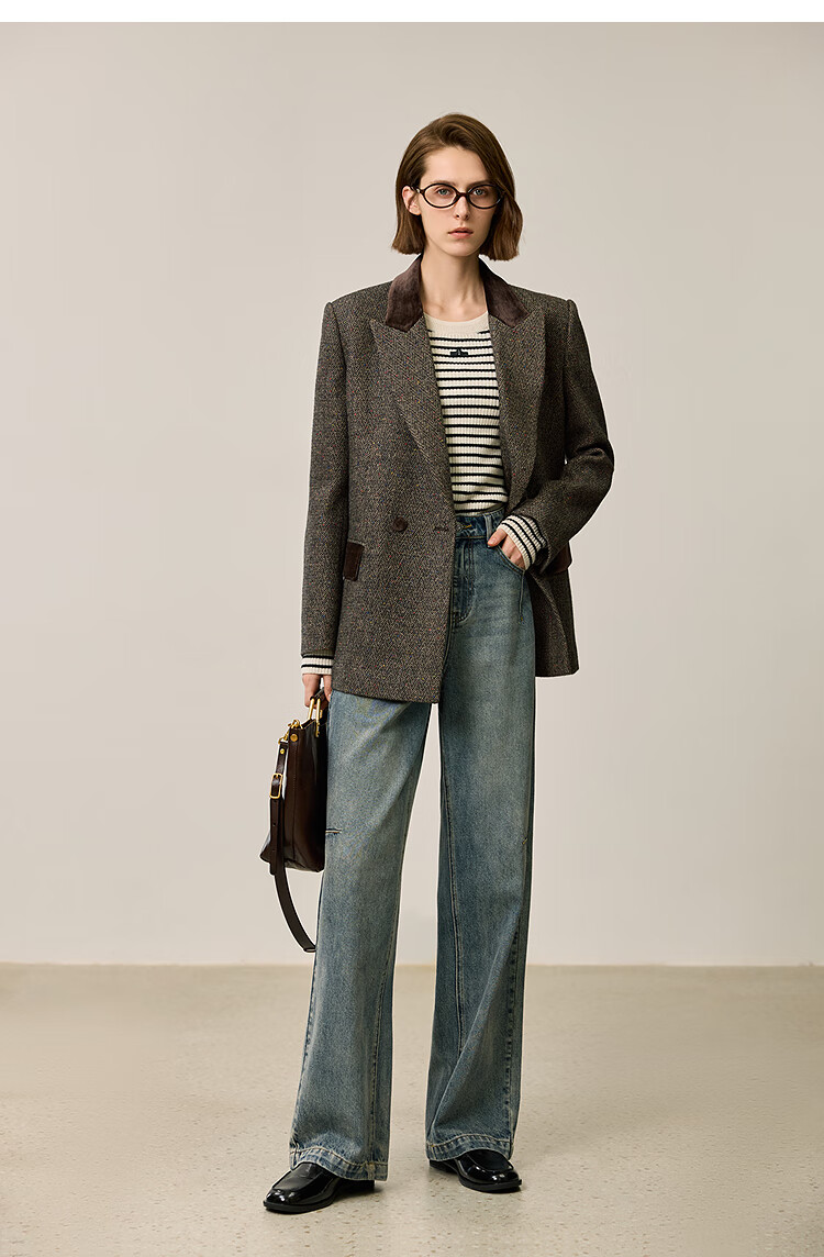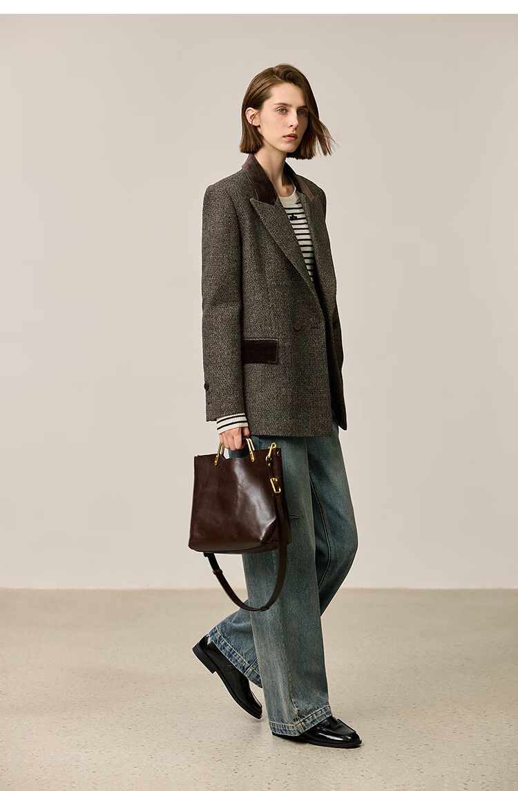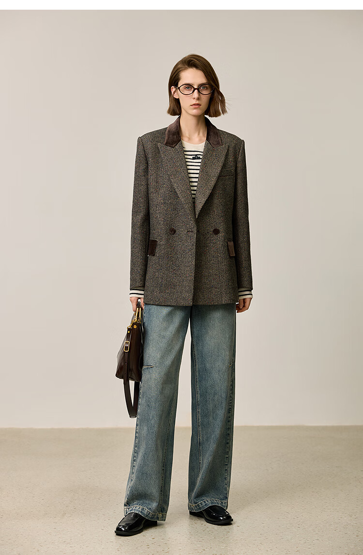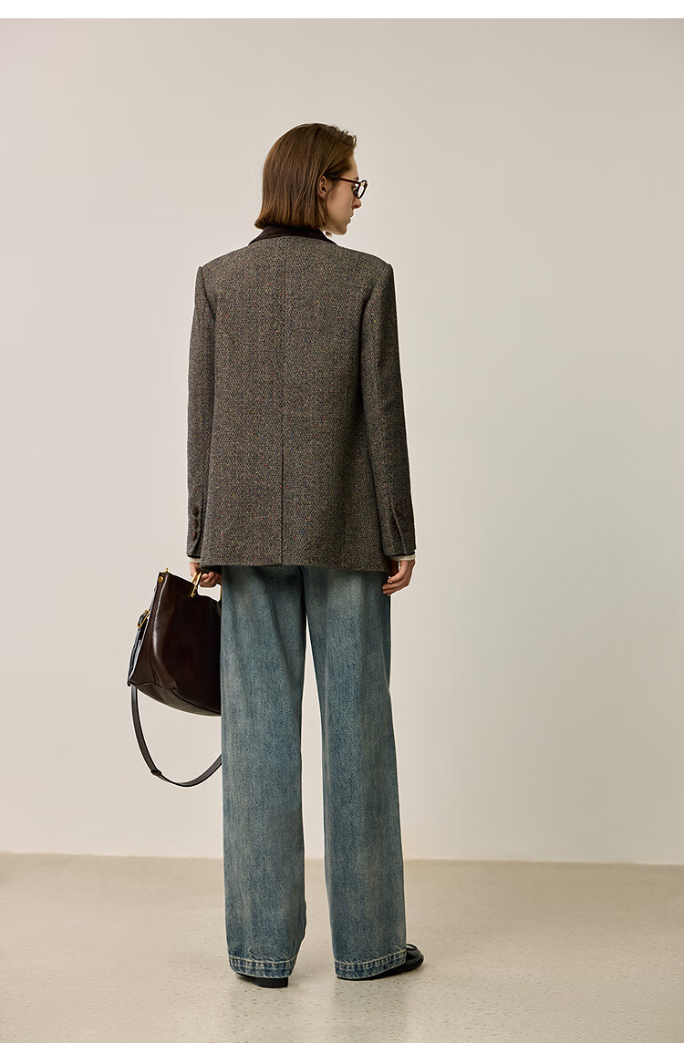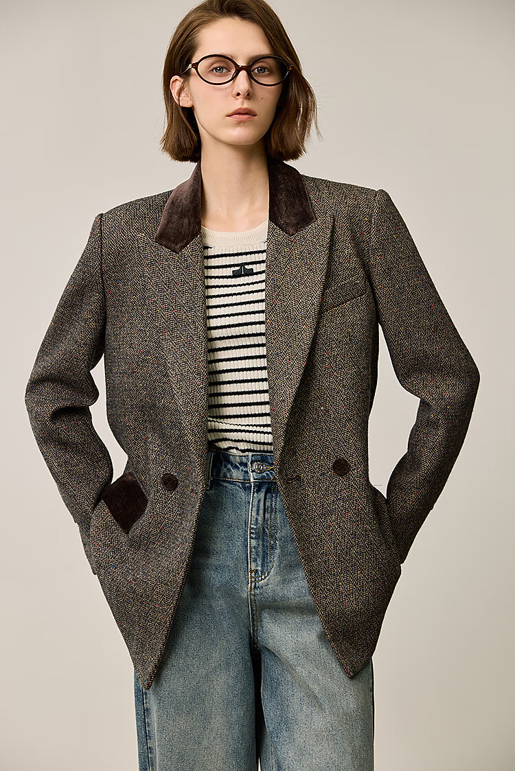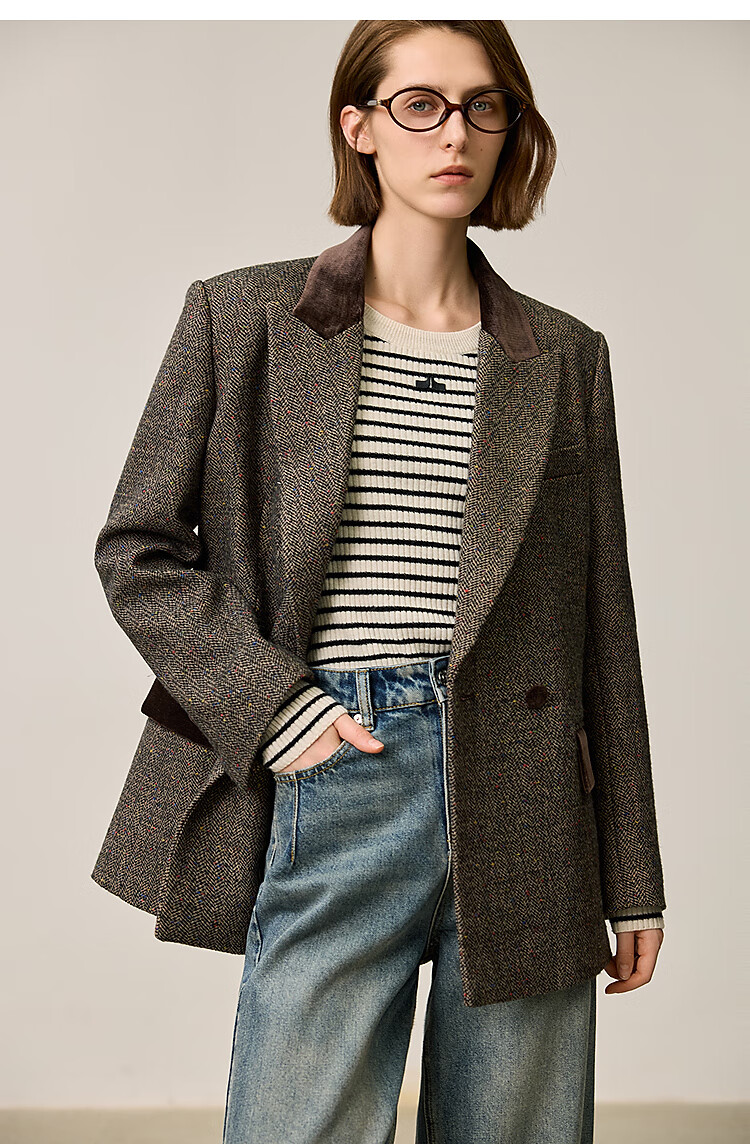 LILY2025 new winter style wool retro Maillard colorful dot velvet waist temperament commuter suit jacket for women 710 coffee M