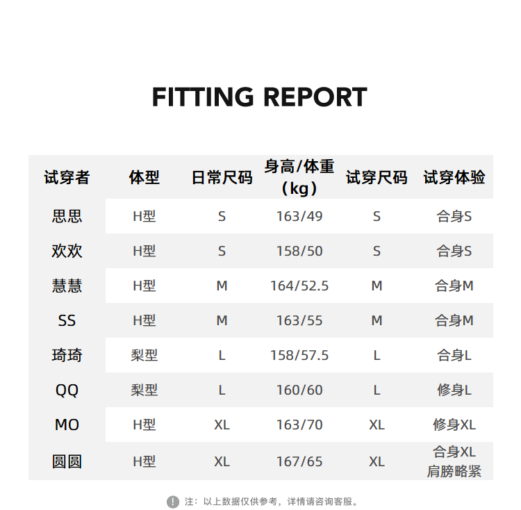 China (cm) 160-165/84-86 165-170 / 88-90 167-172 / 92-96 168-173 / 98-102 170-176 / 106-110