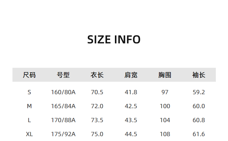 China(cm) 72-76 76-81 81-87 87-93 93-98