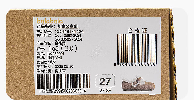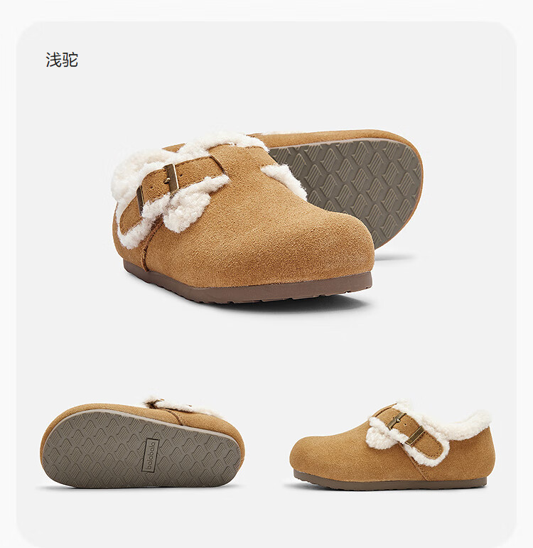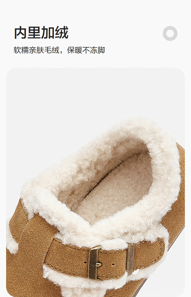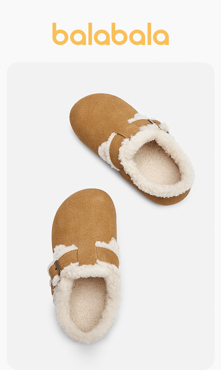 Balabala Children's Shoes Children's Birkenstock Shoes Girls' Slippers Plus Velvet 2025 New Autumn and Winter Shoes Comfortable, Tide and Non-Slip Camel 50001 33 (foot length 20.3-20.7/inner length 21.7)