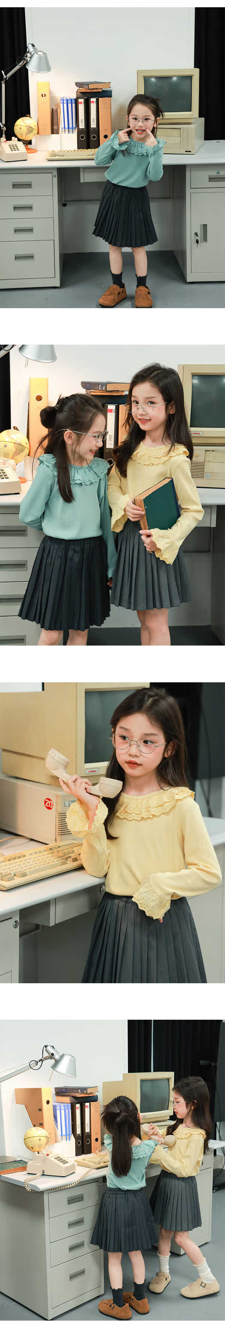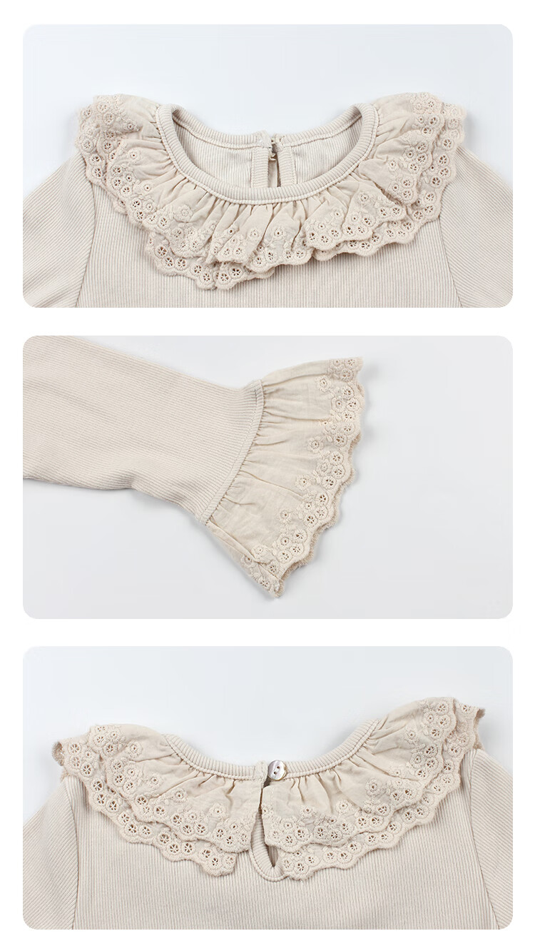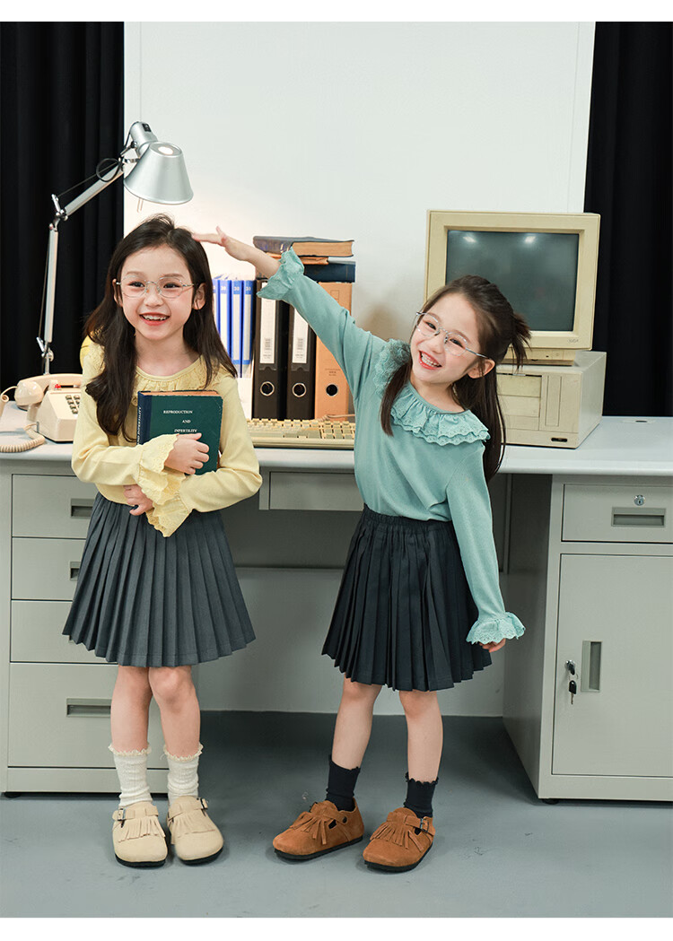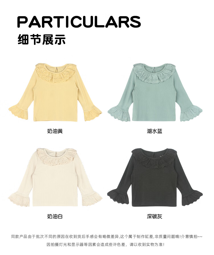 UTOUTO Big Ear Elephant Girls Lace Fold Collar Top 2025 Autumn Slim Fit Versatile Top Lake Blue 140
