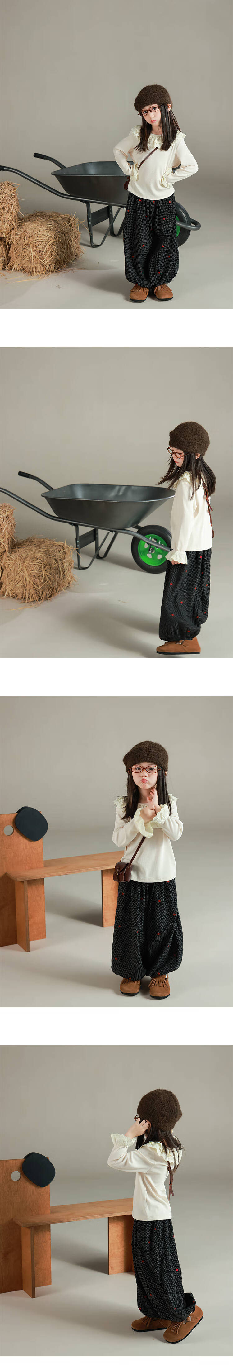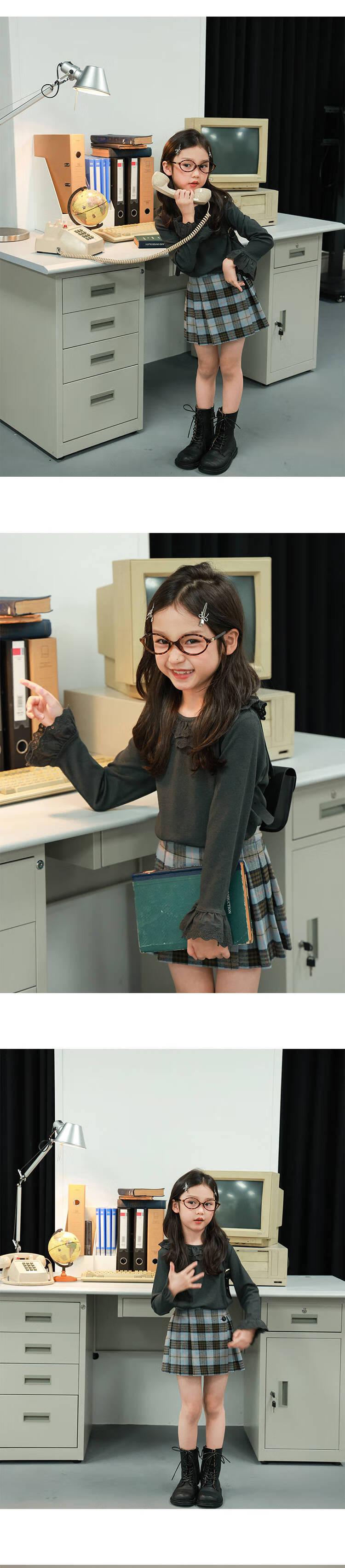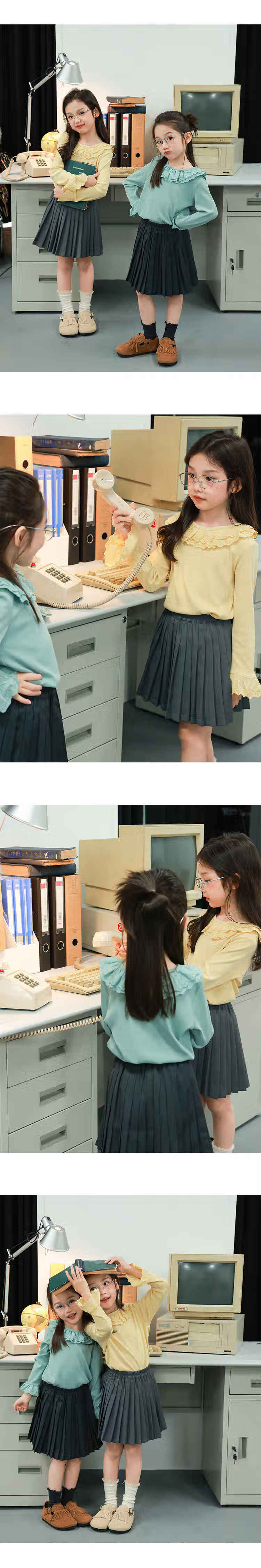 UTOUTO Big Ear Elephant Girls Lace Fold Collar Top 2025 Autumn Slim Fit Versatile Top Lake Blue 140