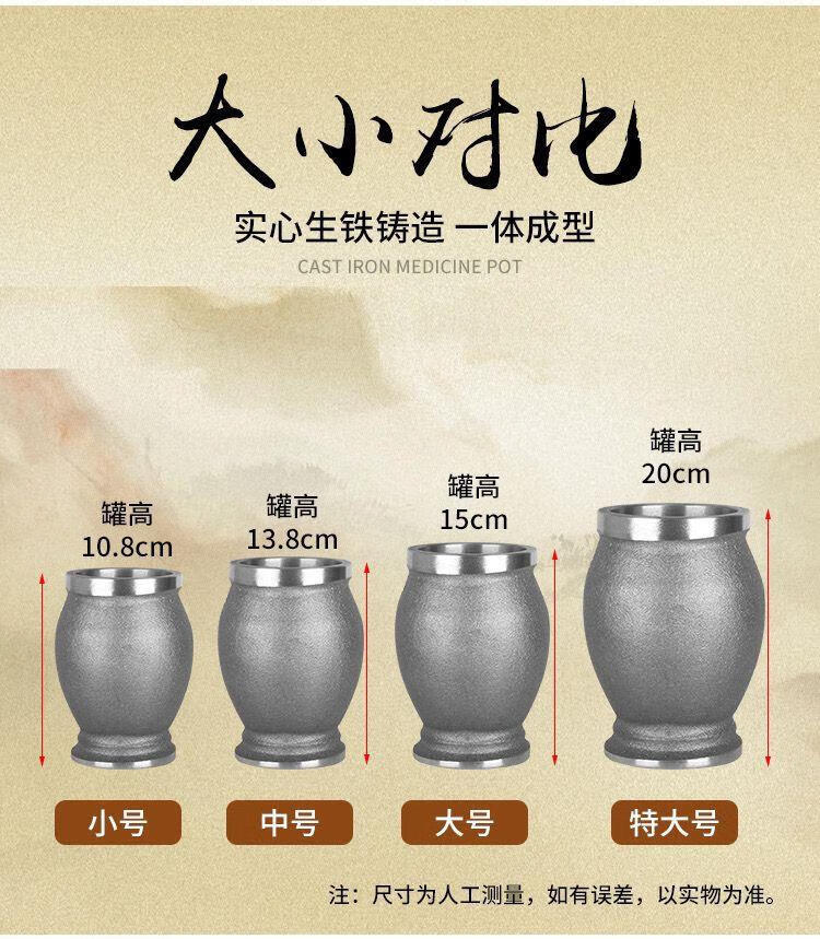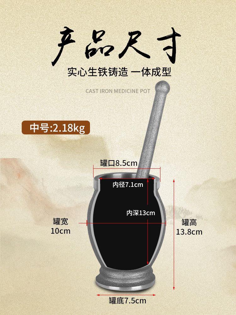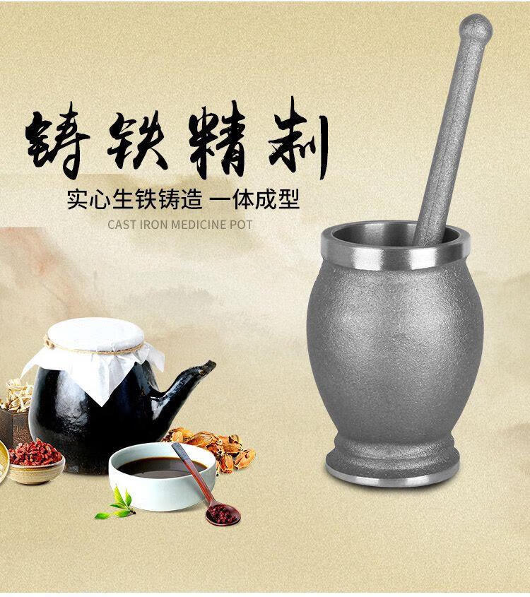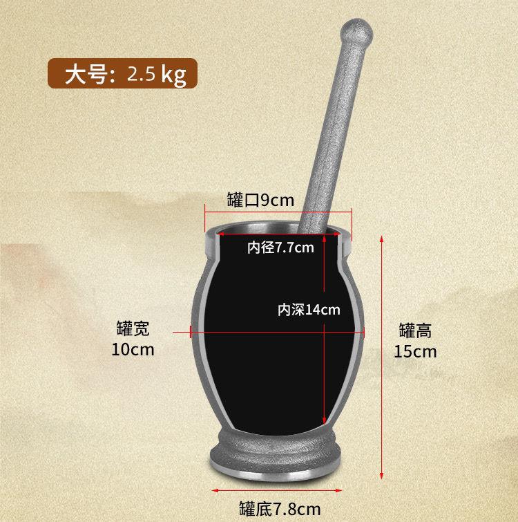 Baichunbao cast iron tamping pot, punching cylinder, mortar, mortar, pestle, mortar, grinder, grinding and mashing pepper household cast iron tamping three-piece set (medium size 2.18kg)