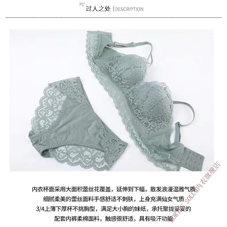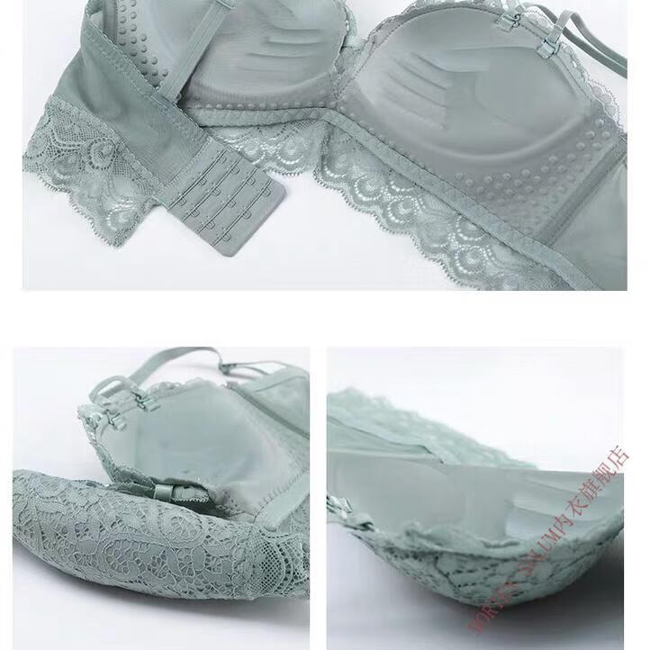 MORTEN SOLUM Big Brand Wireless Bra Set French Lace Underwear Women's Small Breast Gathering Upper Support Secondary Breast Anti-Sagging Bra Black 75A
