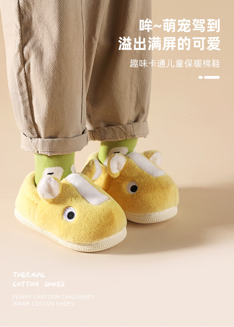 Shepherd boy clearance Shepherd boy children's bag heel cotton slippers winter velvet warm home shoes cartoon girl baby cotton shoes Custard 5588 17 base mark 140/inner length 13cm