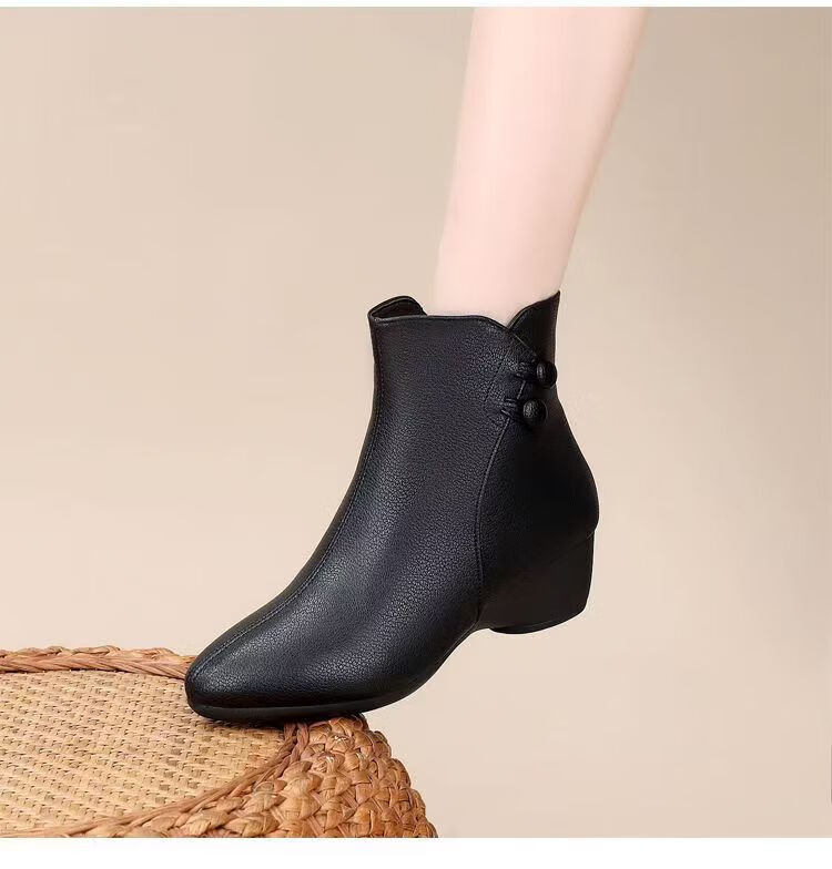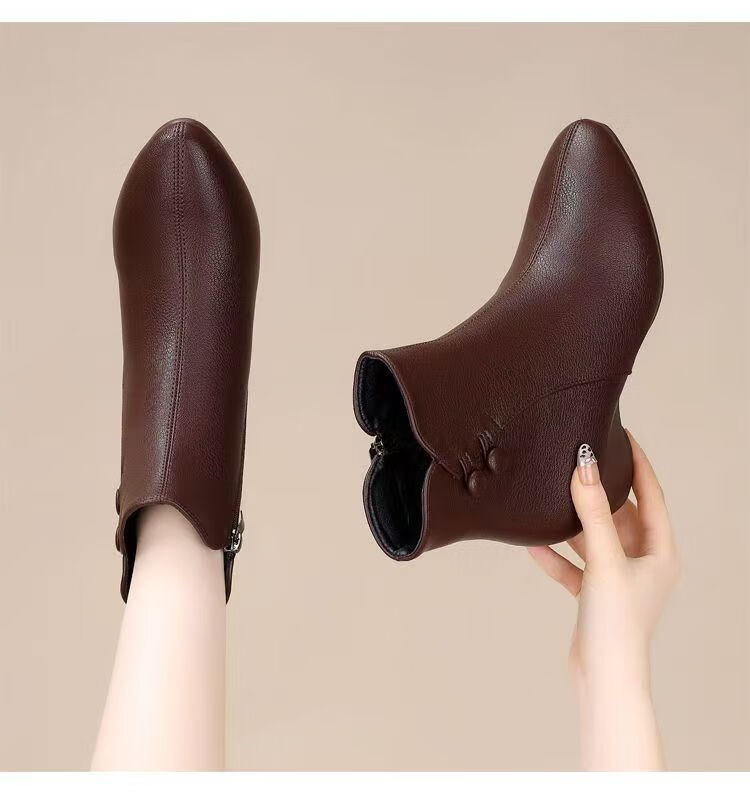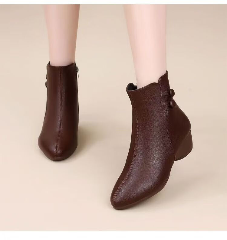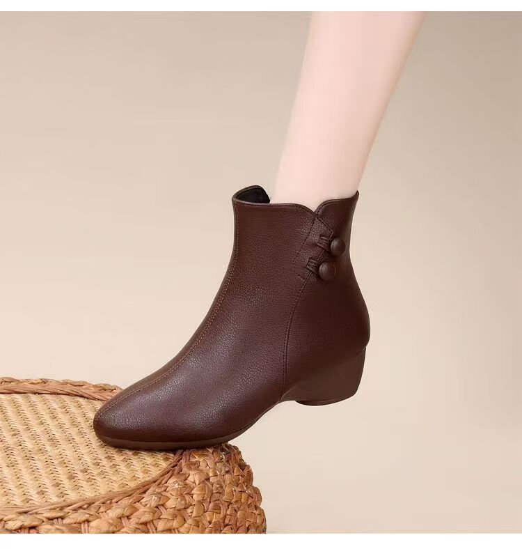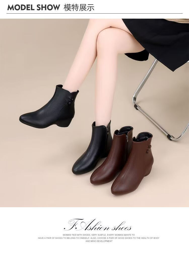Out of stock clearance Dafney wedge heel plus velvet warm short boots for women with medium heel soft sole genuine leather mother's shoes spring and autumn single boots brown plus velvet heel height 4.cm 37 (235mm) standard size