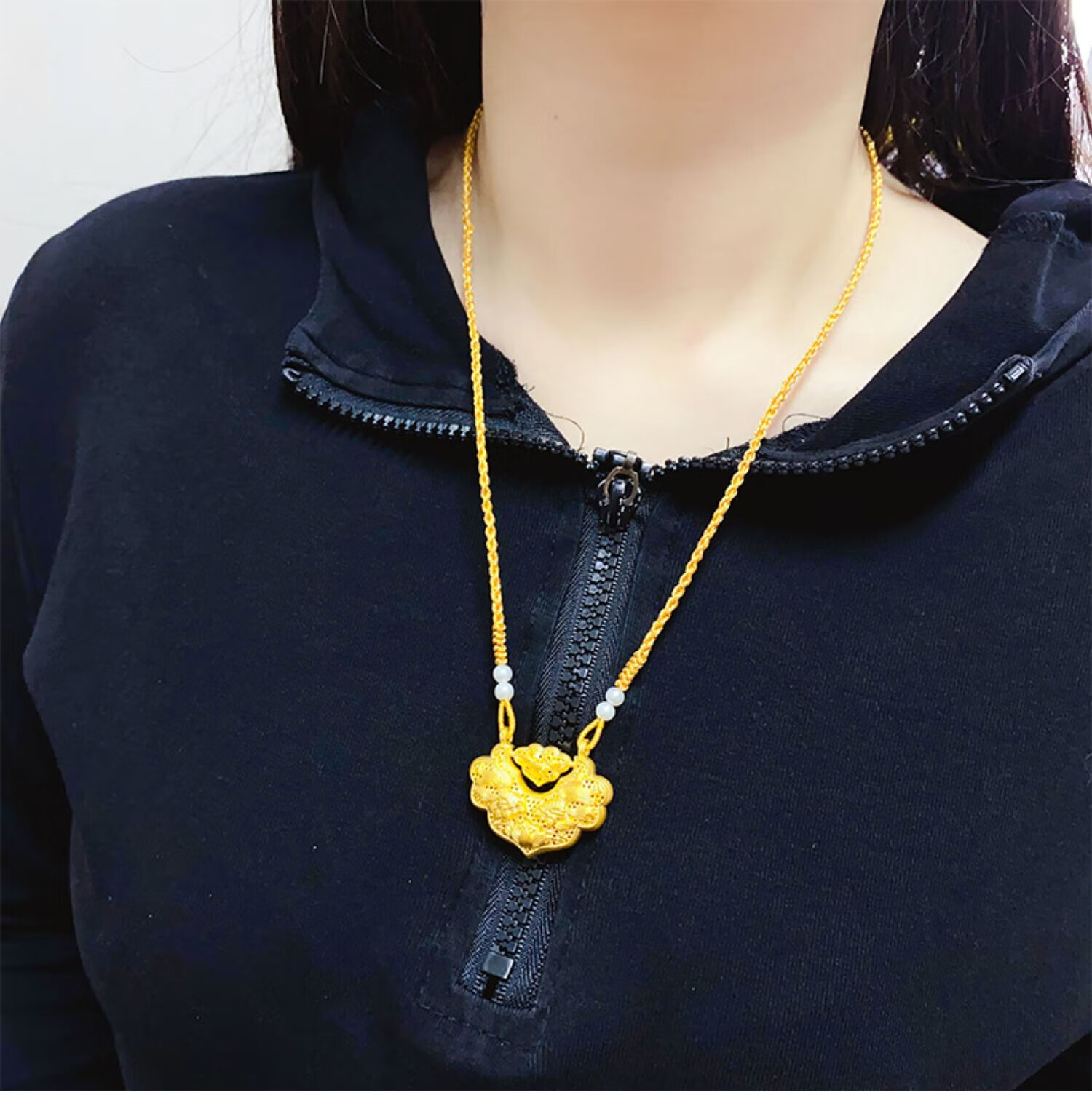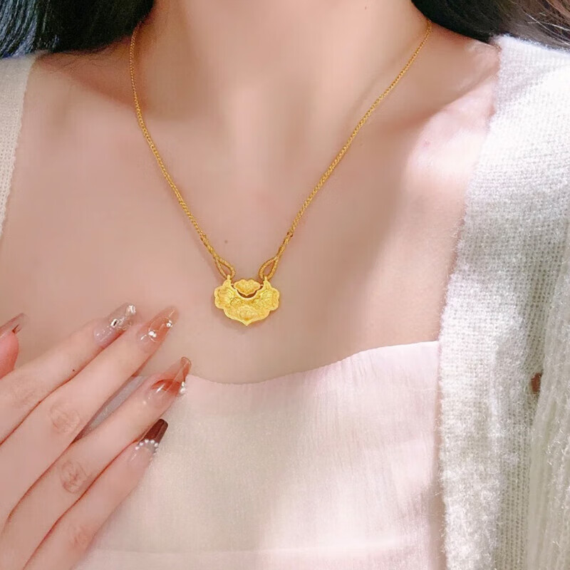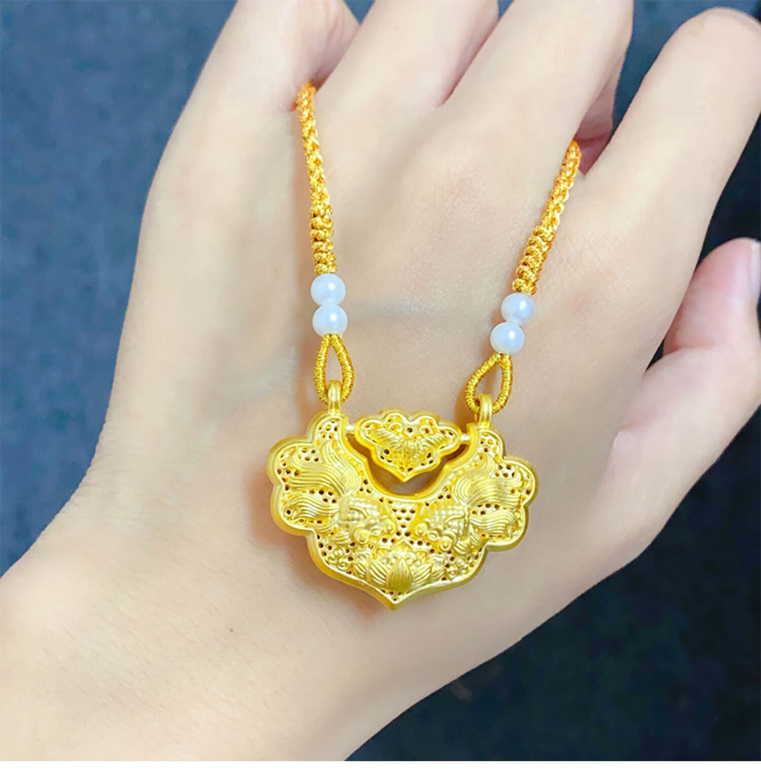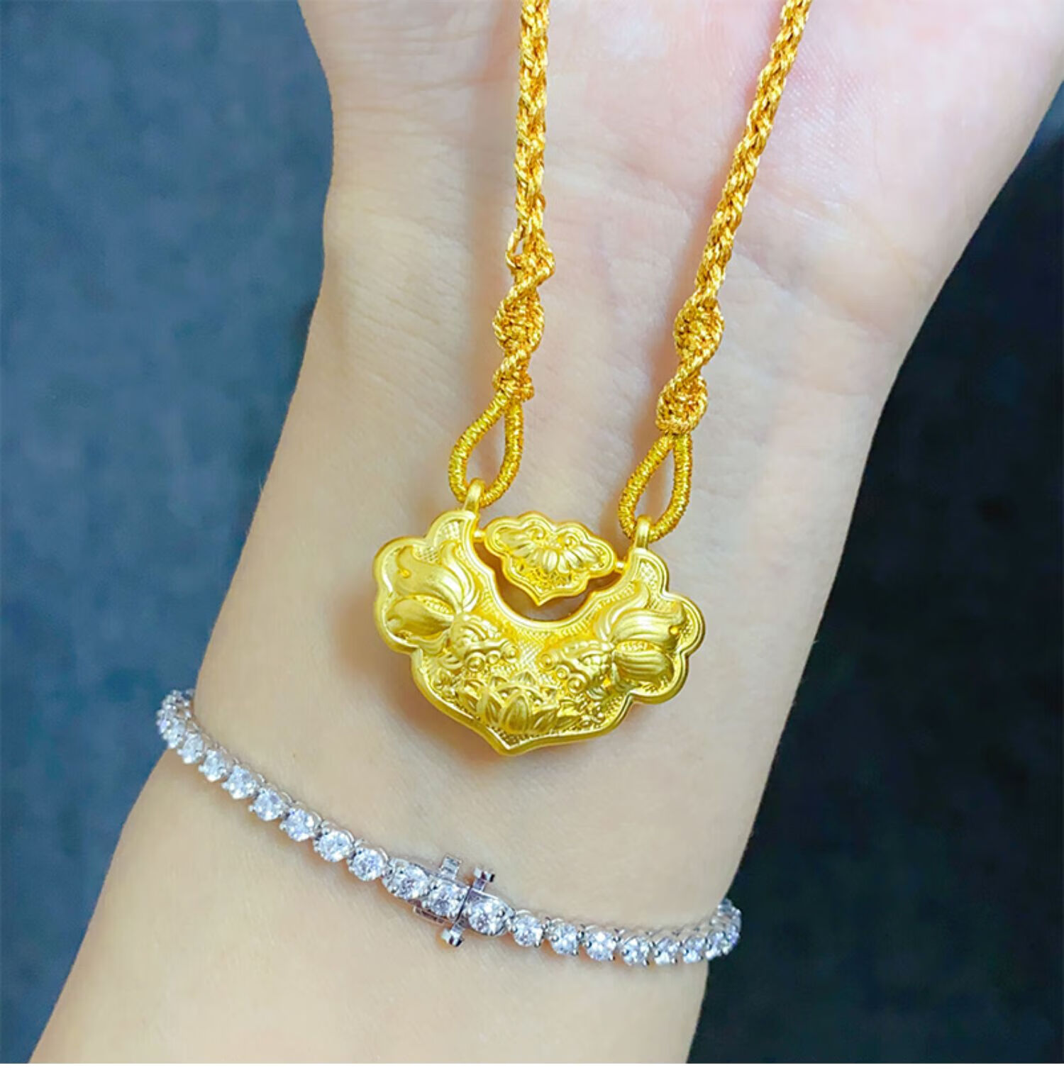 Chow Tai Fook gold pendant koi lock foot golden lotus braided necklace gold lock longevity lock bag girlfriend Valentine's Day gift red braided rope lock bag + 6 gold beads