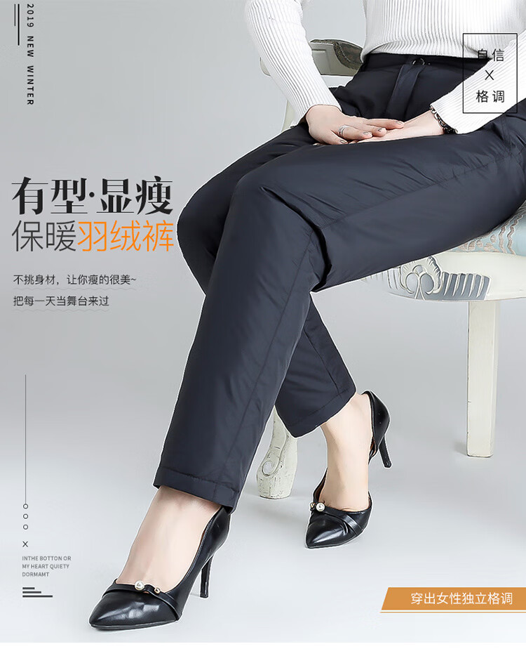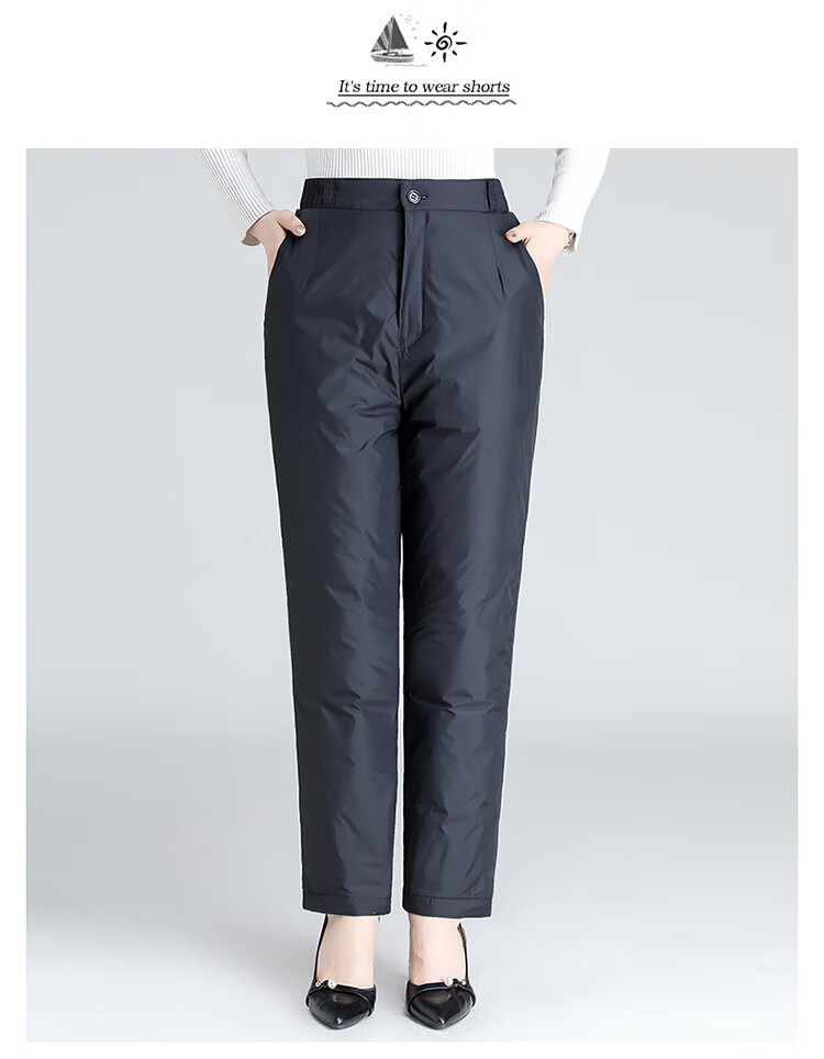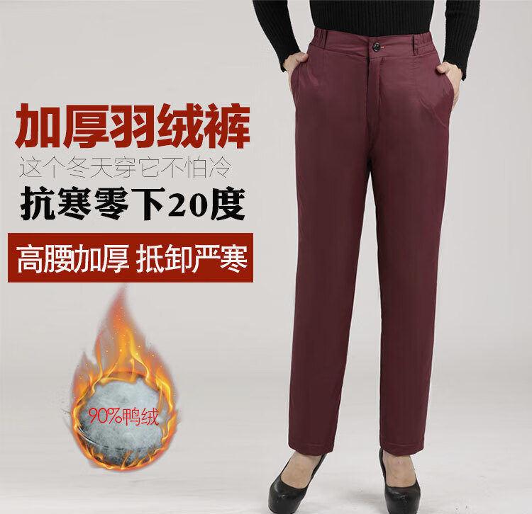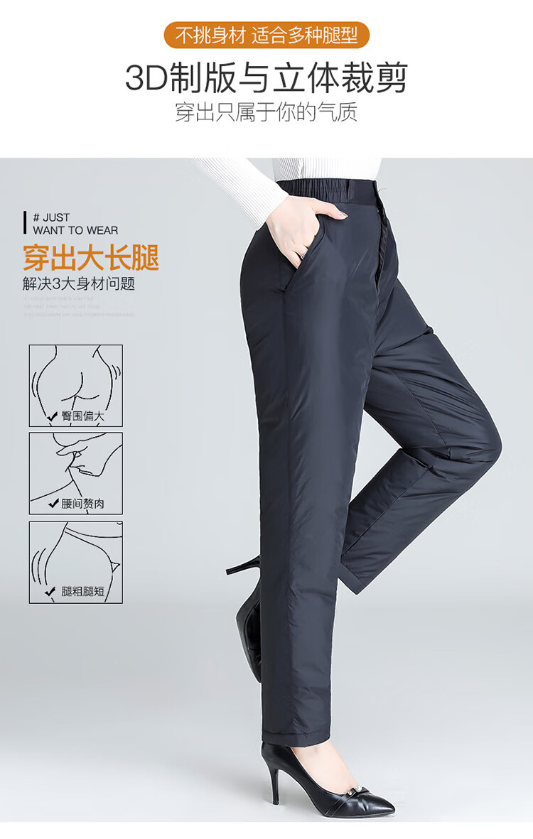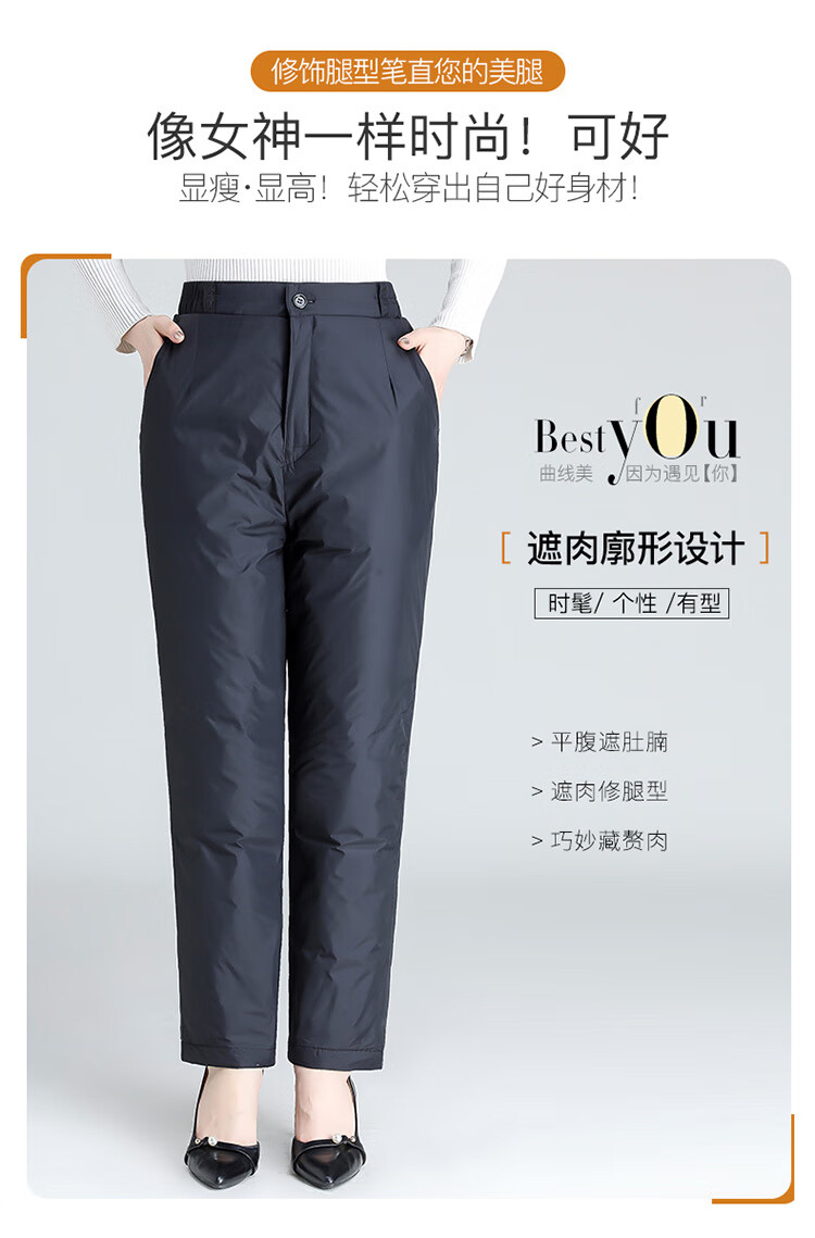 Hengyuanxiang down pants women's cold-proof warm cotton pants middle-aged and elderly high-waisted outdoor straight large size deep crotch mom duck down pants black. Women's down pants 3XL recommended 160-185 Jin Jin equals 0.5 kg