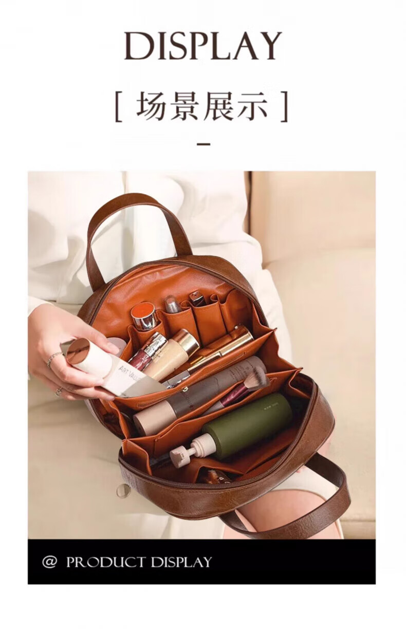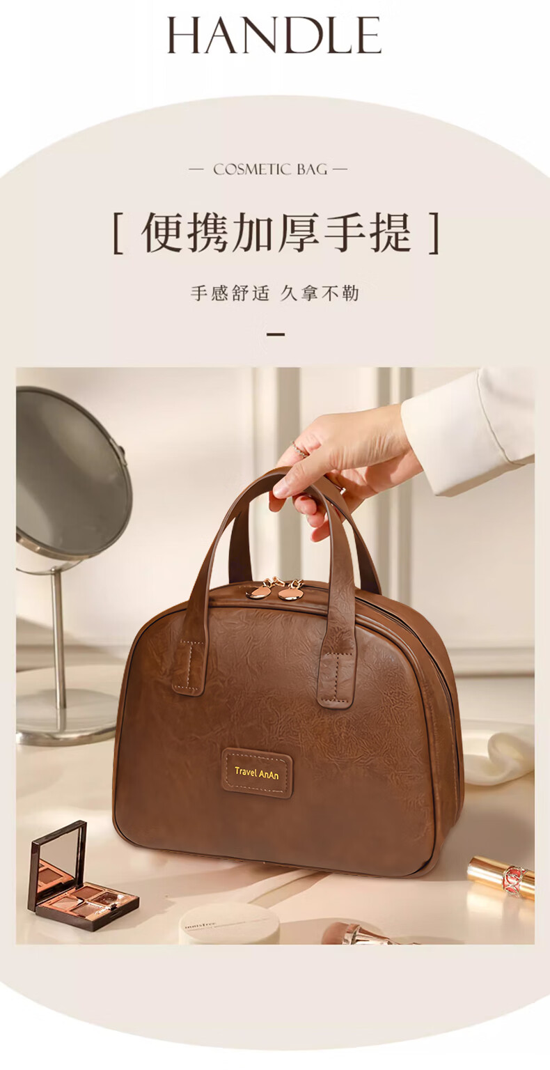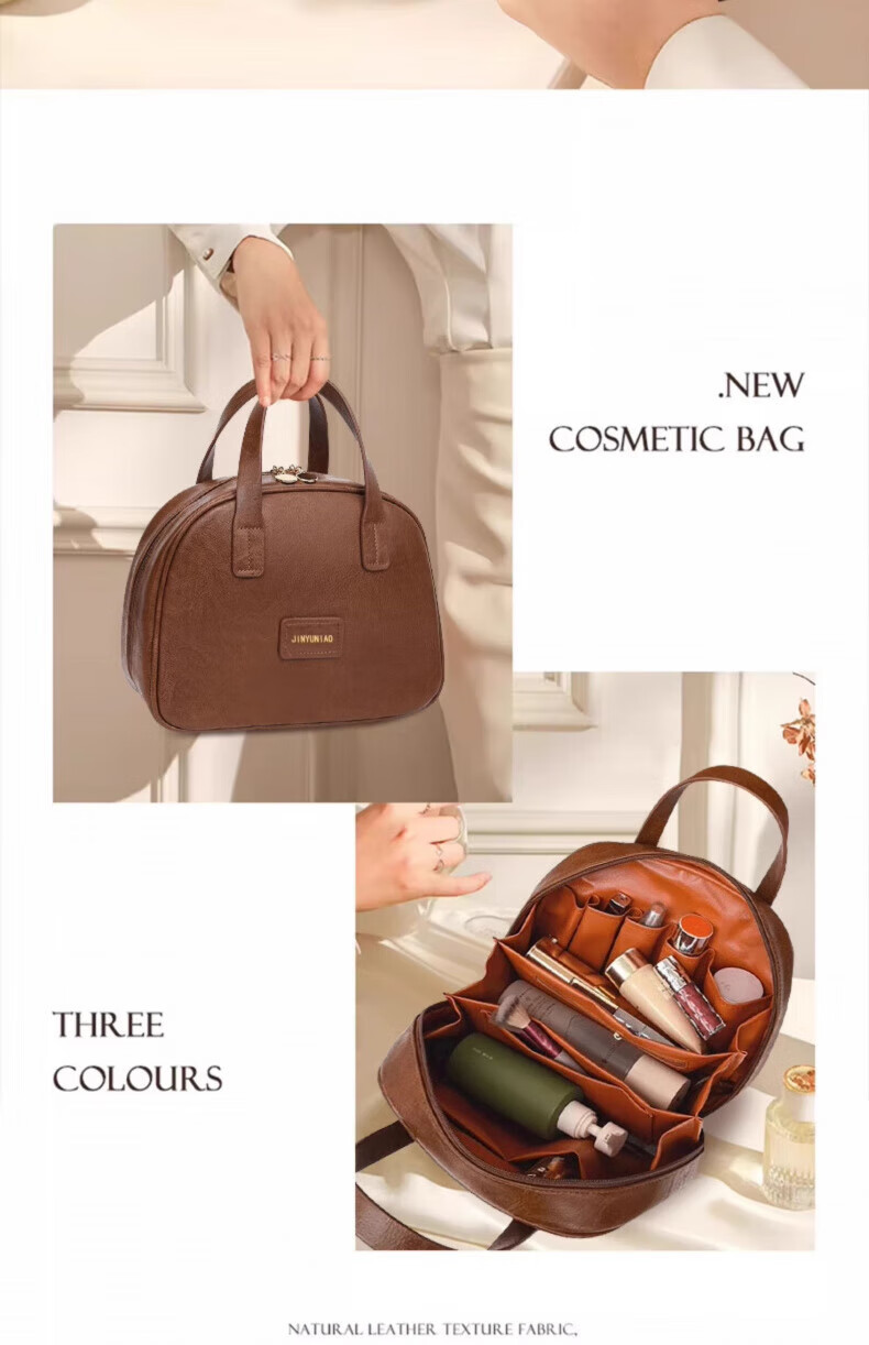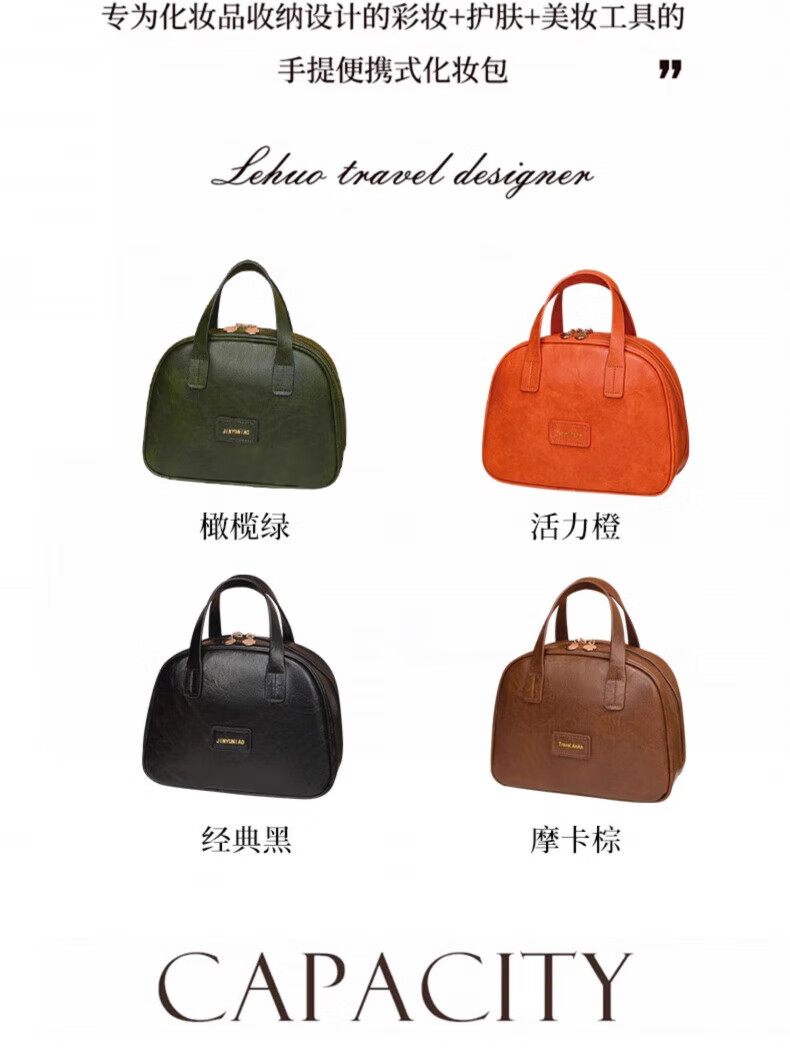 RICH YOUR HOME German Quality Luggage Cosmetic Bag Women's Portable Large Capacity Travel Cosmetic Brush Bag Outing Toilet Bag Olive Green - (Large Size) Upgraded Lined Pu 28*11*21cm