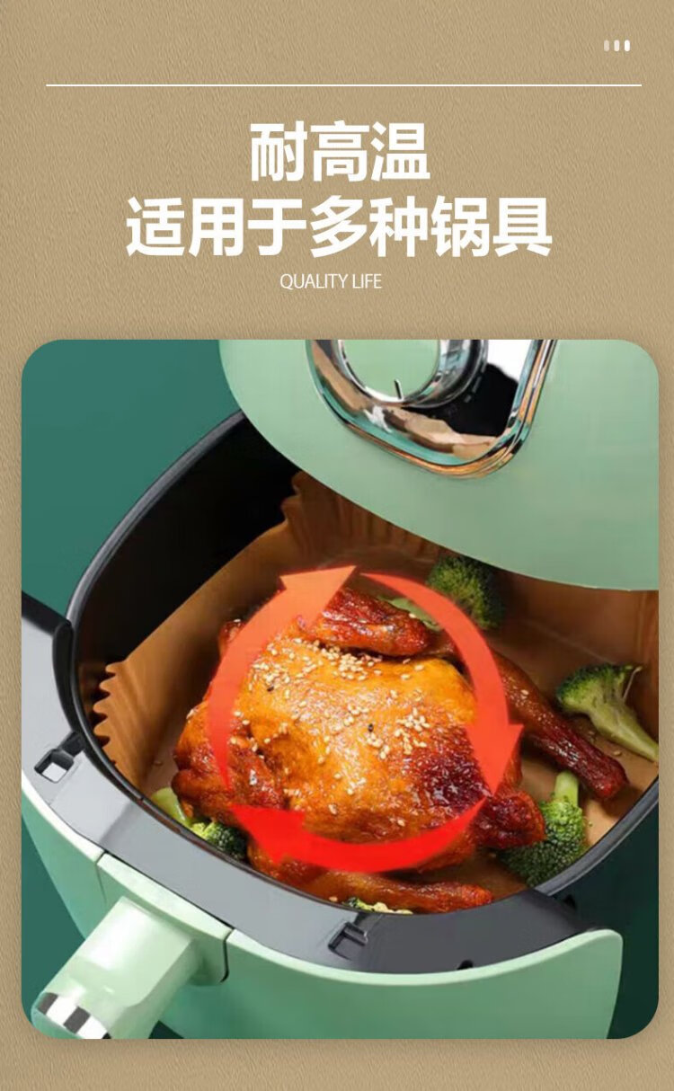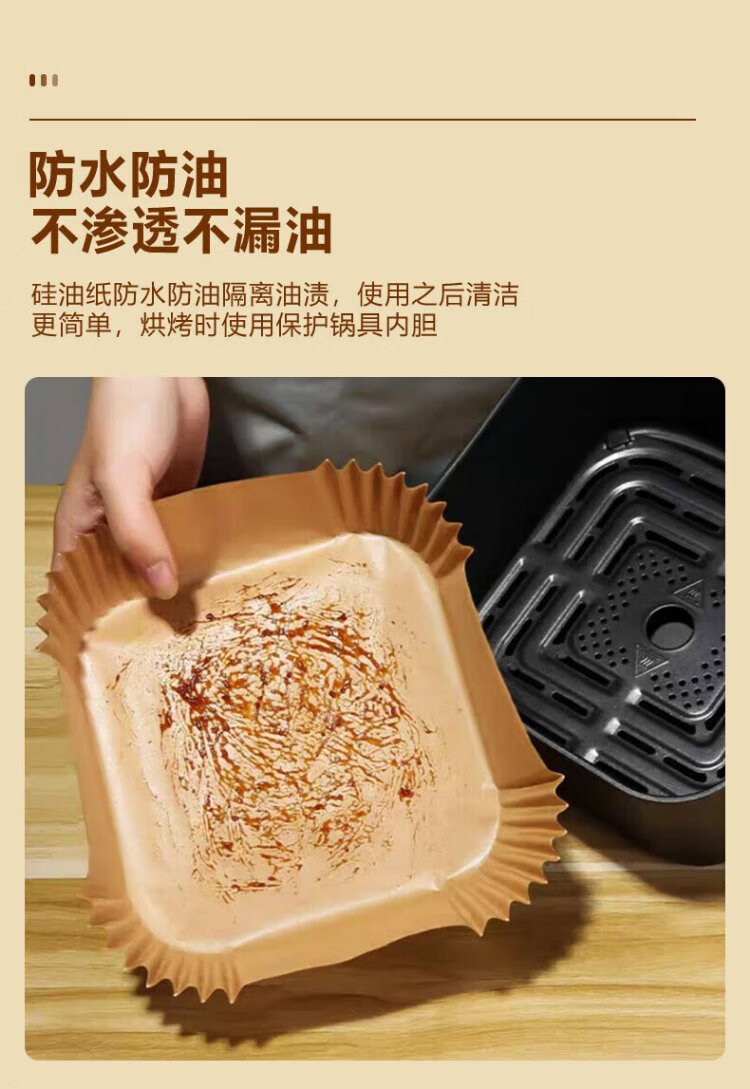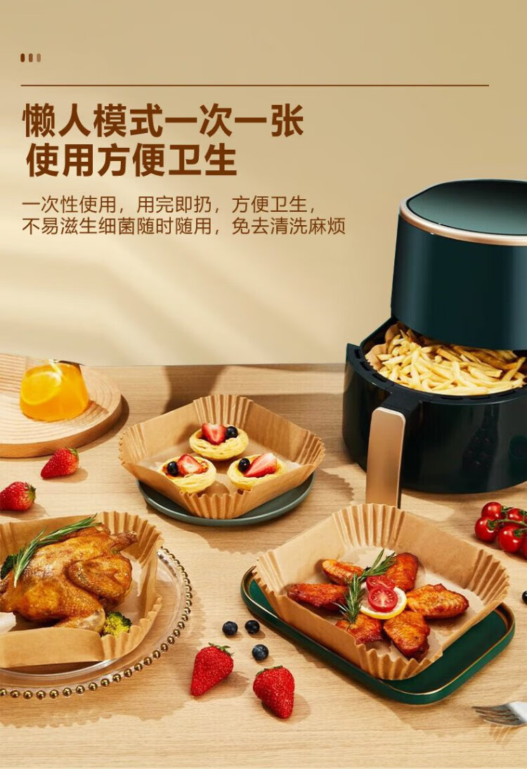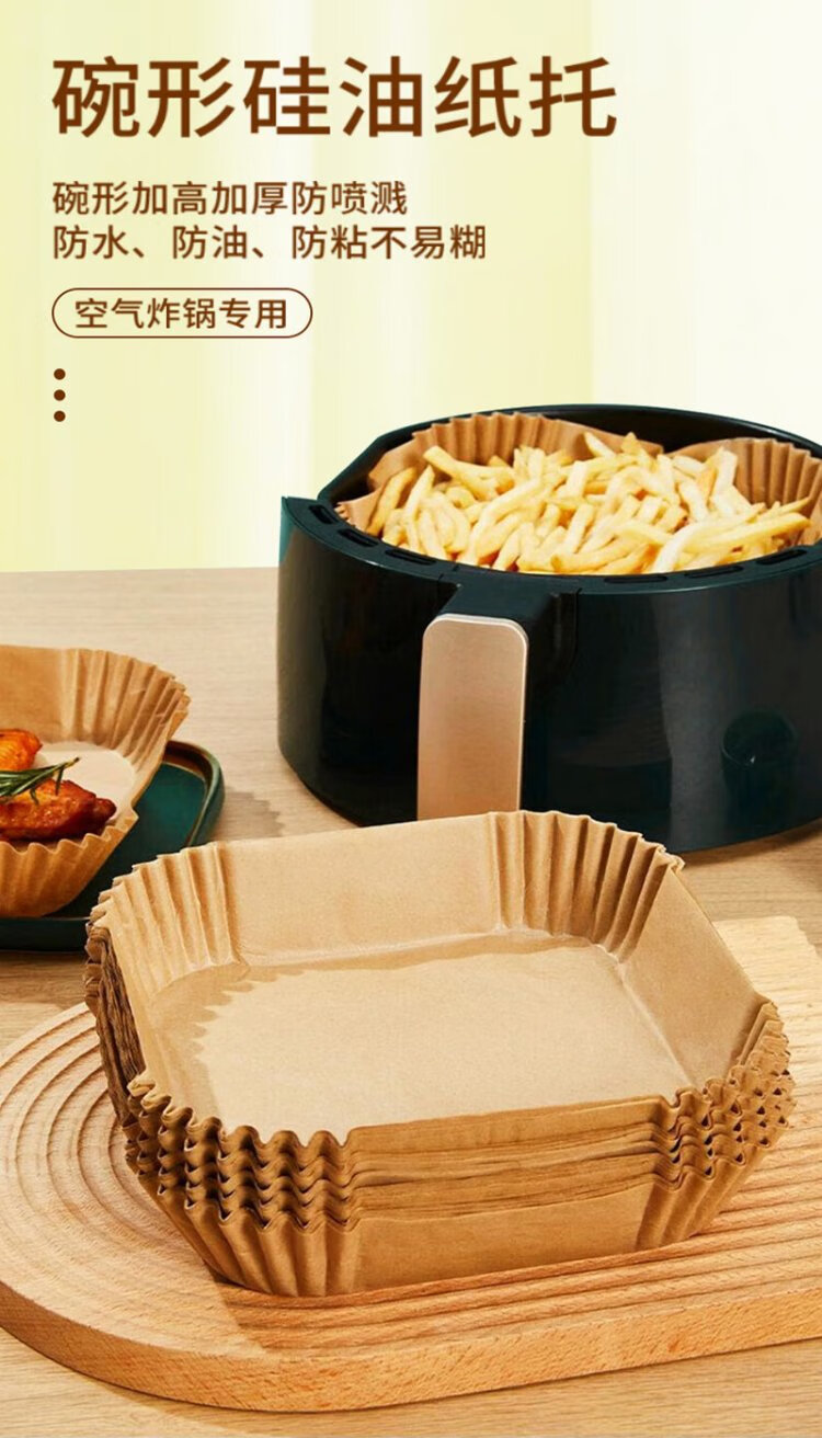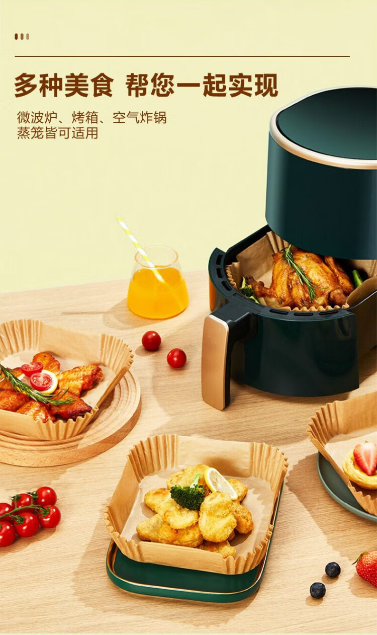 Zhongyuan Jiademei square air fryer special paper plate household oil-absorbing pad paper oven baking silicone paper grease-proof bowl high temperature resistance round log color diameter 20CM 50 pieces