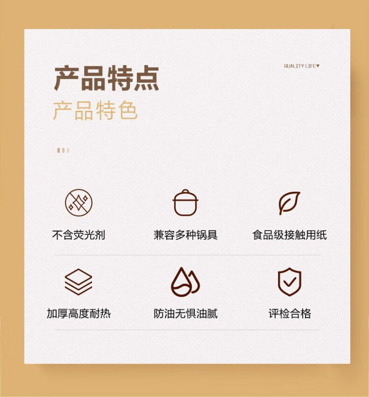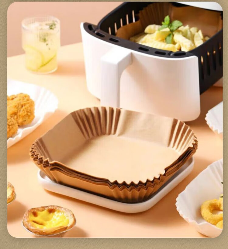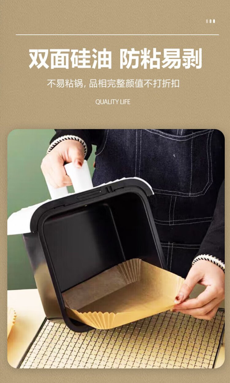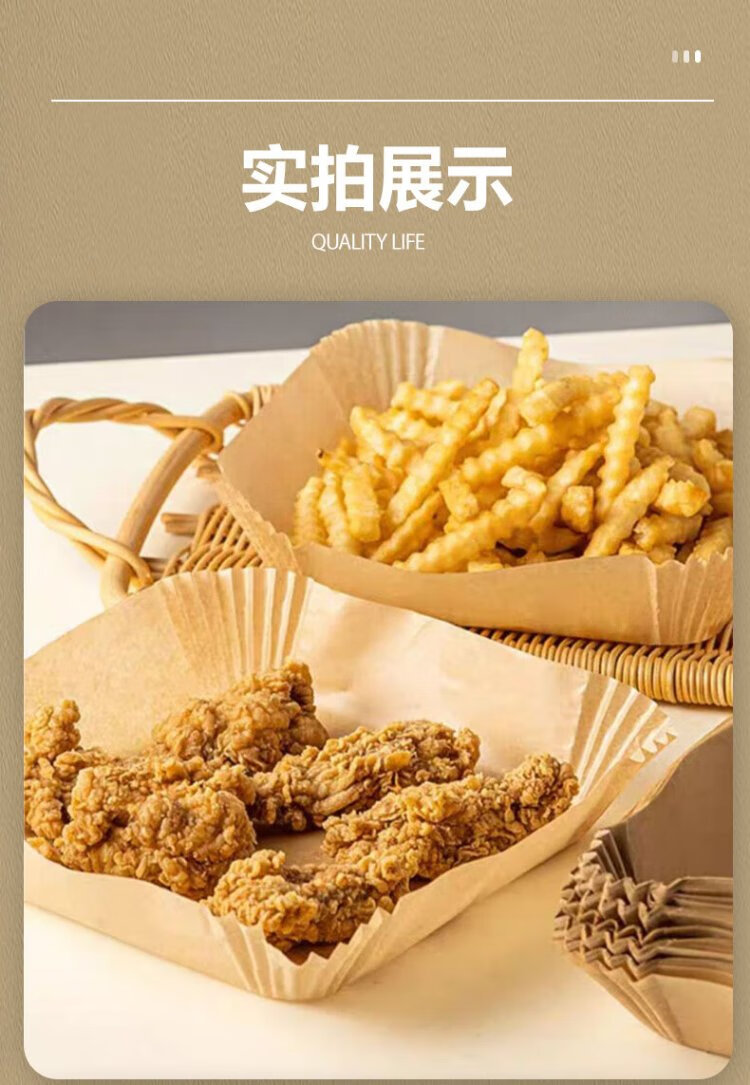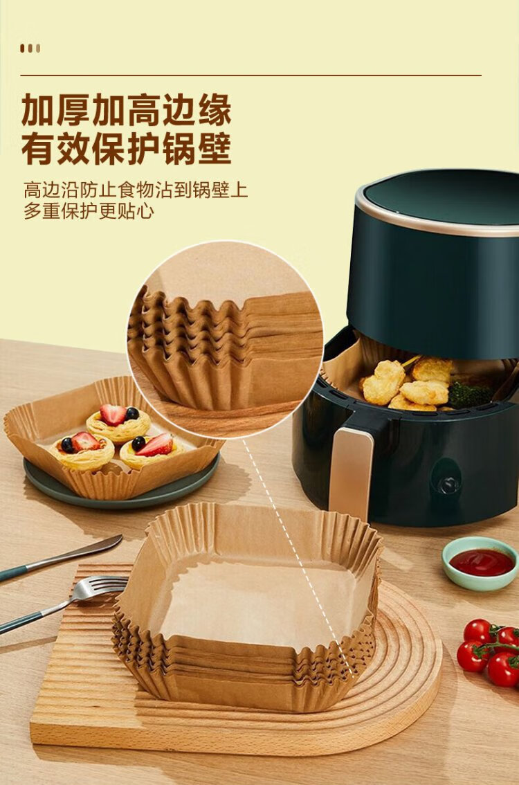 Zhongyuan Jiademei square air fryer special paper plate household oil-absorbing pad paper oven baking silicone paper grease-proof bowl high temperature resistance round log color diameter 20CM 50 pieces