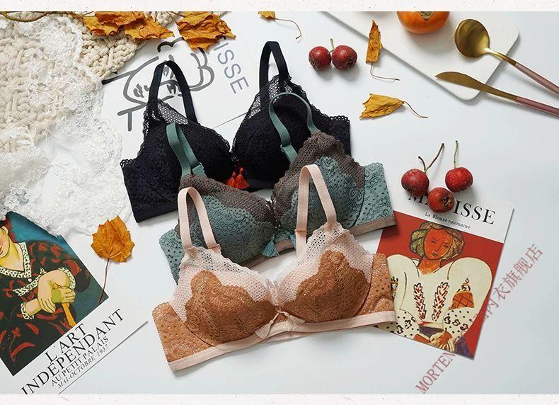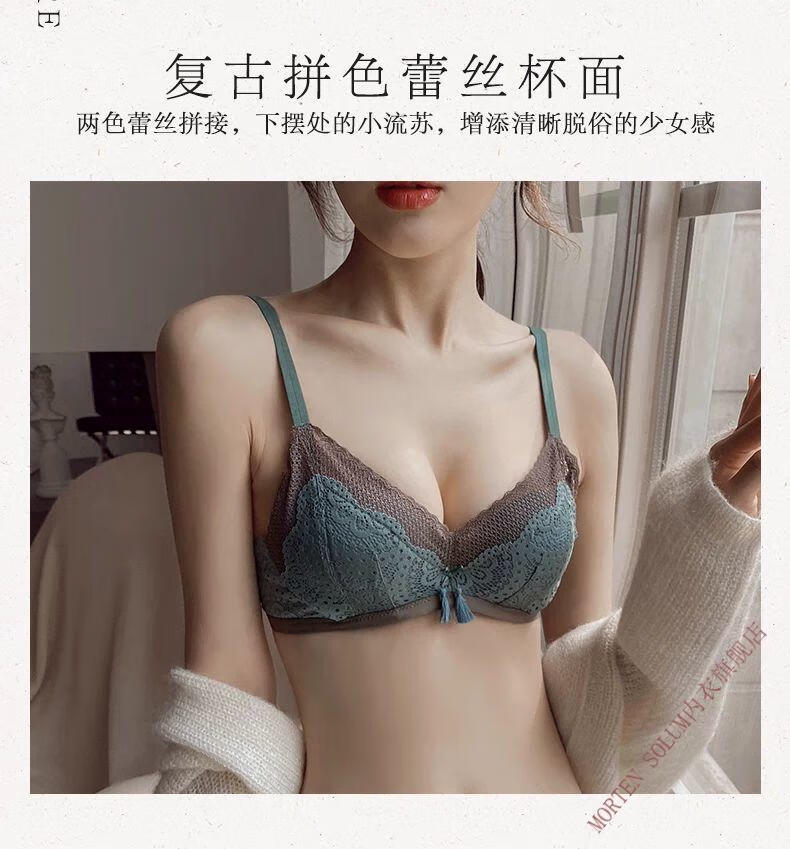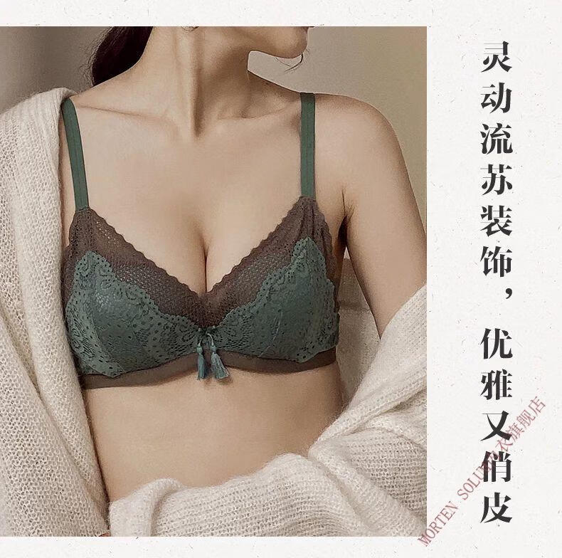 MORTEN SOLUM Big Brand Niche Soft Underwear Women's Wireless Lace Sweet and Comfortable Push Up Adjustable Flat Chest Small Breast Push Up Bra Black 85A 85/38-AB Cup Universal