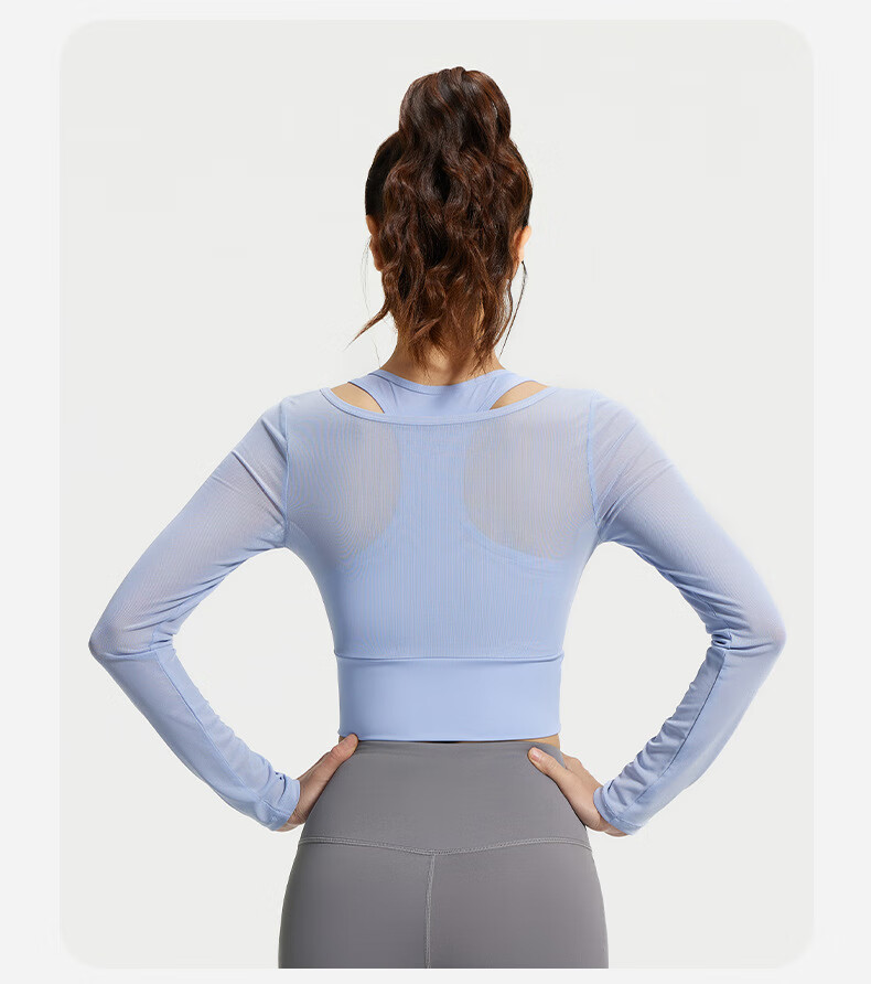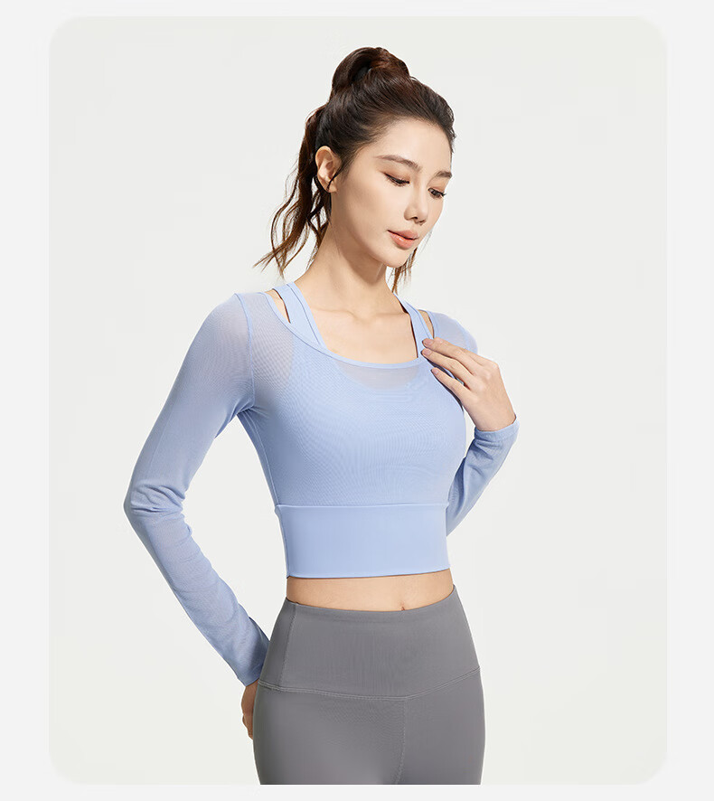 Yoga wear for women 2025 new sports top with chest pad, long sleeves, fashionable running, Pilates training and fitness suit, Star Black M
