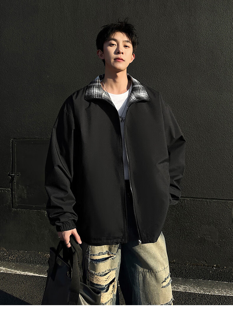 Autumn and winter coats for men 2025 new early autumn trendy clothes handsome early autumn wear tops loose and versatile jacket black autumn essential jacket XL recommended 115-130Jin Jin equals 0.5 kg