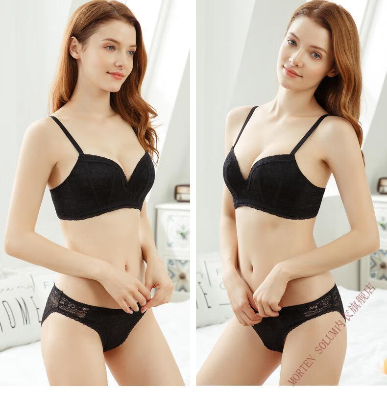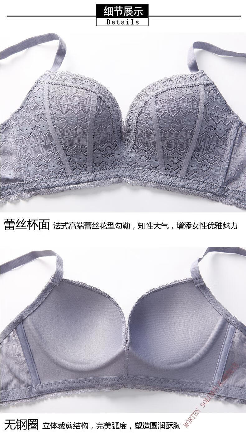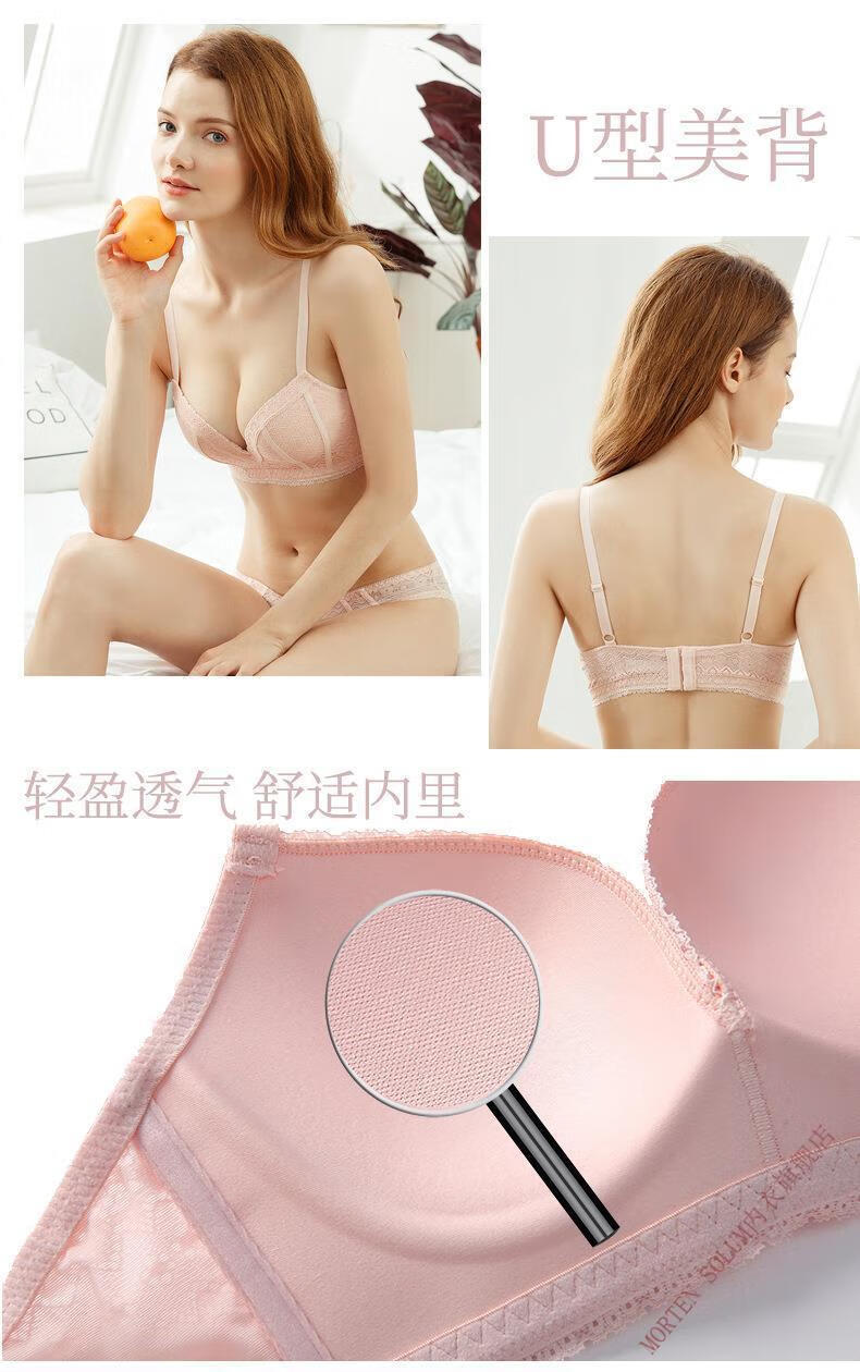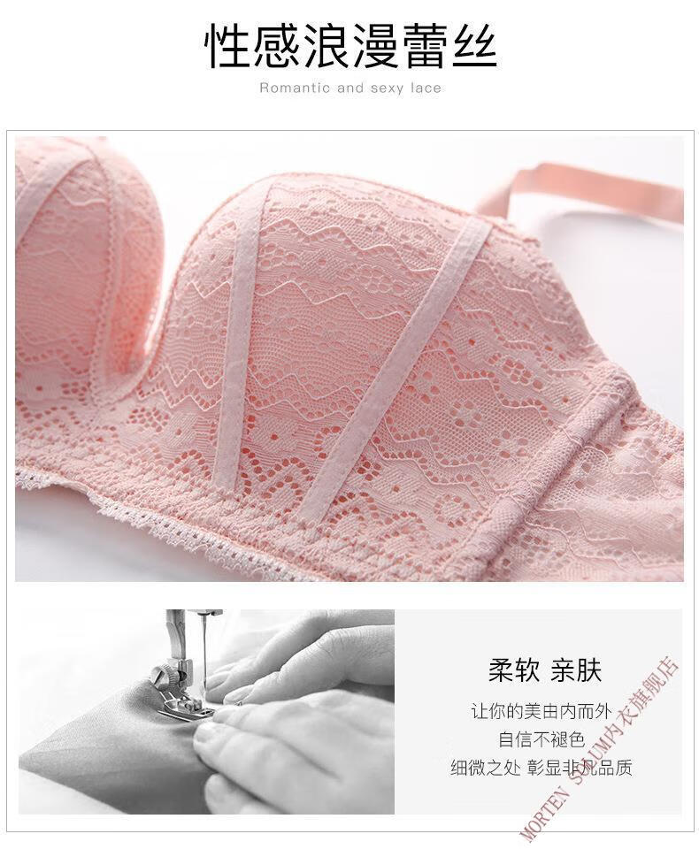 MORTEN SOLUM Big Brand Wireless Push Up Bra Set Thin Underwear Women's Chest Wrapped Sexy Lace Panties Beautiful Back Support Pink 70A 32
