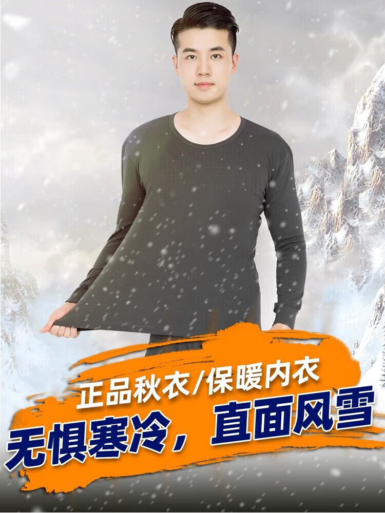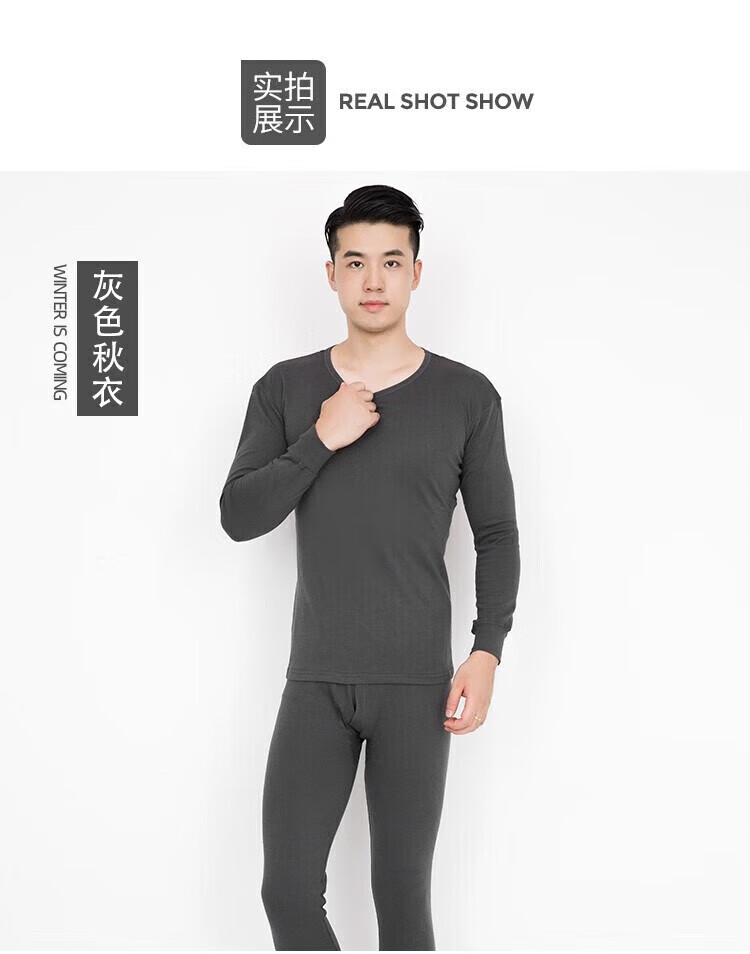 Jihua 3019 genuine new autumn clothes and autumn trousers autumn men's suit Modal warm military green autumn clothes and winter autumn clothes and trousers - gray 165-170/92-96