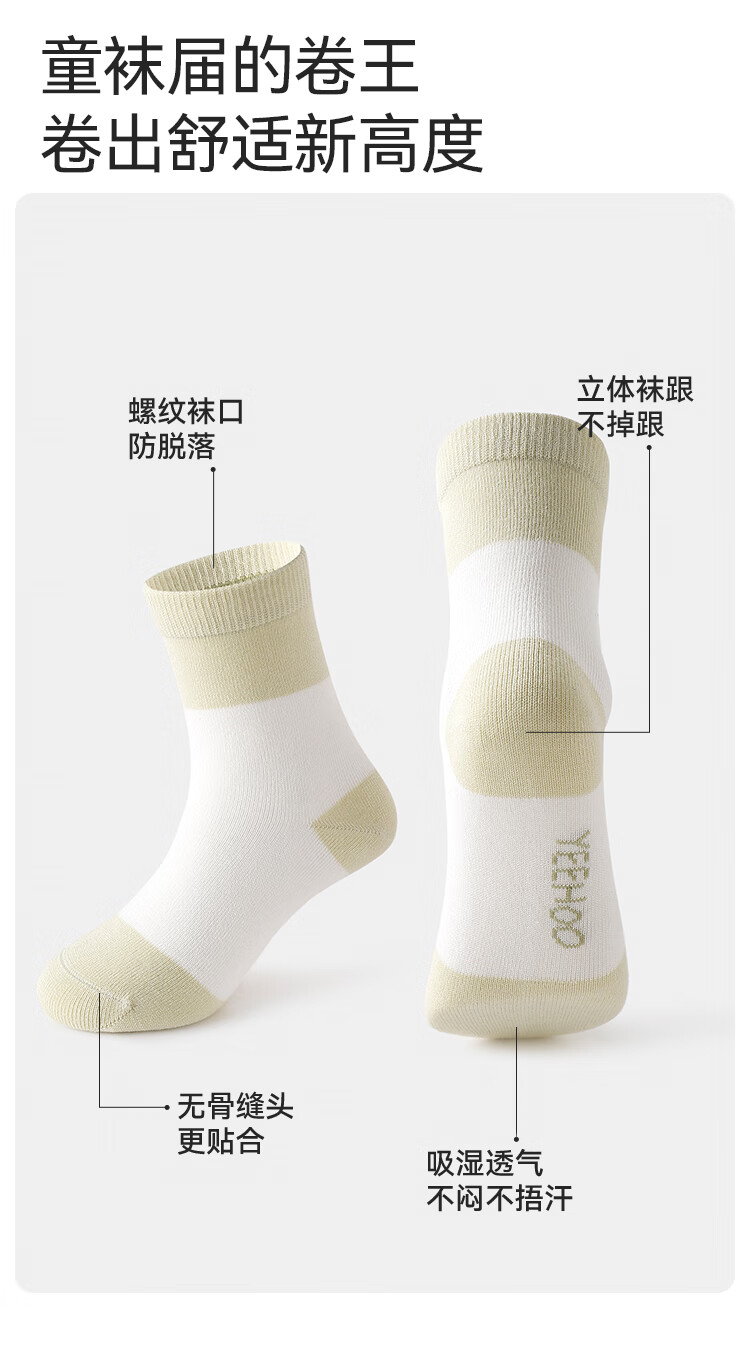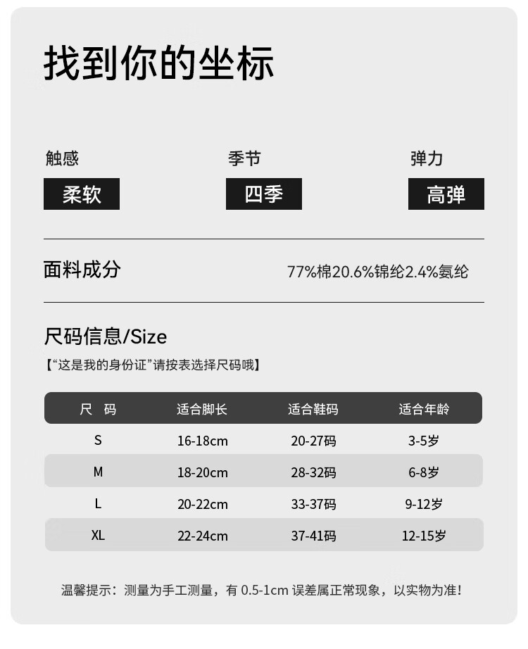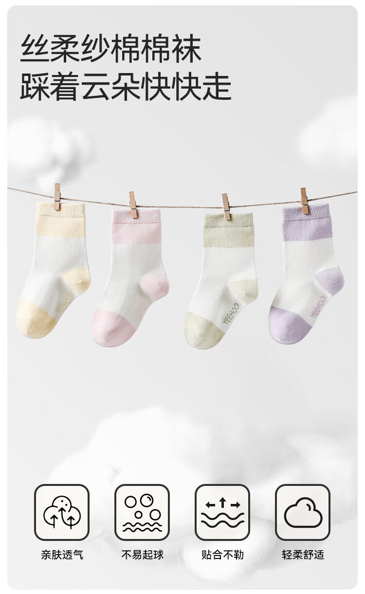 YEEHOO children's mid-calf all-season socks, 4 pairs, Xinjiang combed cotton, silk soft spinning craft, universal socks for boys and girls, Dream Cloud, 4 pairs, 3-5 years old (S) 16-18CM
