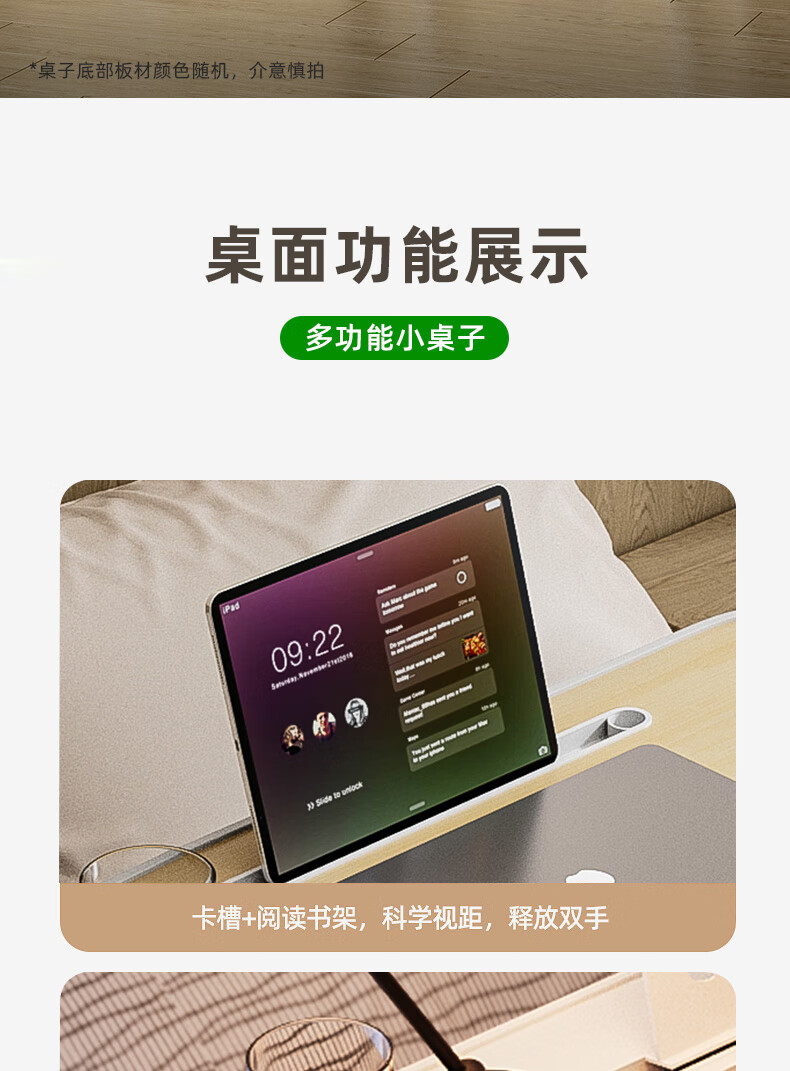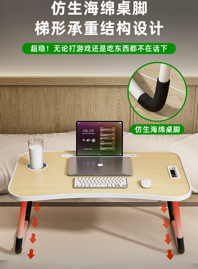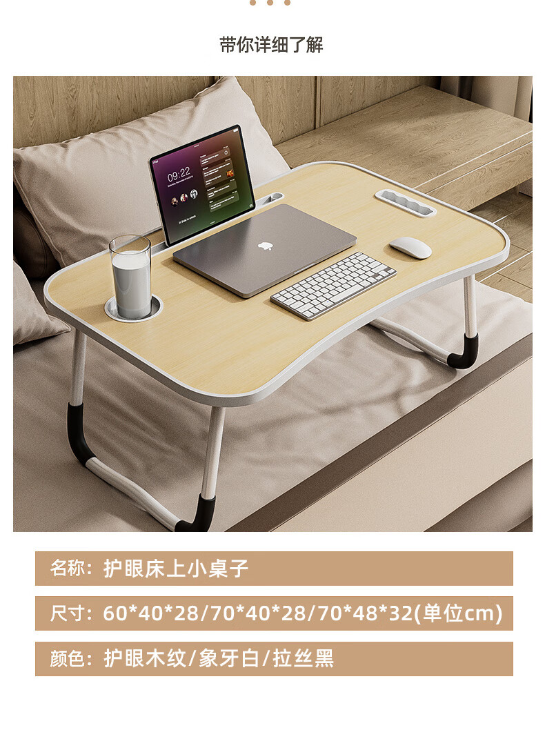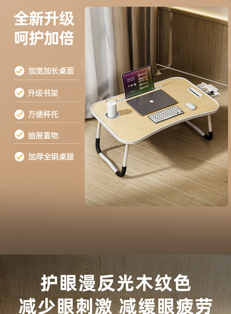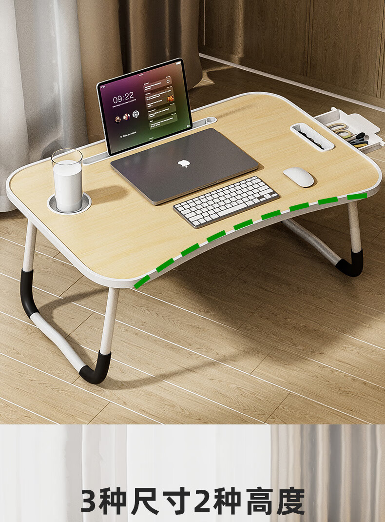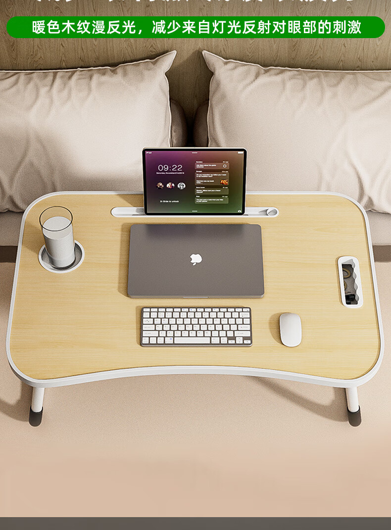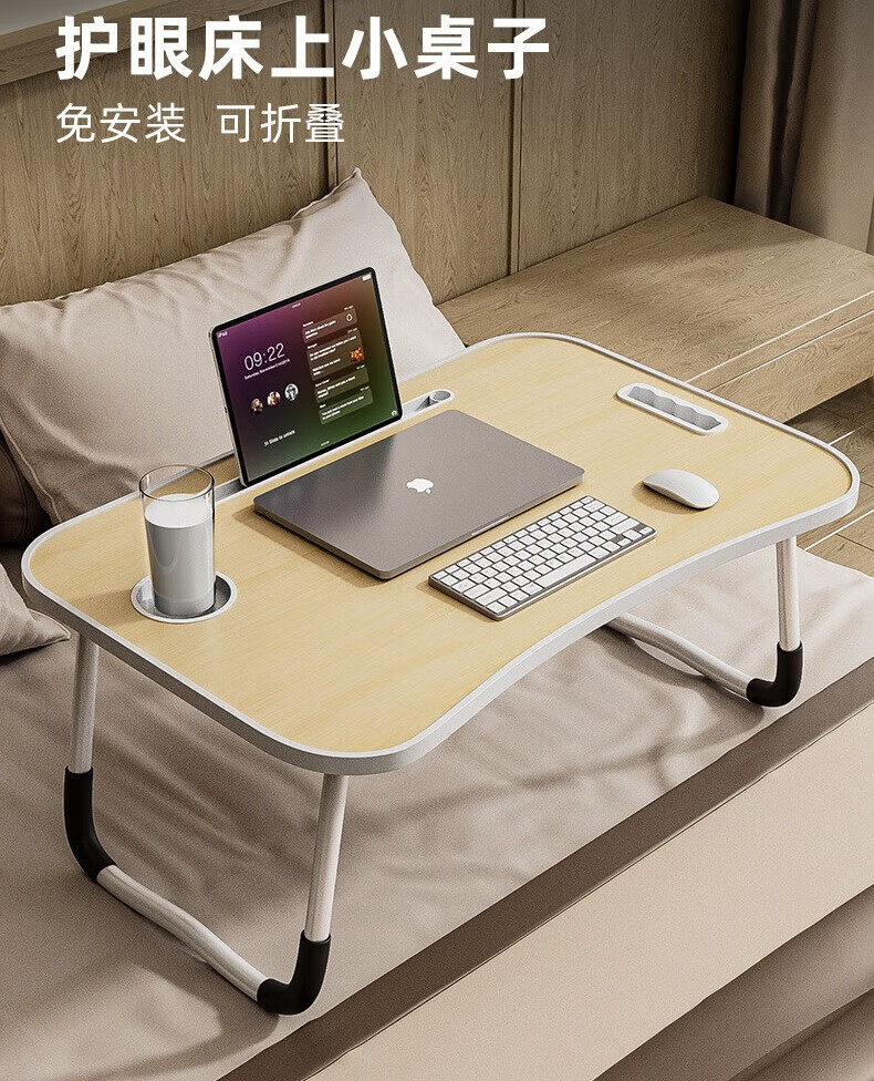 Foldable bed study desk laptop table bedroom bay window table student dormitory writing table board white maple card slot + cup holder
