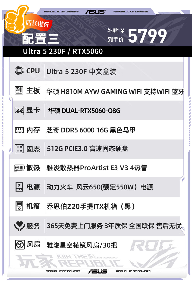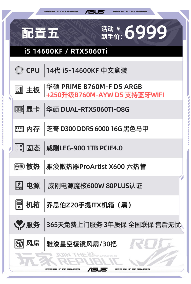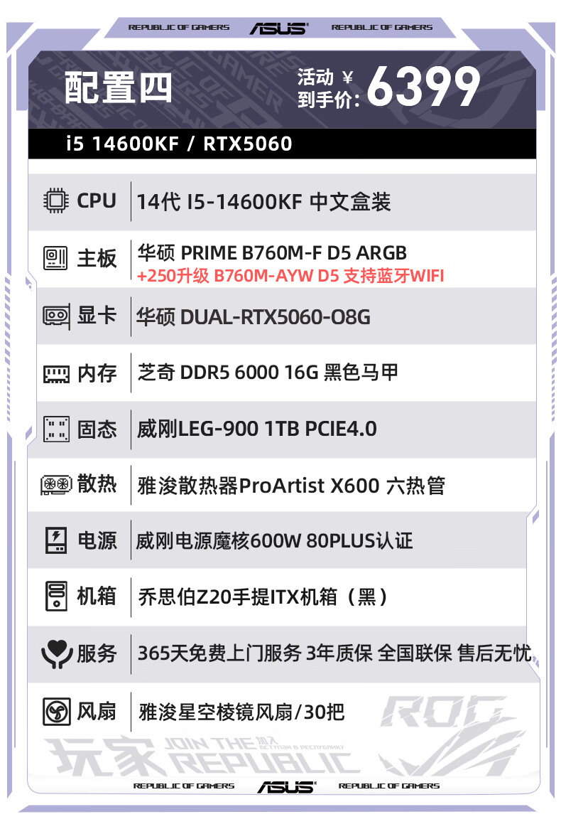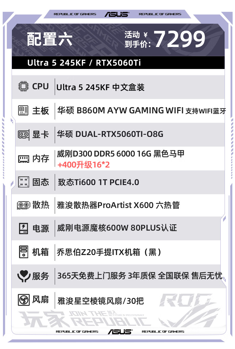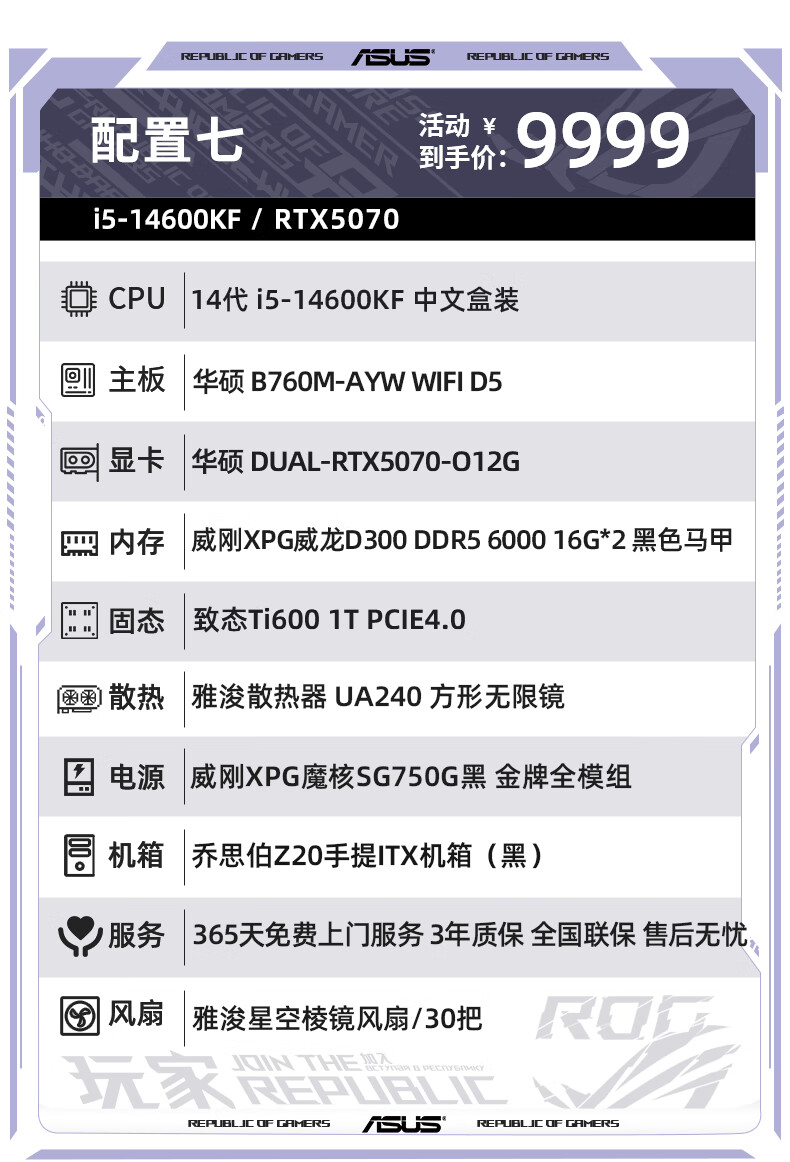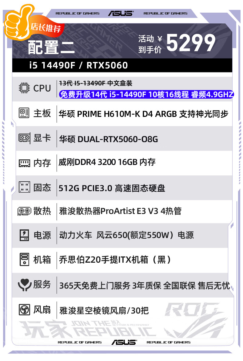 ASUS Qiaosibo Z20 portable ITX chassis Intel i5-14490F 14600KF 5060/5070 graphics card assembly computer complete computer host desktop DIY configuration four i5-14600KF/RTX5060