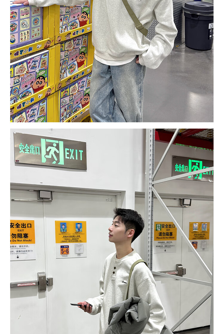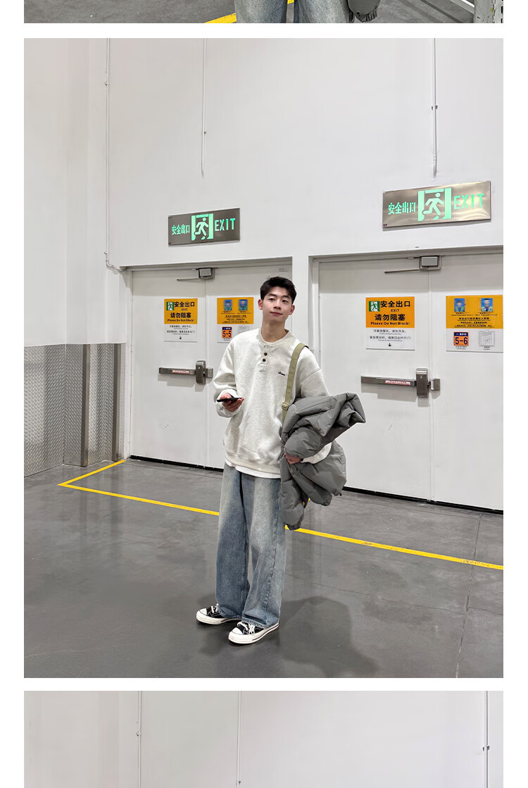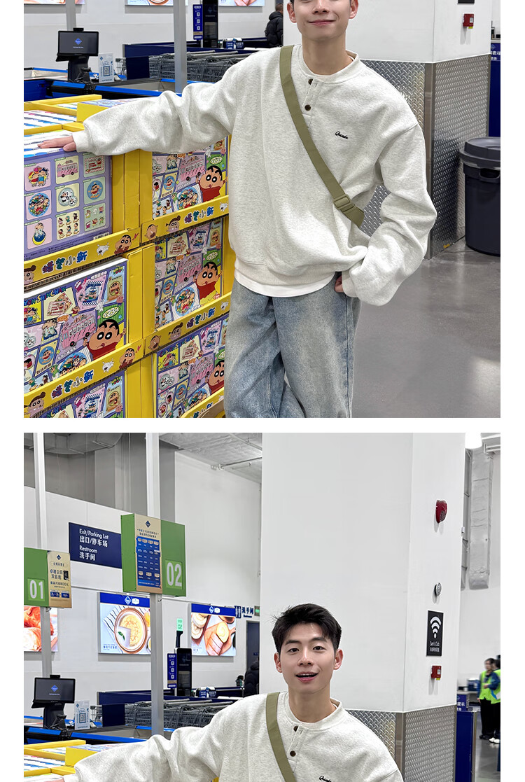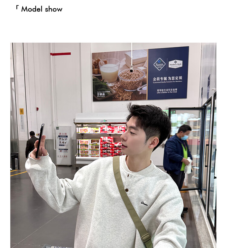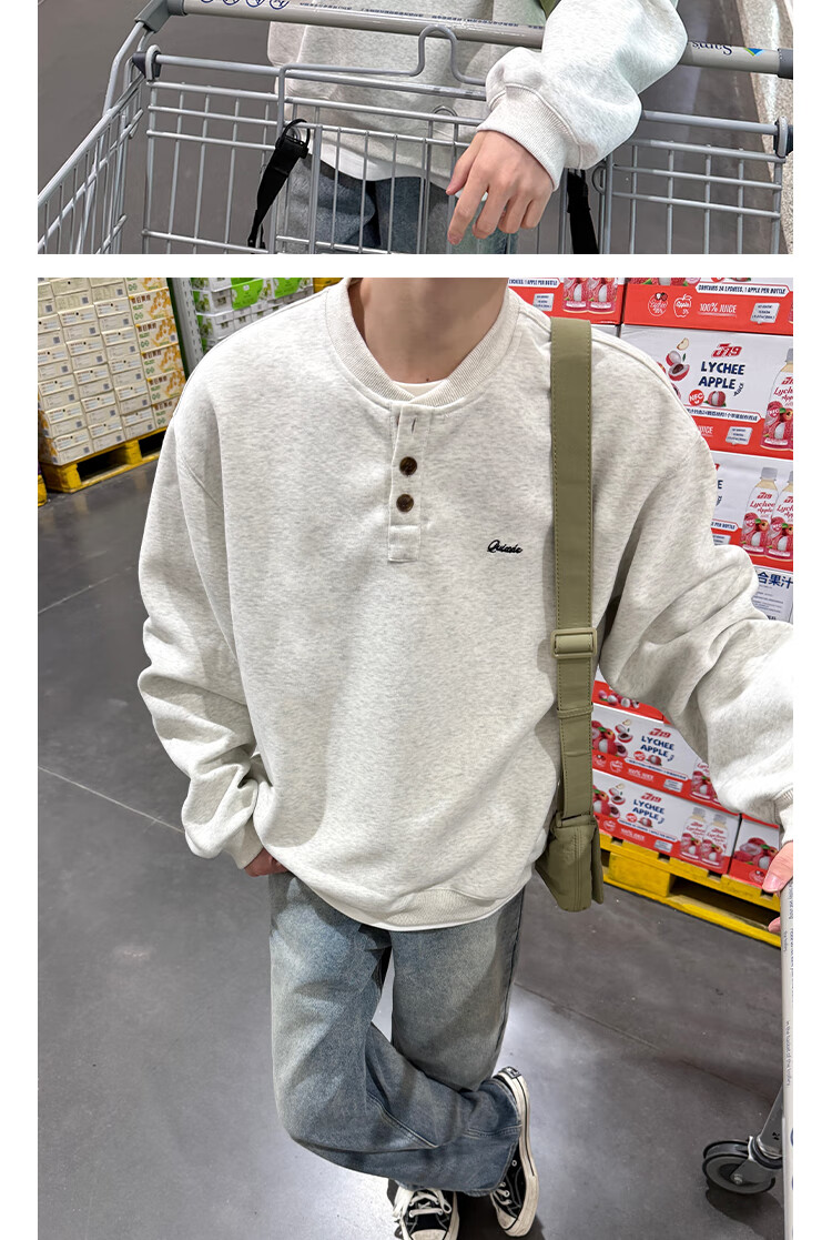 Qumile cleanfit Henry collar sweatshirt for men in spring and autumn, loose and trendy heavy-weight bottoming shirt, long-sleeved T-shirt with inner top, white gray XL recommended 120-140Jin Jin equals 0.5 kg