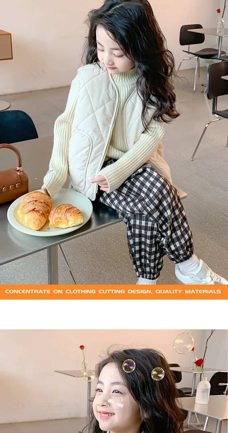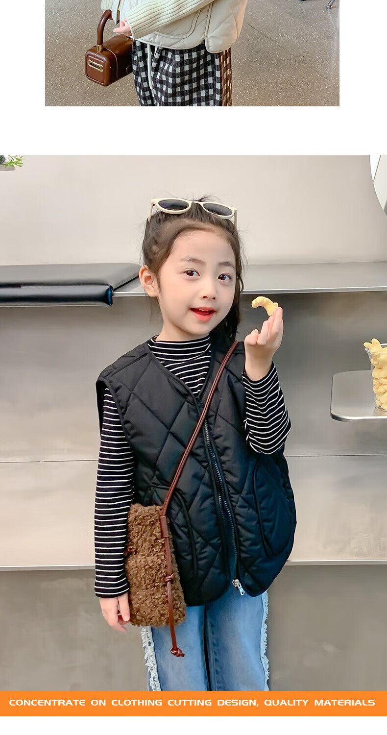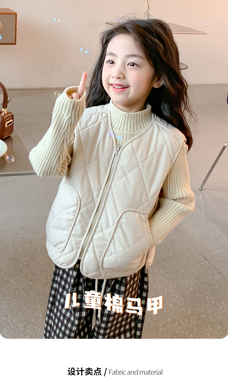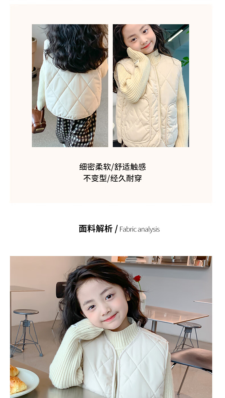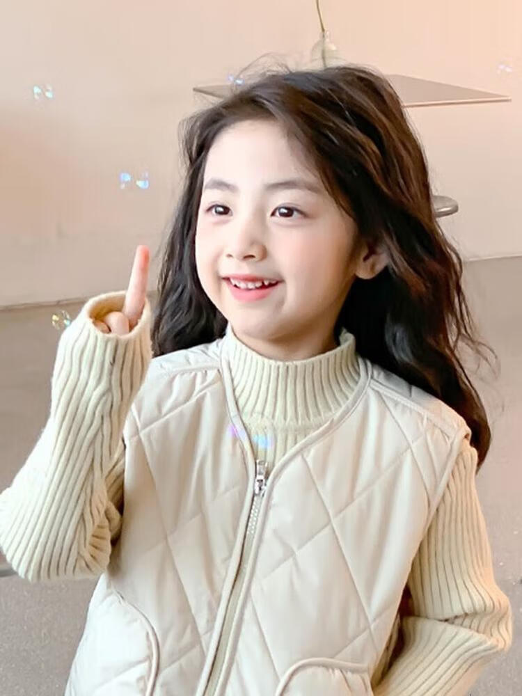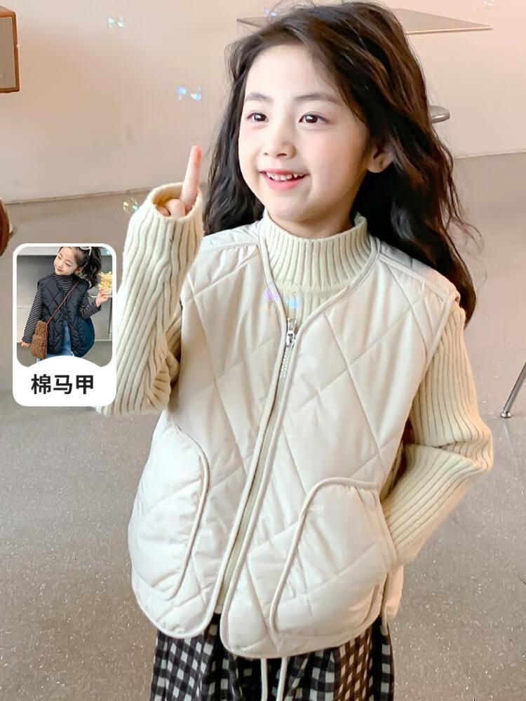 New children's school uniform waistcoat autumn and winter thin warm vest for boys and girls to wear inside and outside, medium and large children plus velvet waistcoat trendy off-white 130