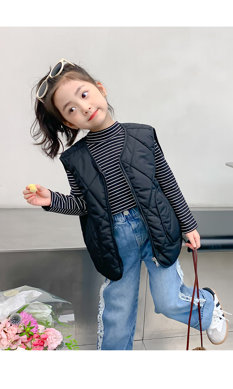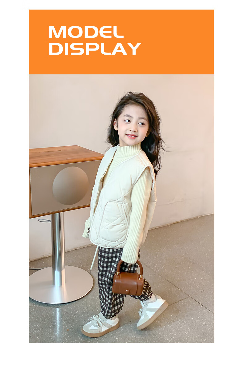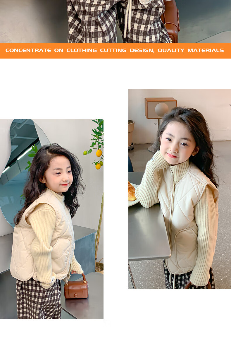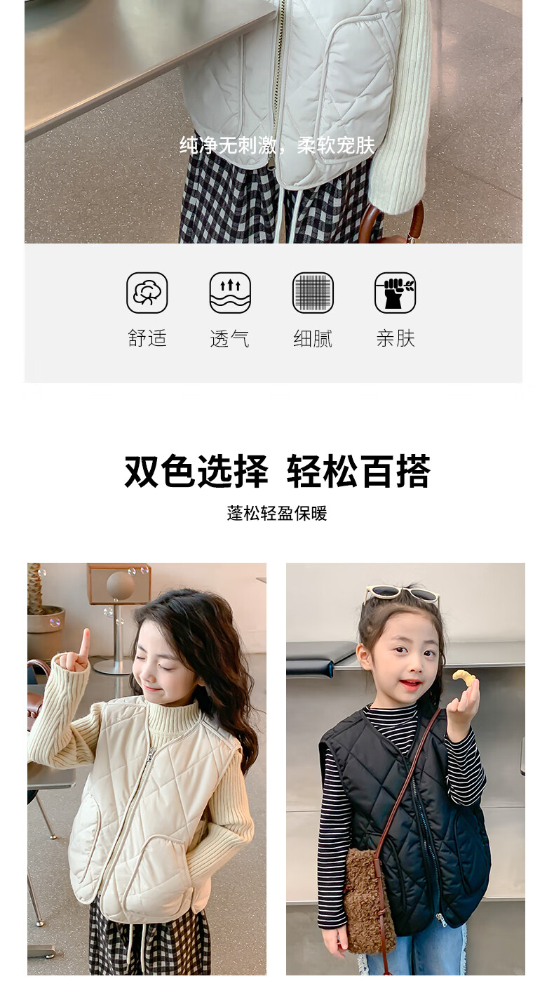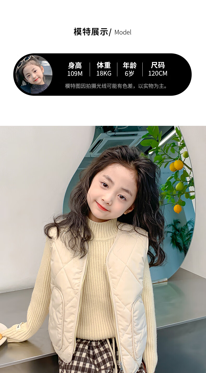 New children's school uniform waistcoat autumn and winter thin warm vest for boys and girls to wear inside and outside, medium and large children plus velvet waistcoat trendy off-white 130