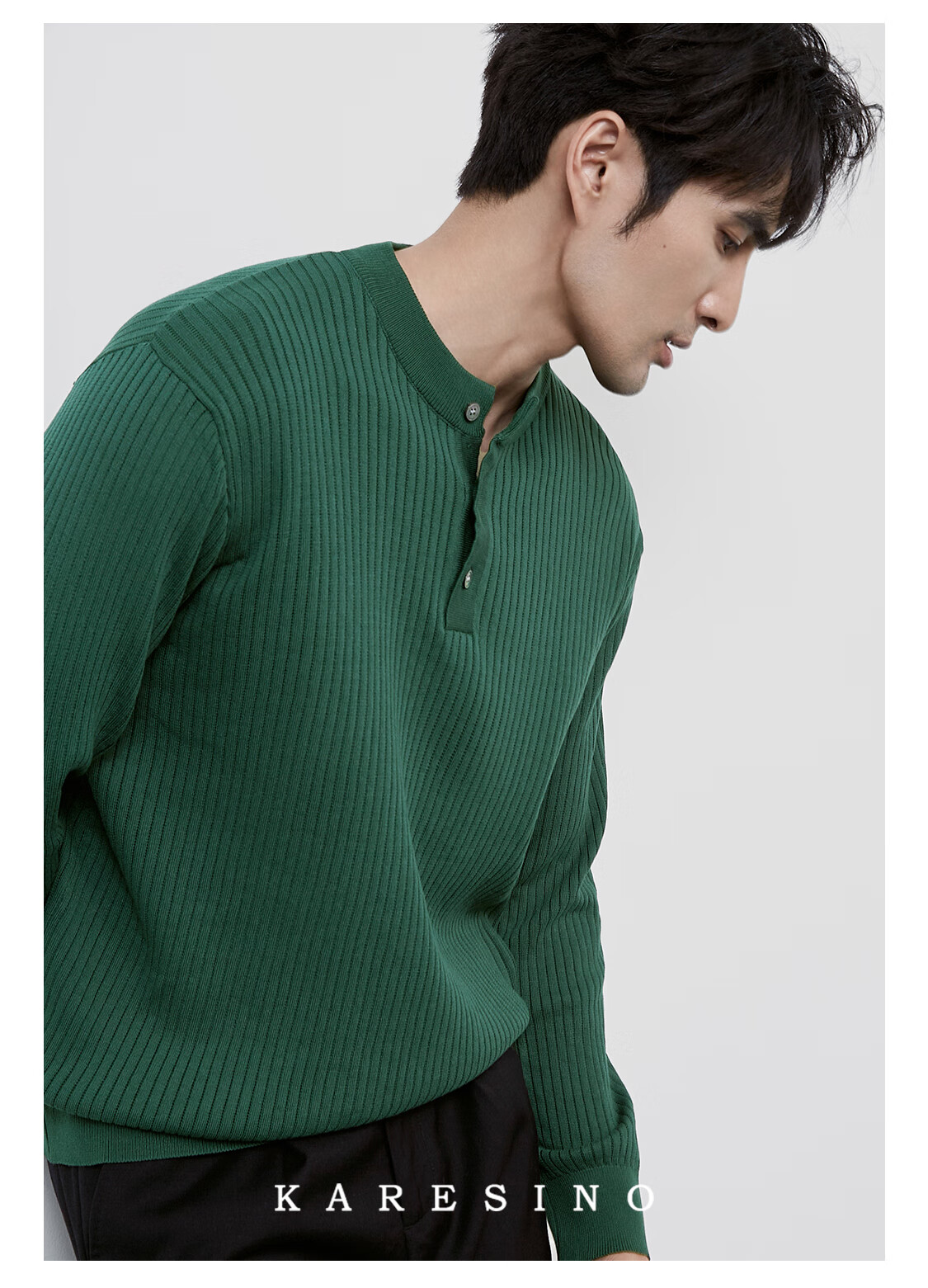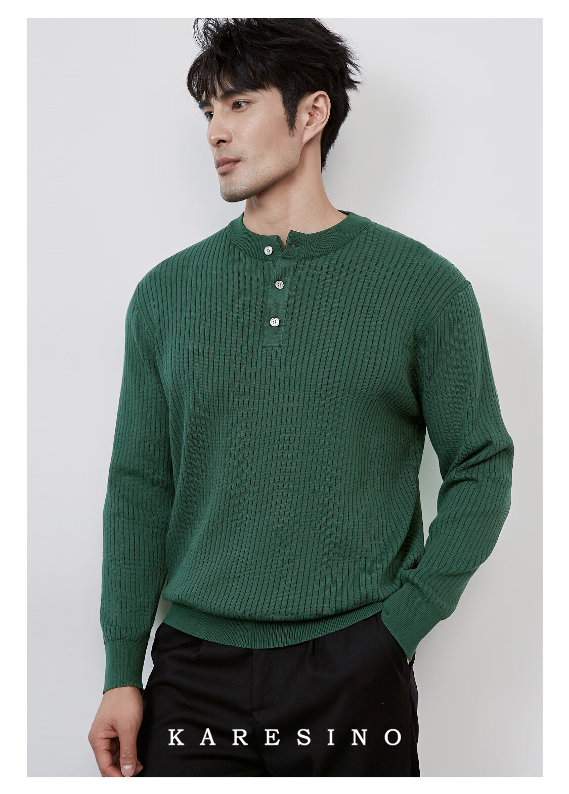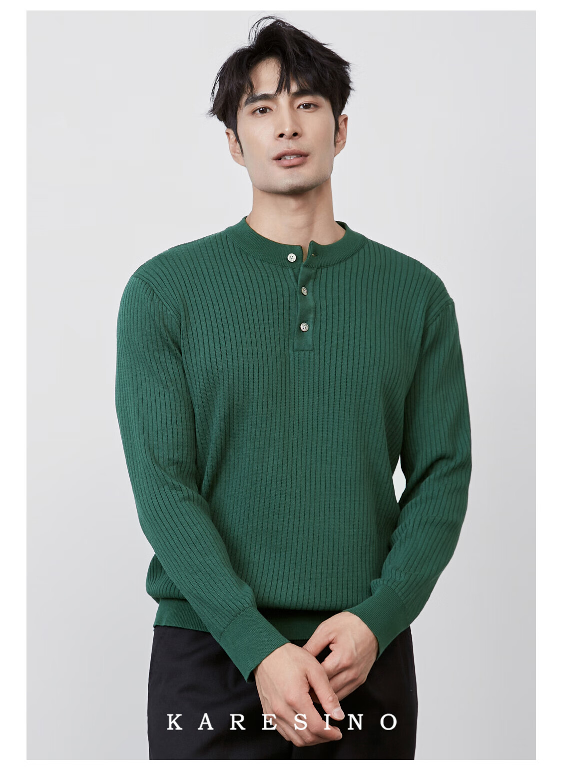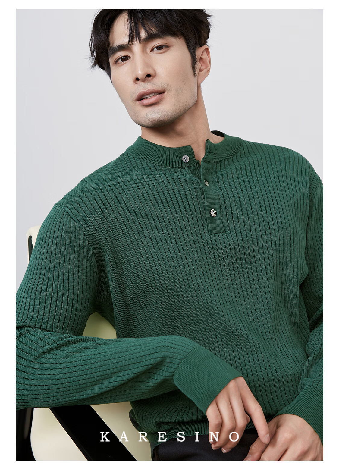 KARESINO autumn and winter high-end business Henry collar sweater slim casual all-match round neck sweater men's base shirt vegetable green M