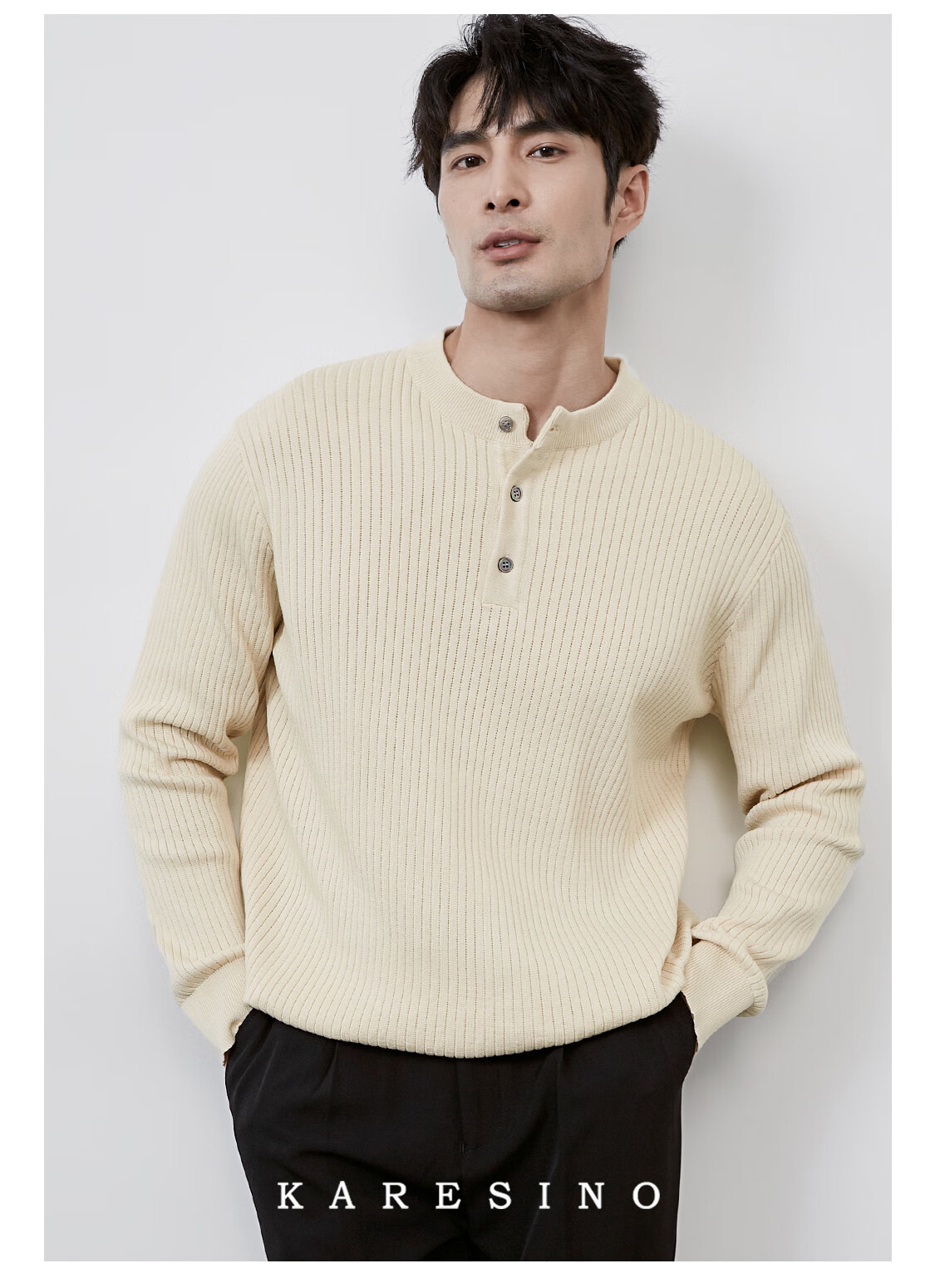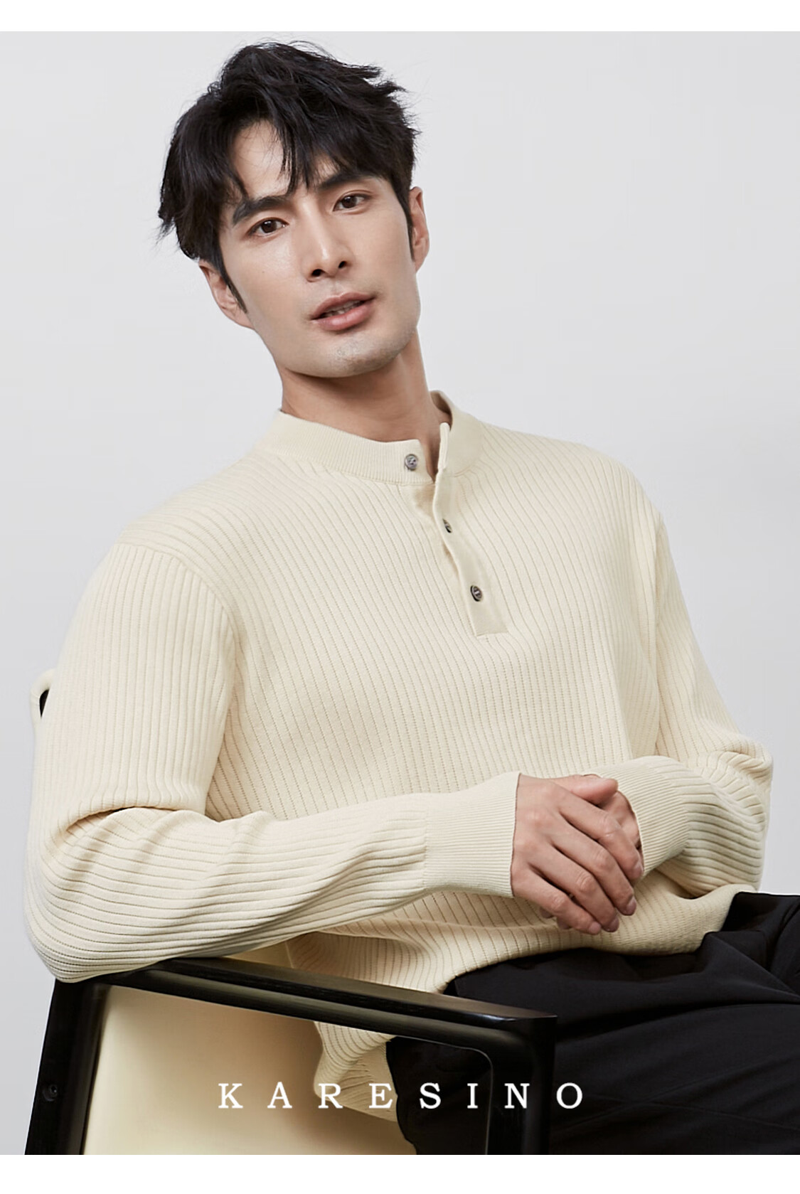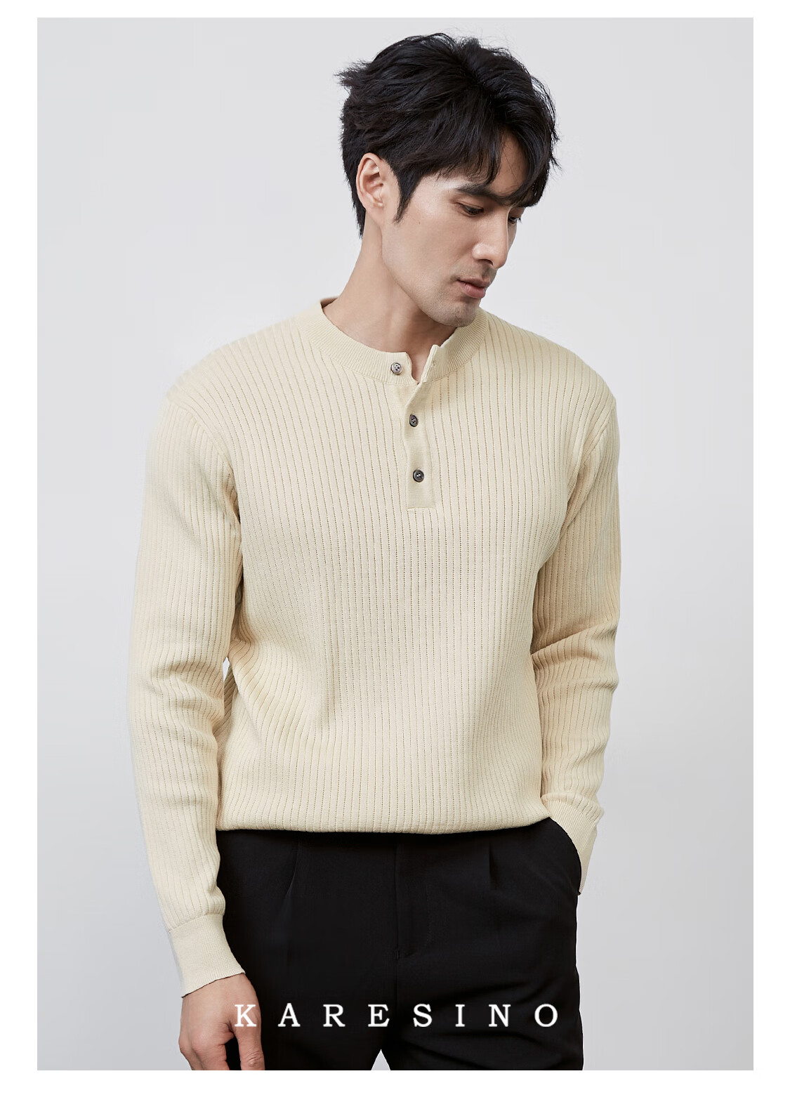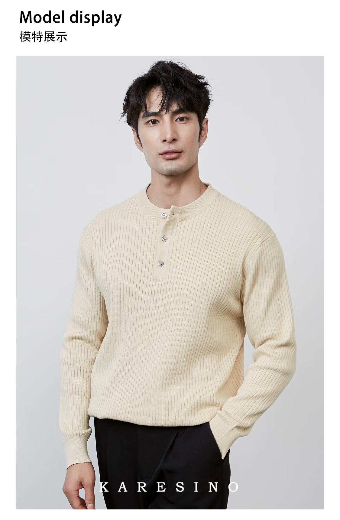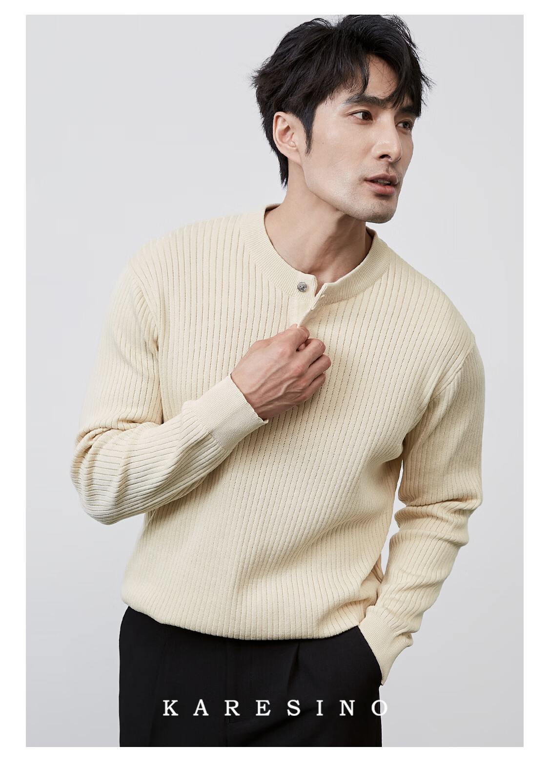KARESINO autumn and winter high-end business Henry collar sweater slim casual all-match round neck sweater men's base shirt vegetable green M