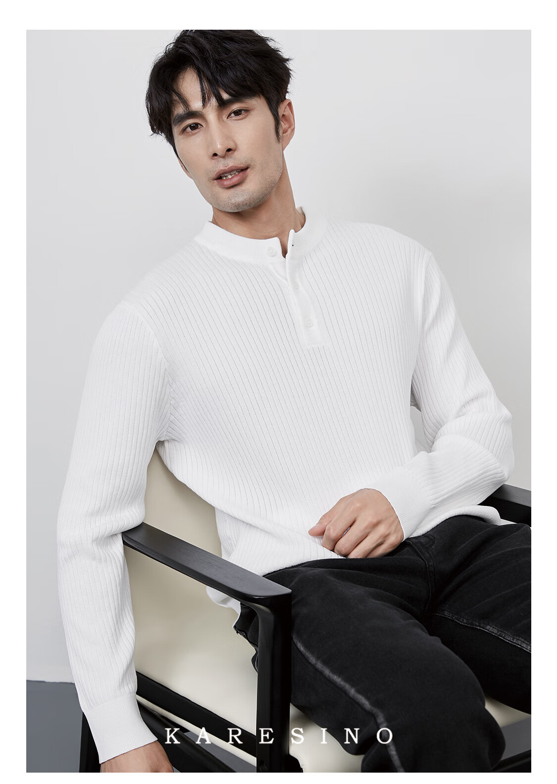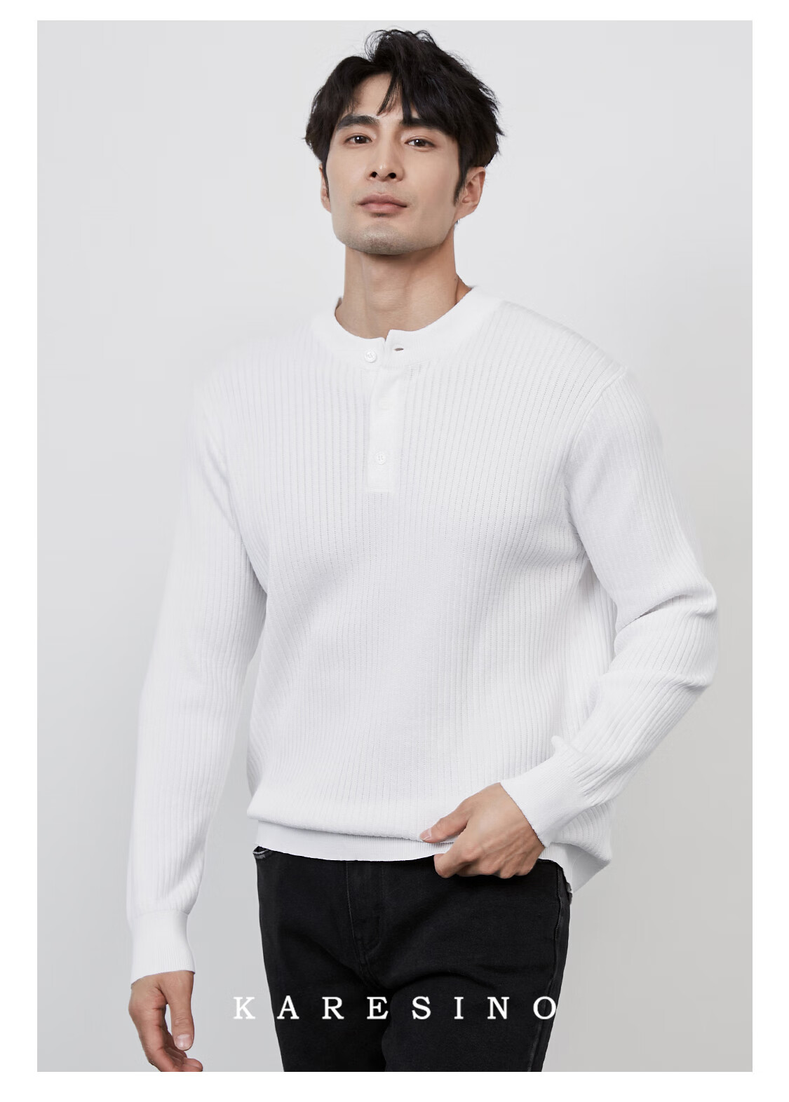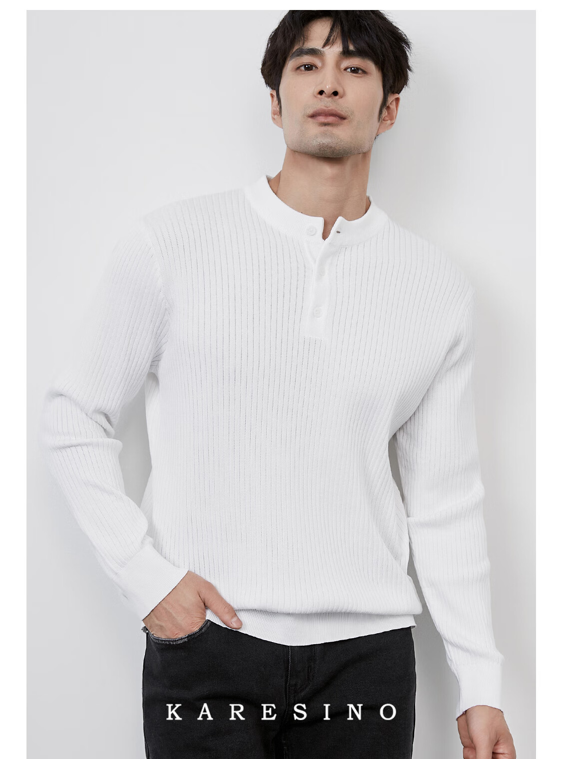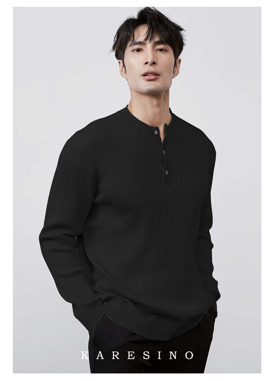 KARESINO autumn and winter high-end business Henry collar sweater slim casual all-match round neck sweater men's base shirt vegetable green M
