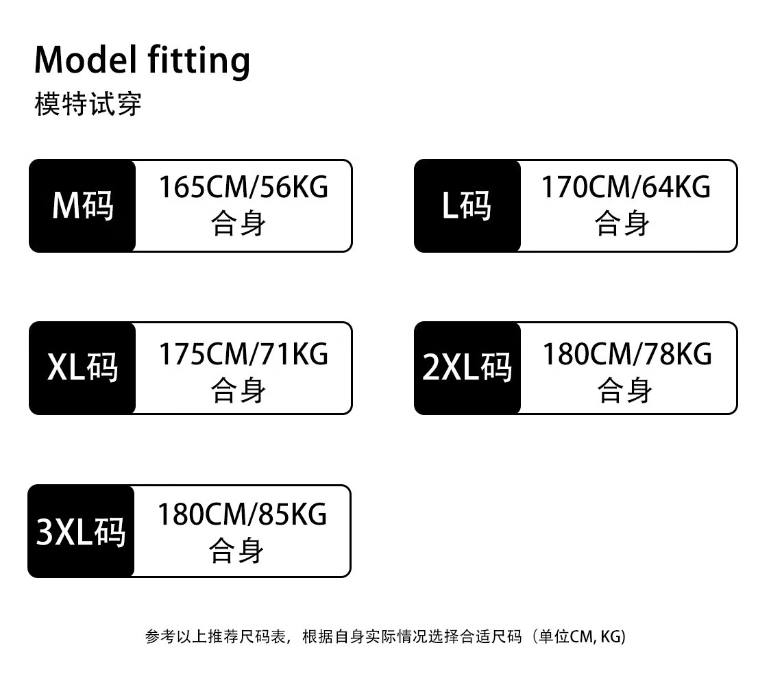 China (cm) 165 / 88-90 170 / 96-98 175 / 108-110 180 / 118-122 185 / 126-130