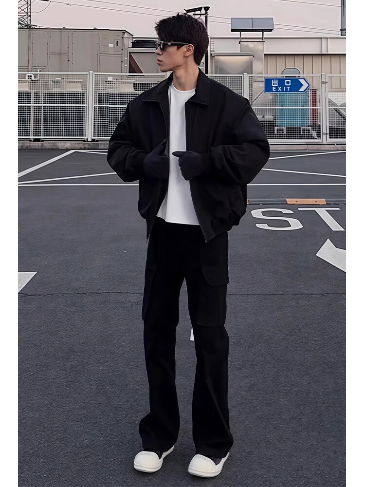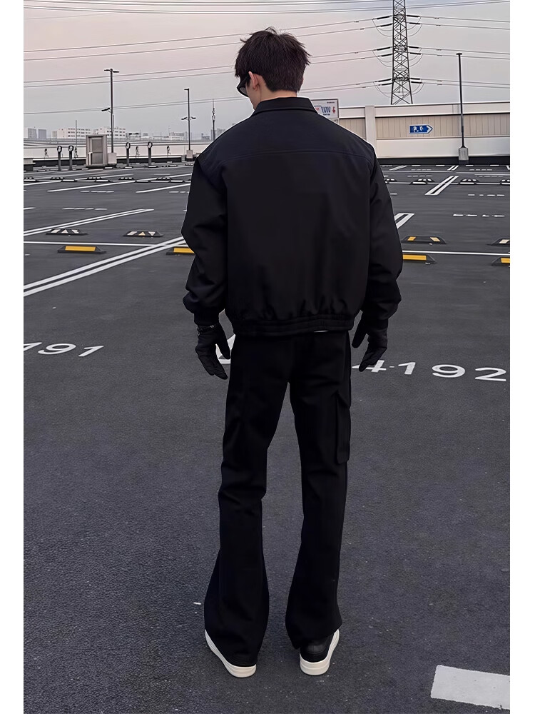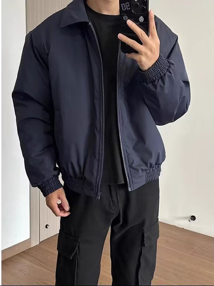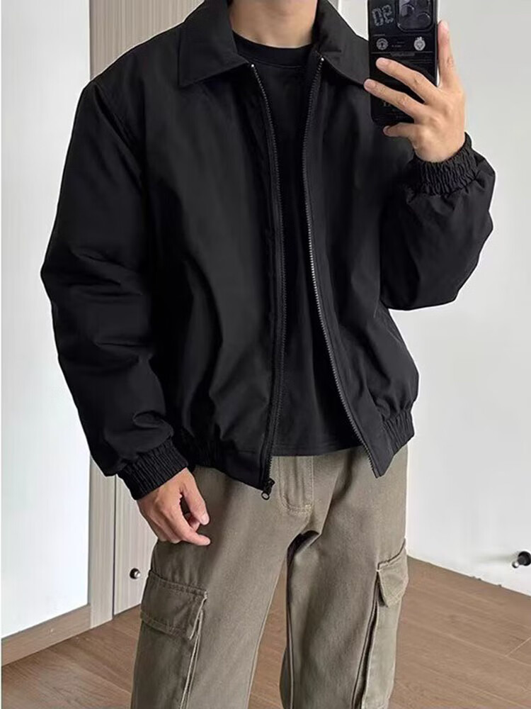 7 high-quality Hong Kong style casual jackets for men, autumn and winter quilted warm lapel jackets, men's work clothes, pilot cotton coats, cotton clothes, GWHG-3386 black XL