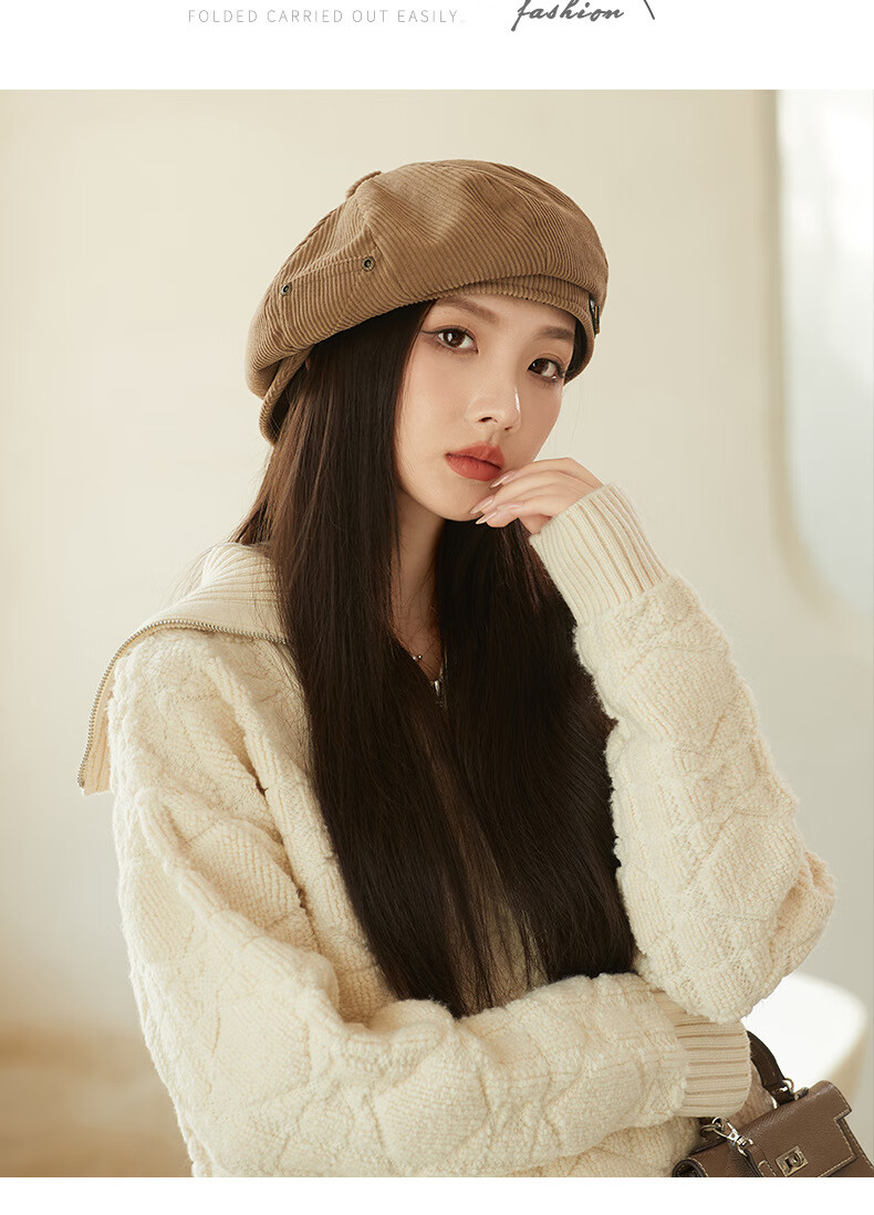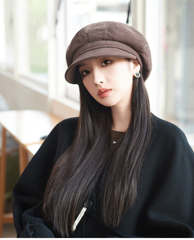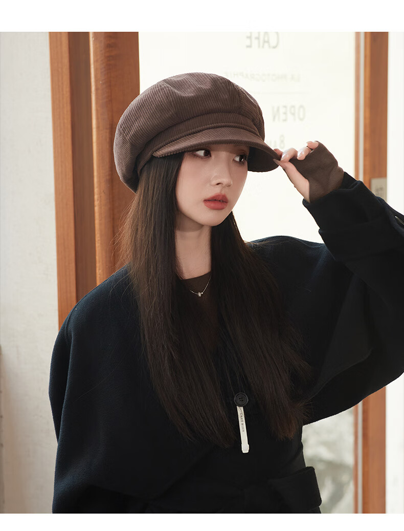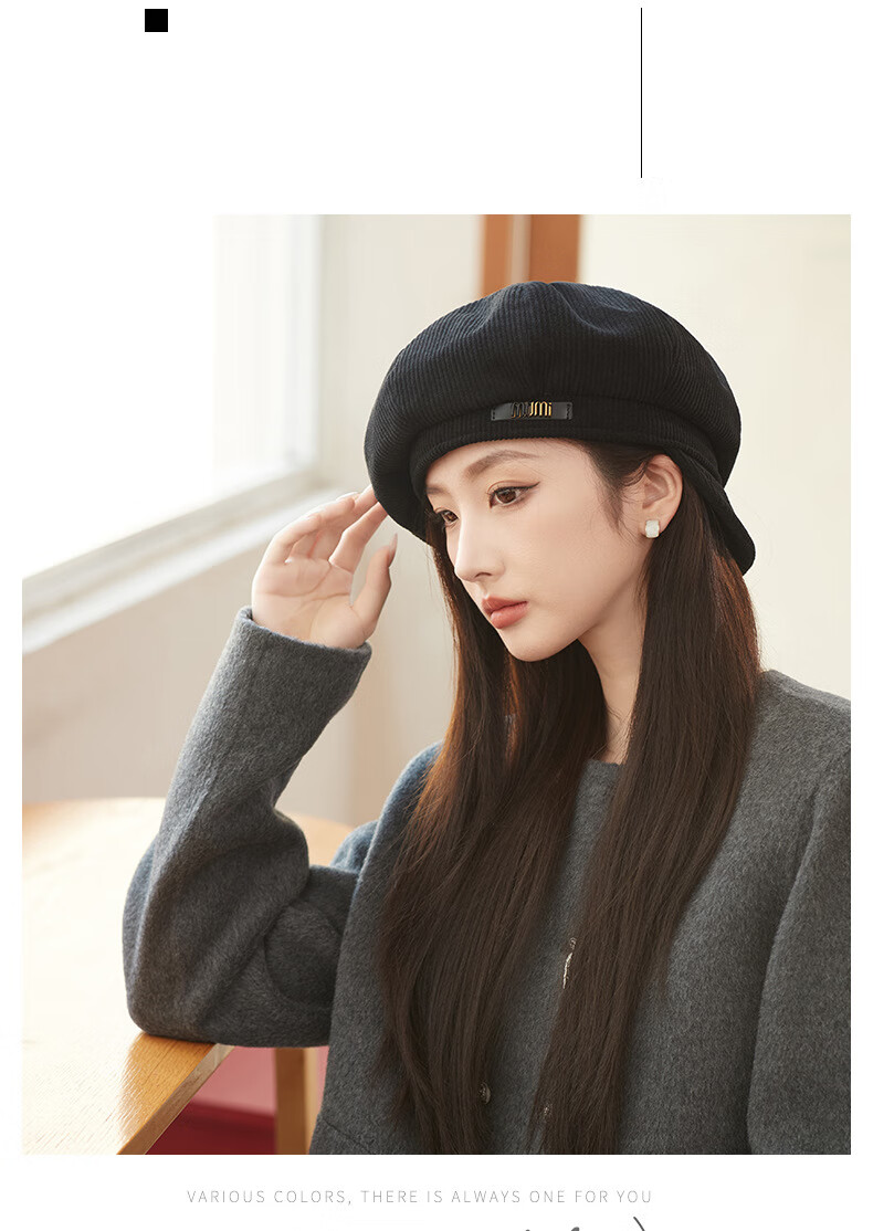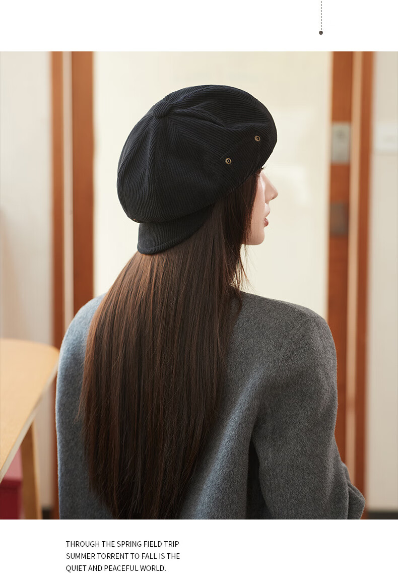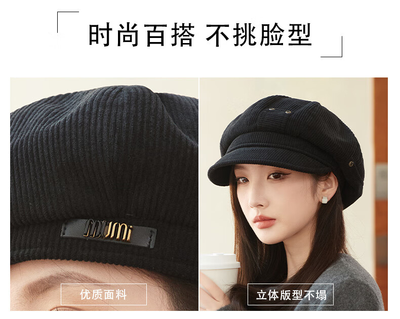 Raodie reversible big head painter's hat female beauty Lard style beret autumn and winter style face-showing small octagonal hat MM1558 black one size