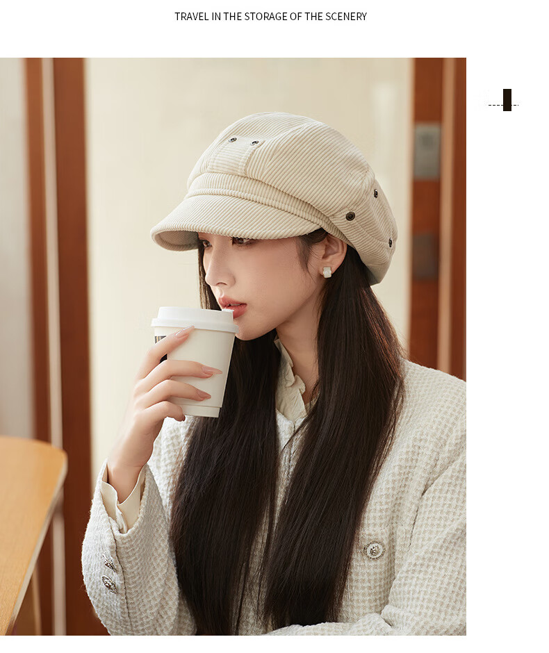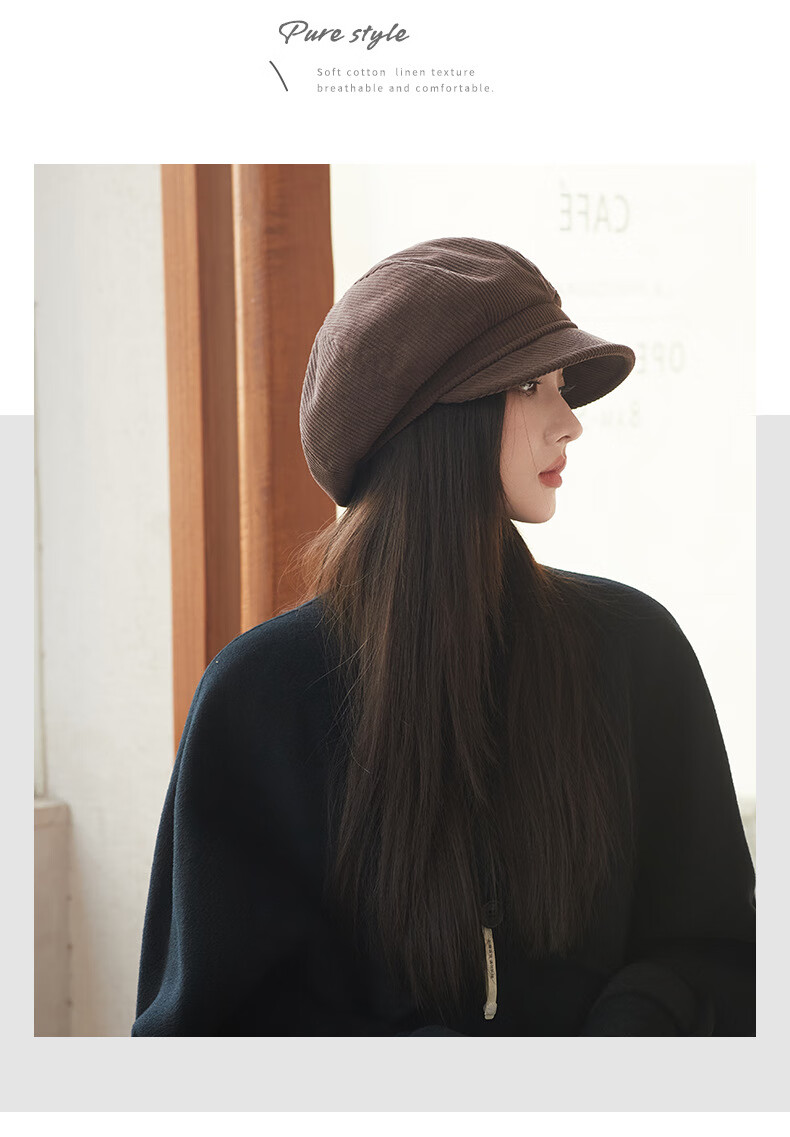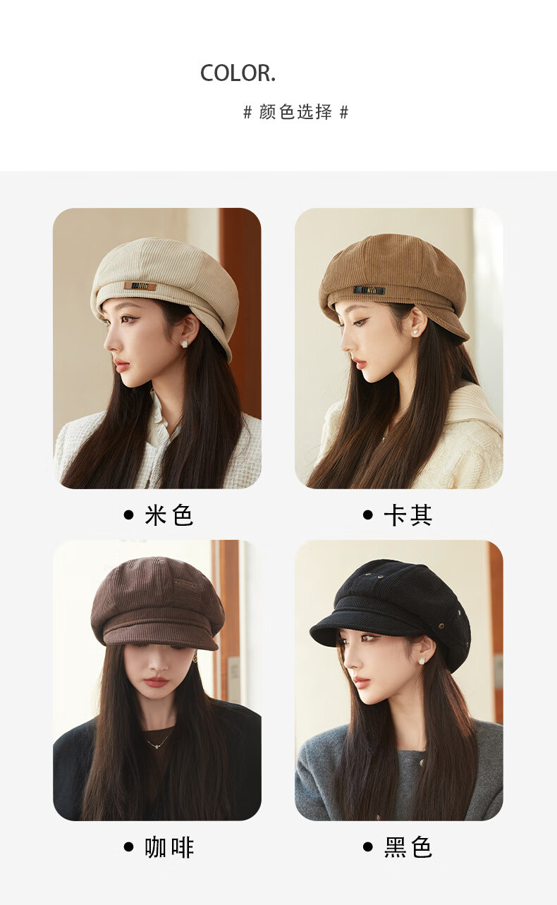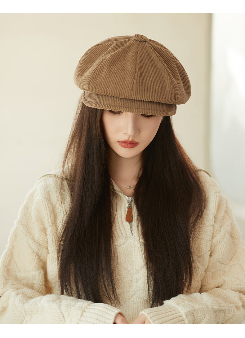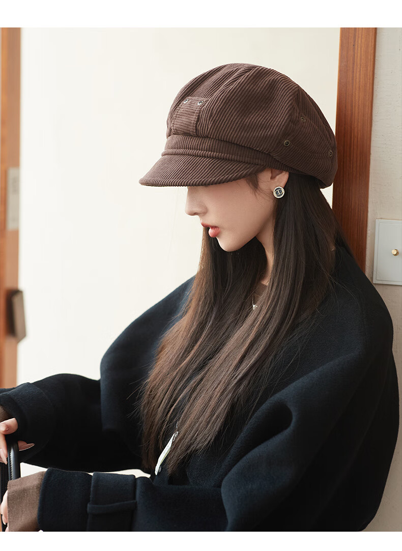 Raodie reversible big head painter's hat female beauty Lard style beret autumn and winter style face-showing small octagonal hat MM1558 black one size