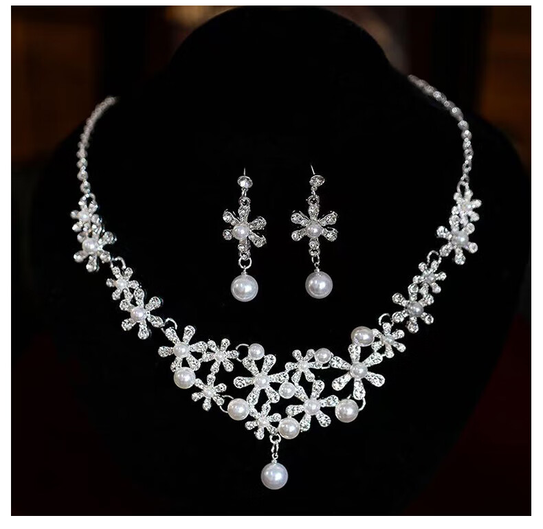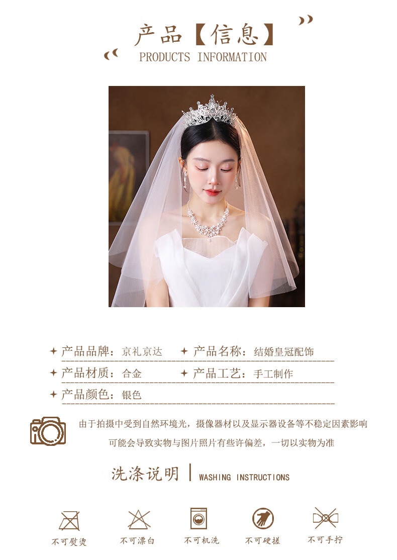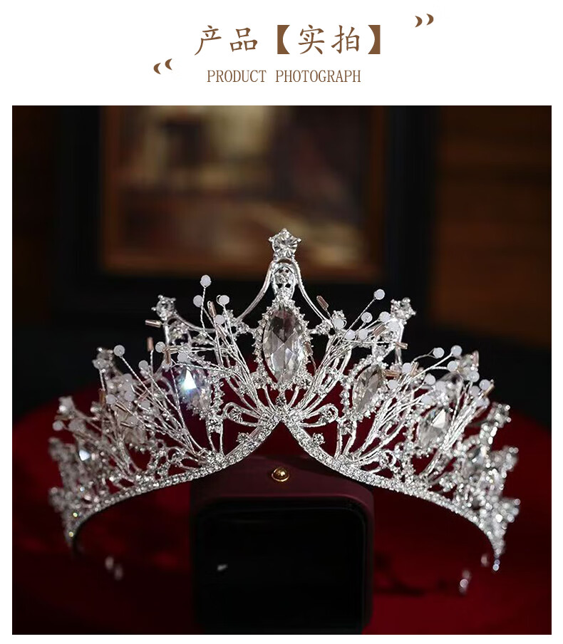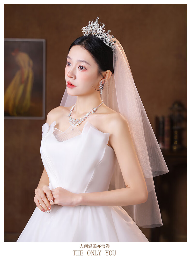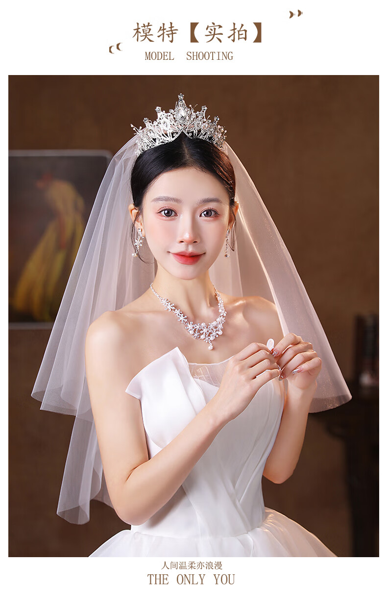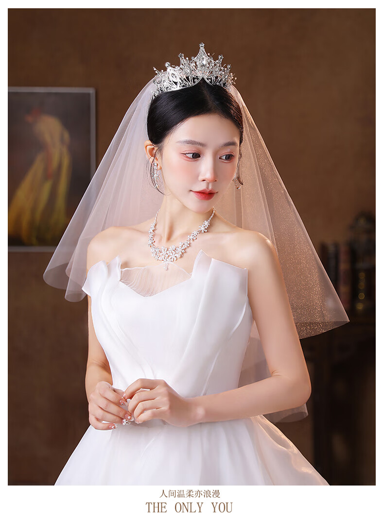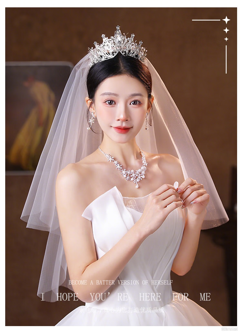 Bridal Crown Tiara, Veil, Proposal, Certificate, Marriage, Korean Forest Crystal Crown Wedding Dress, Hair Accessories for Adults, Crown + Veil + Necklace, Ear Clip Set, Four-piece Set