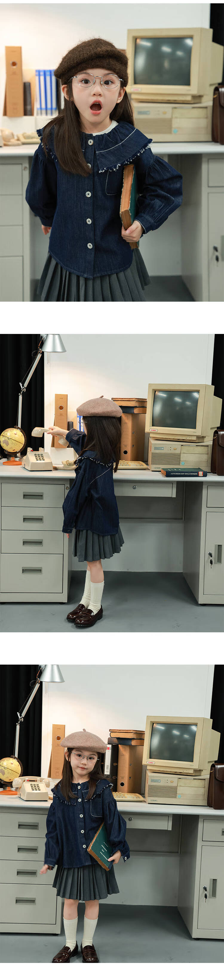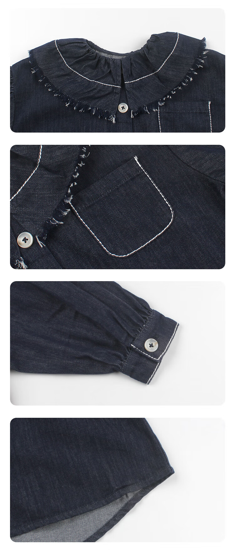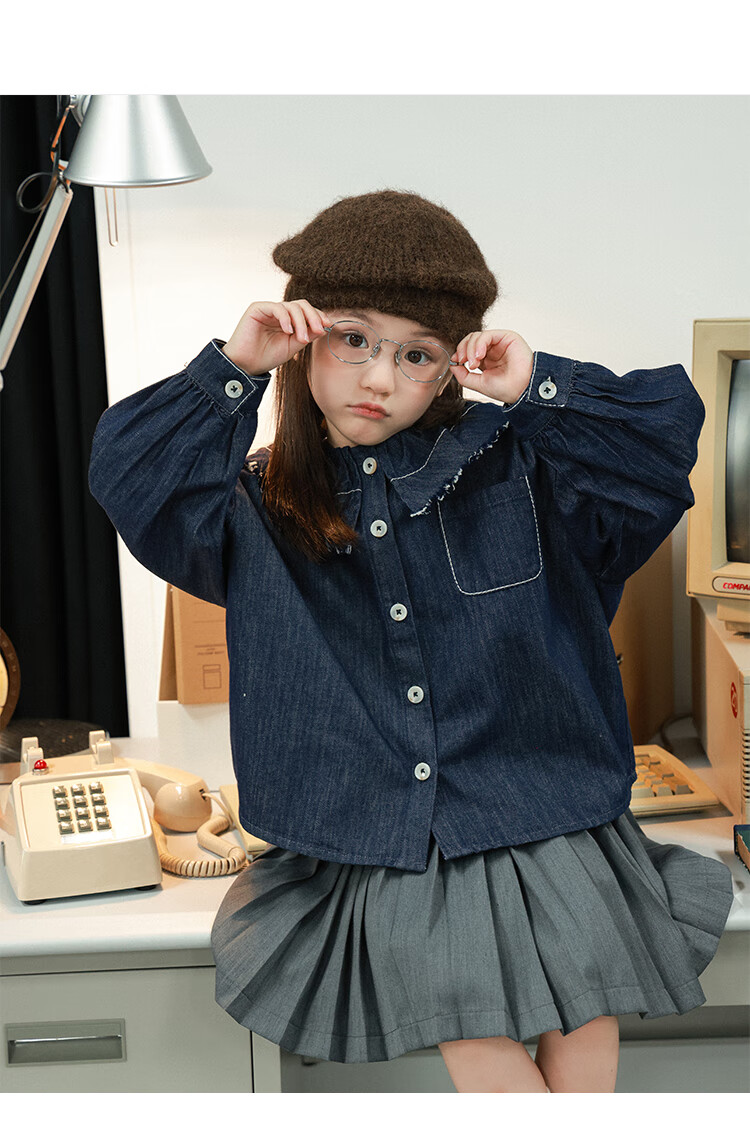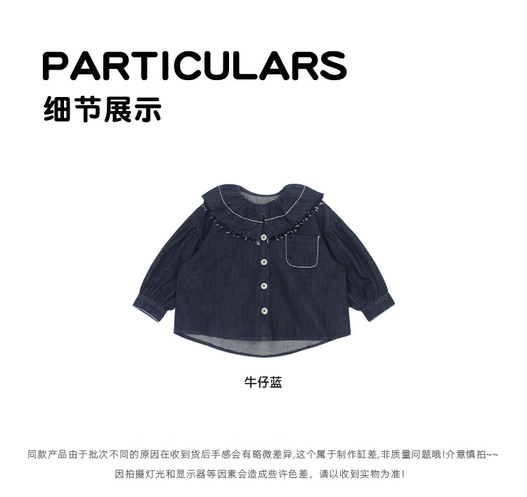 UTOUTO Big Ear Elephant Girls Hairy Lapel Denim Top 2025 Autumn New Style Baoer Versatile Long Sleeve Top Denim Blue 100