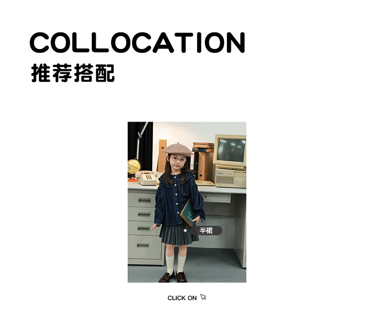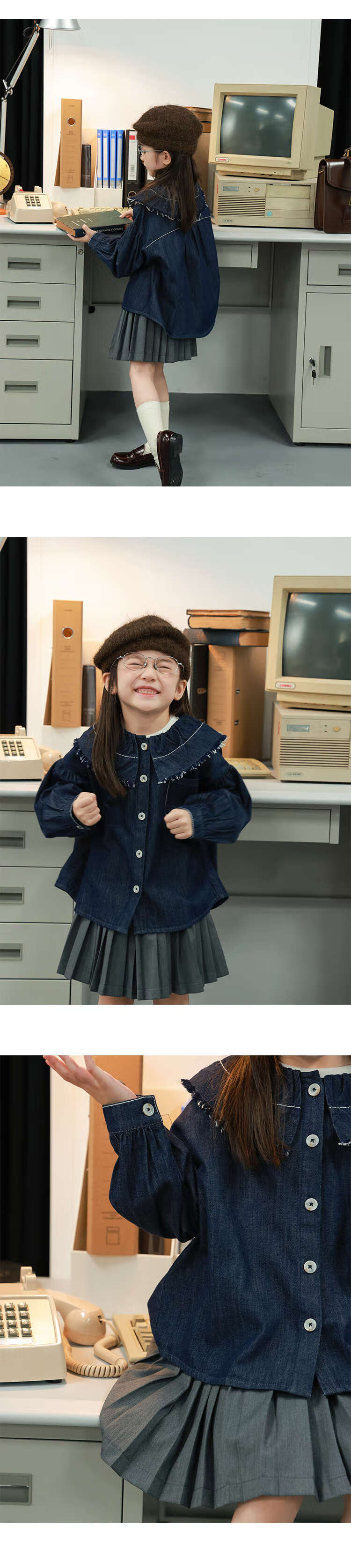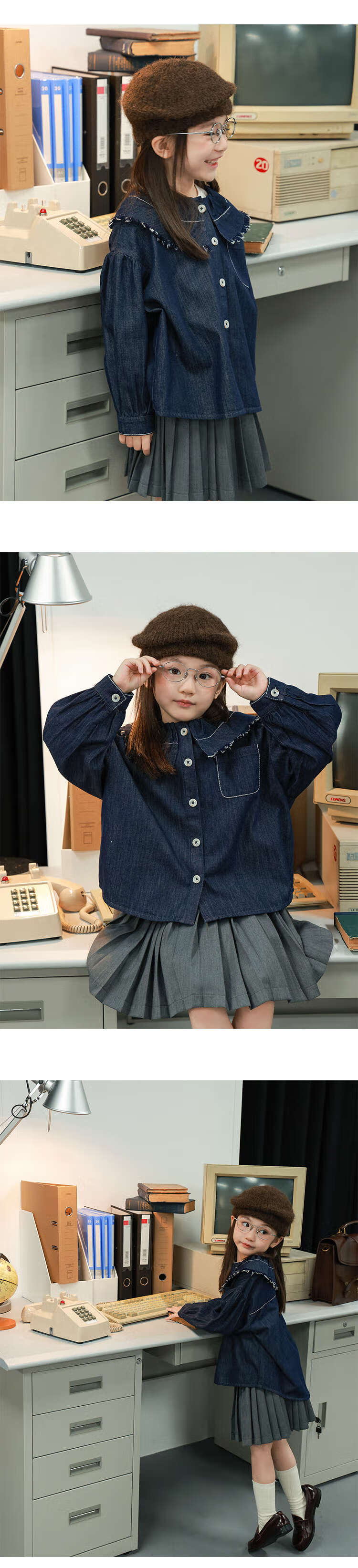 UTOUTO Big Ear Elephant Girls Hairy Lapel Denim Top 2025 Autumn New Style Baoer Versatile Long Sleeve Top Denim Blue 100