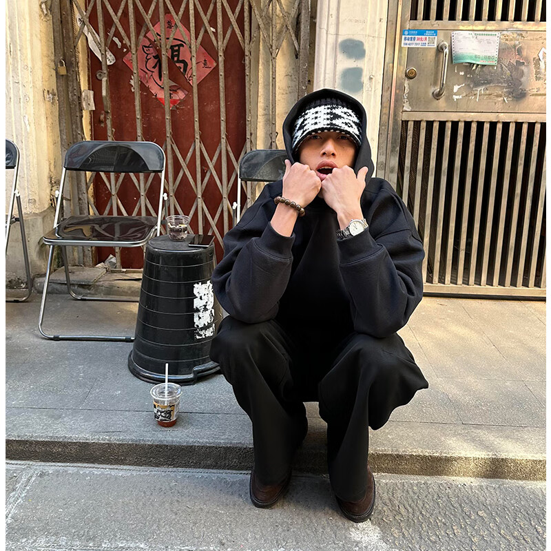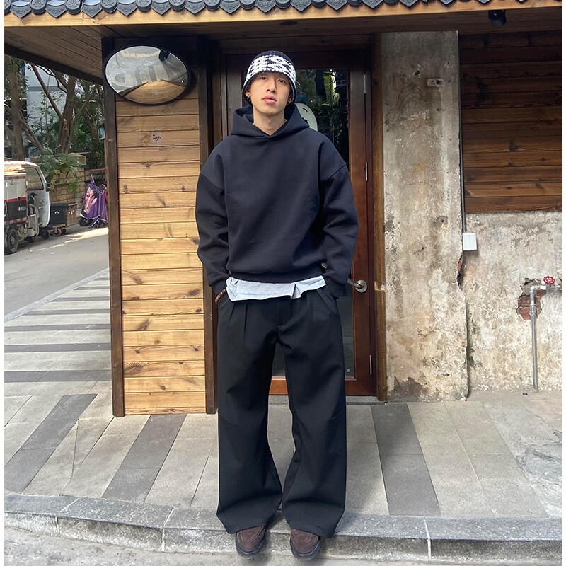 Shelley Jones dark gray short boxy sweatshirt men's spring and autumn youth stiff hoodie American retro heavy jacket dark gray XL recommended 120-140Jin Jin equals 0.5 kg