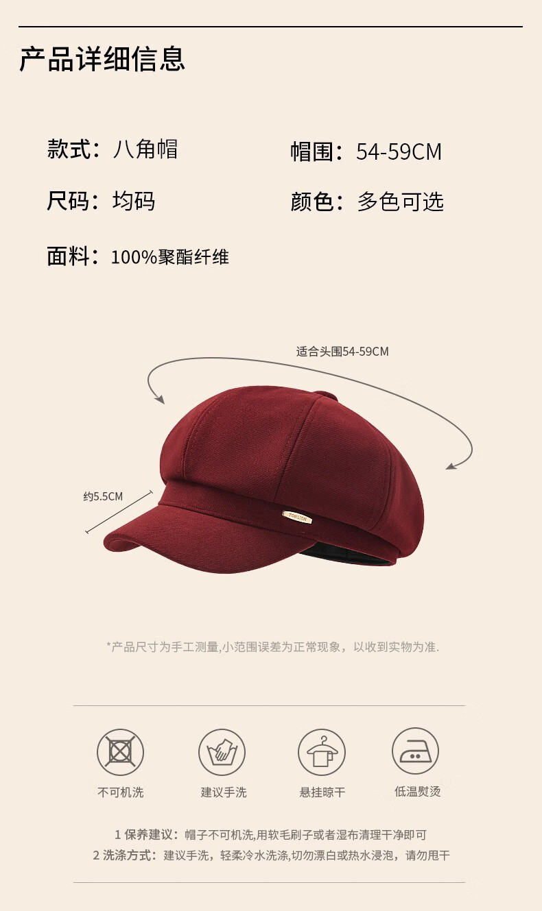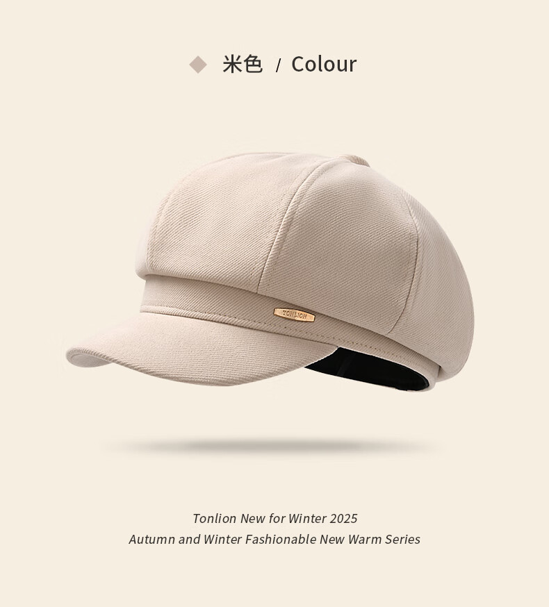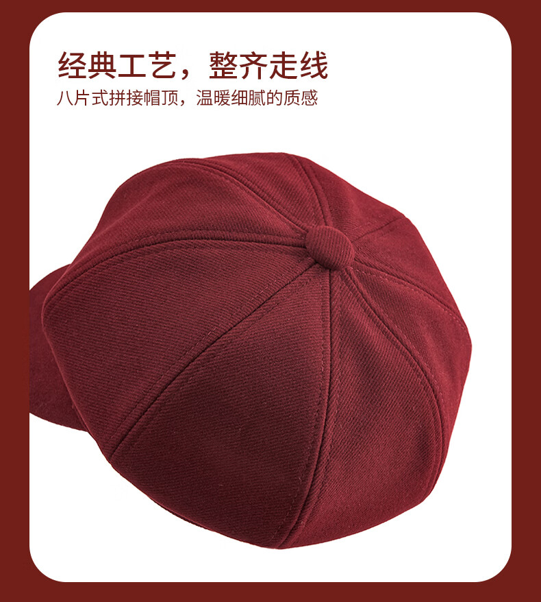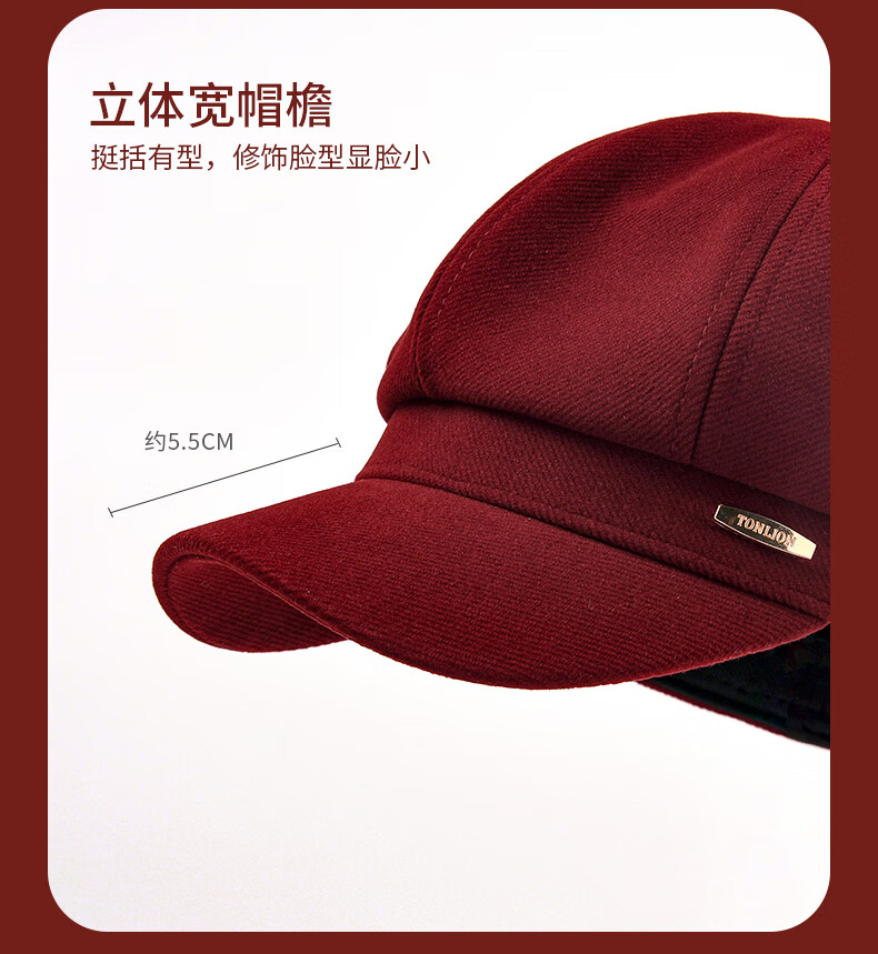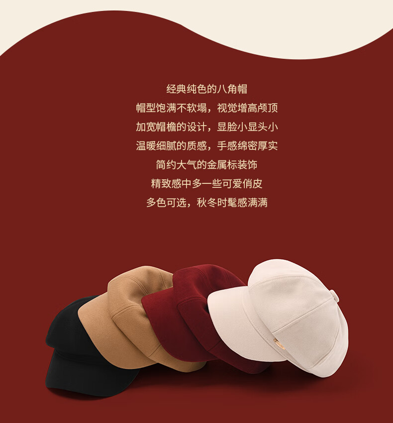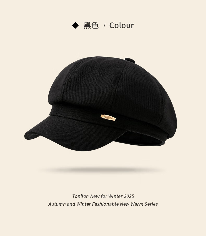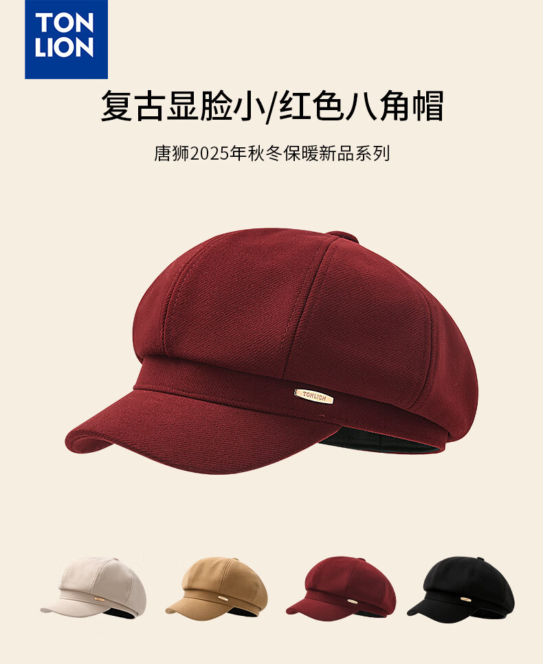 Tang Lion (TonLion) red beret women's autumn and winter British style casual retro all-match fashion face little painter hat octagonal hat black