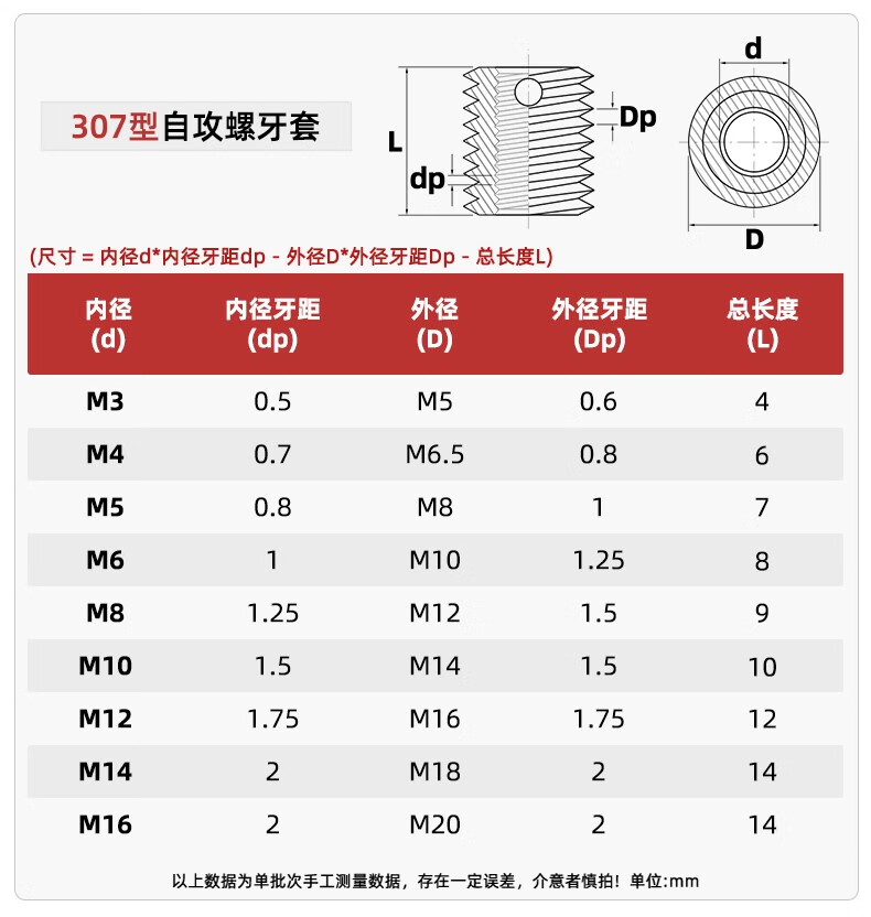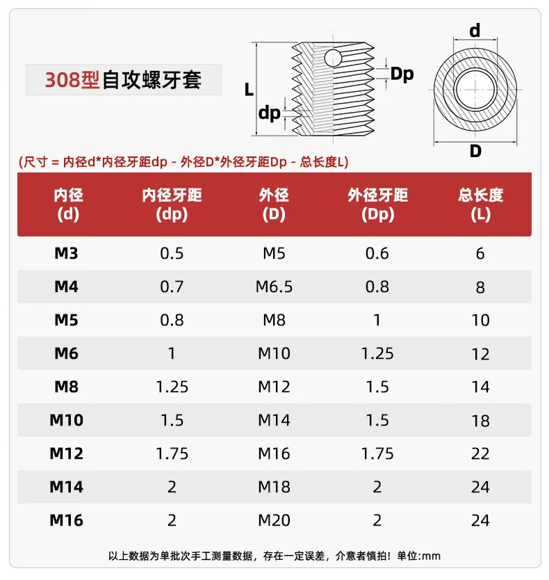 Tianzhuo Hardware 307/308 stainless steel self-tapping screw sleeve/thread protective sleeve three-hole brace M3M4M5M6M8M10M12 self-tapping brace installation tool M16*2.0-black