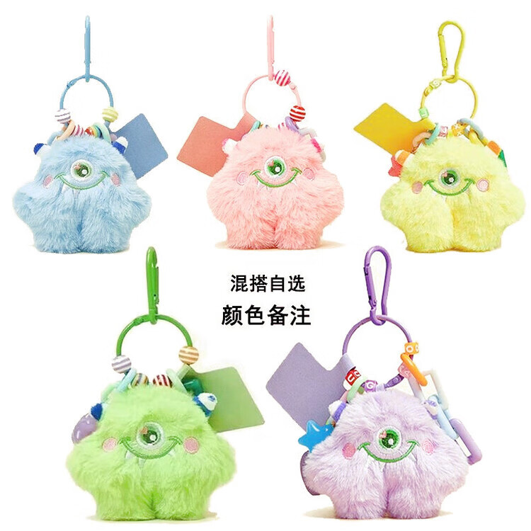 Douyin's same plush little monster anti-lost mobile phone pendant key chain pendant small gift for boyfriend's schoolbag on Chinese Valentine's Day Luxurious color chain - green