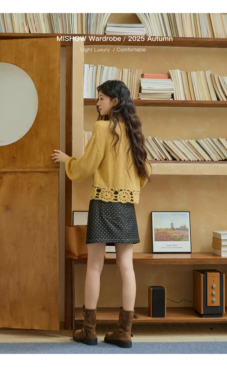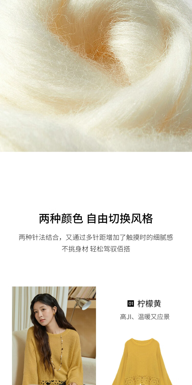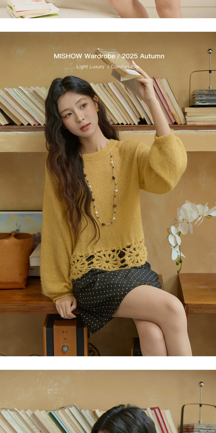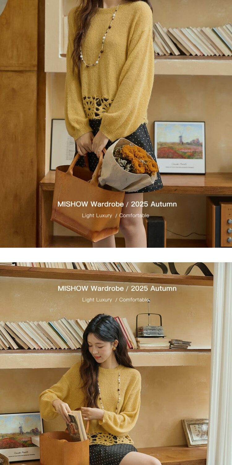 Mystery Show Thin Crocheted Sweater Women's 2025 Autumn New Loose Hollow Lazy Wool Top Lemon Yellow M