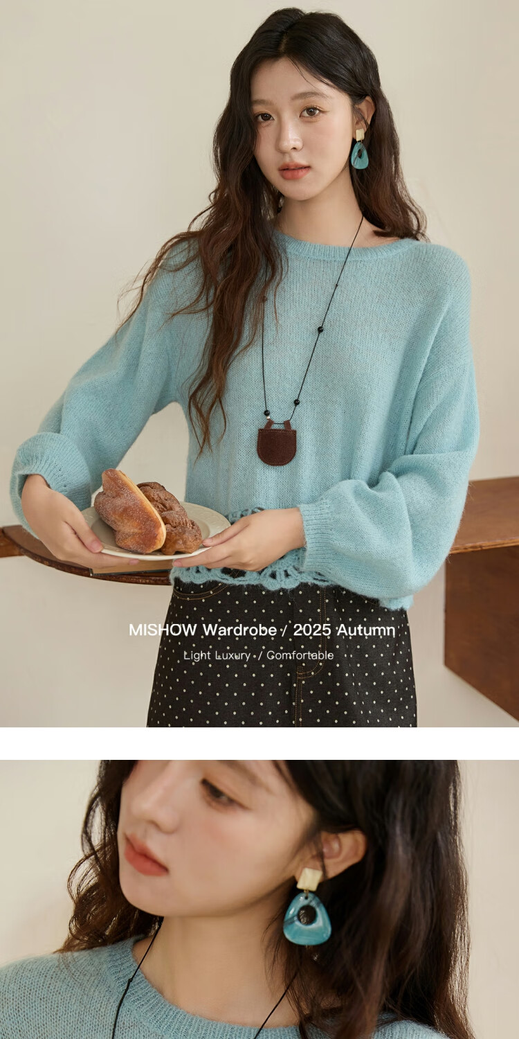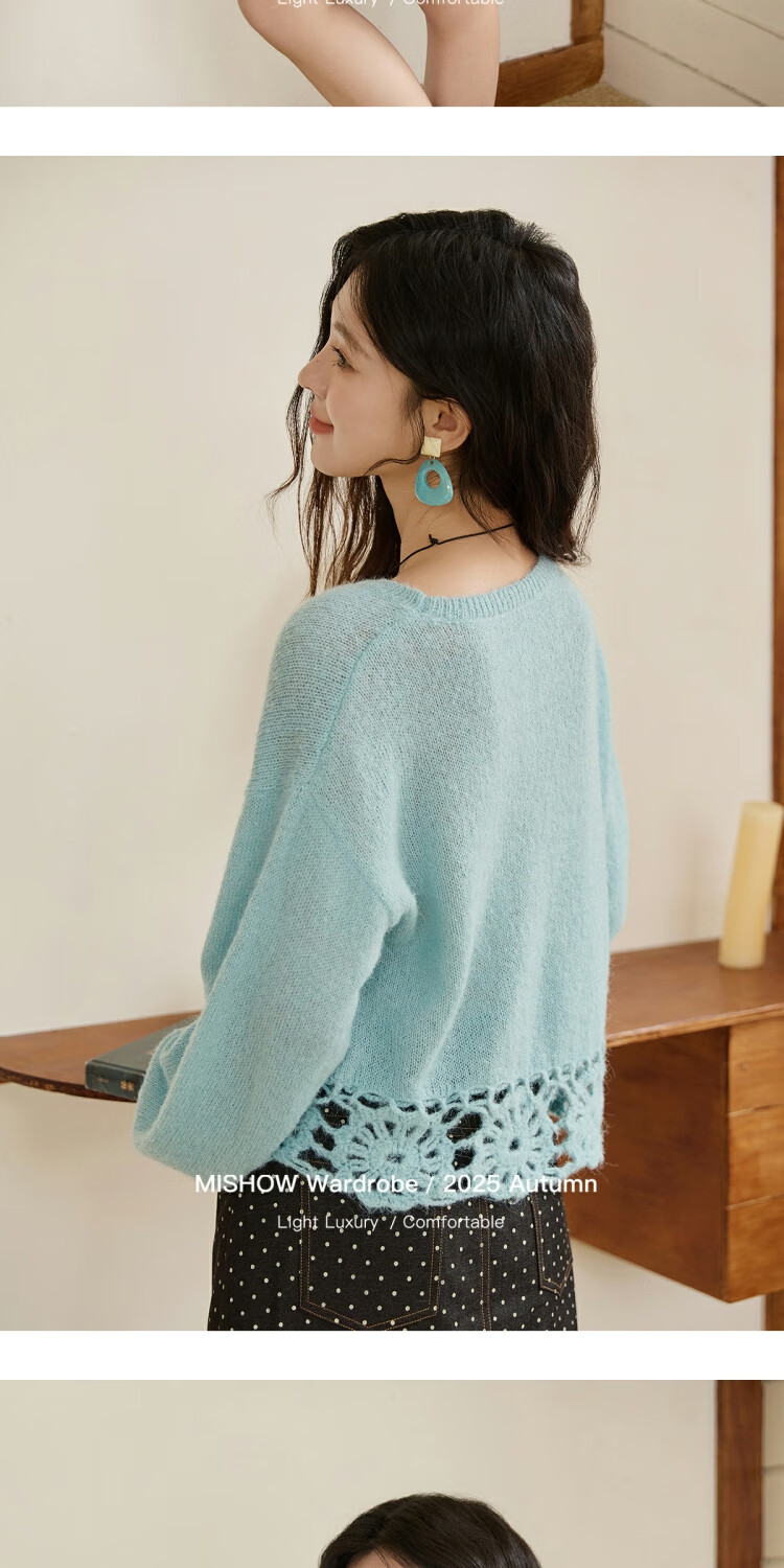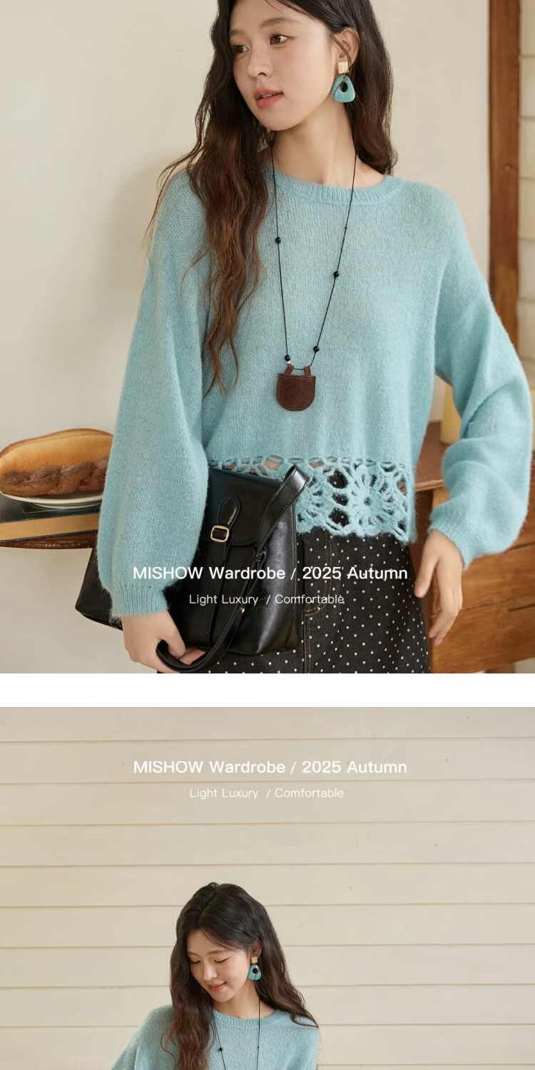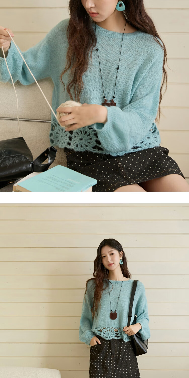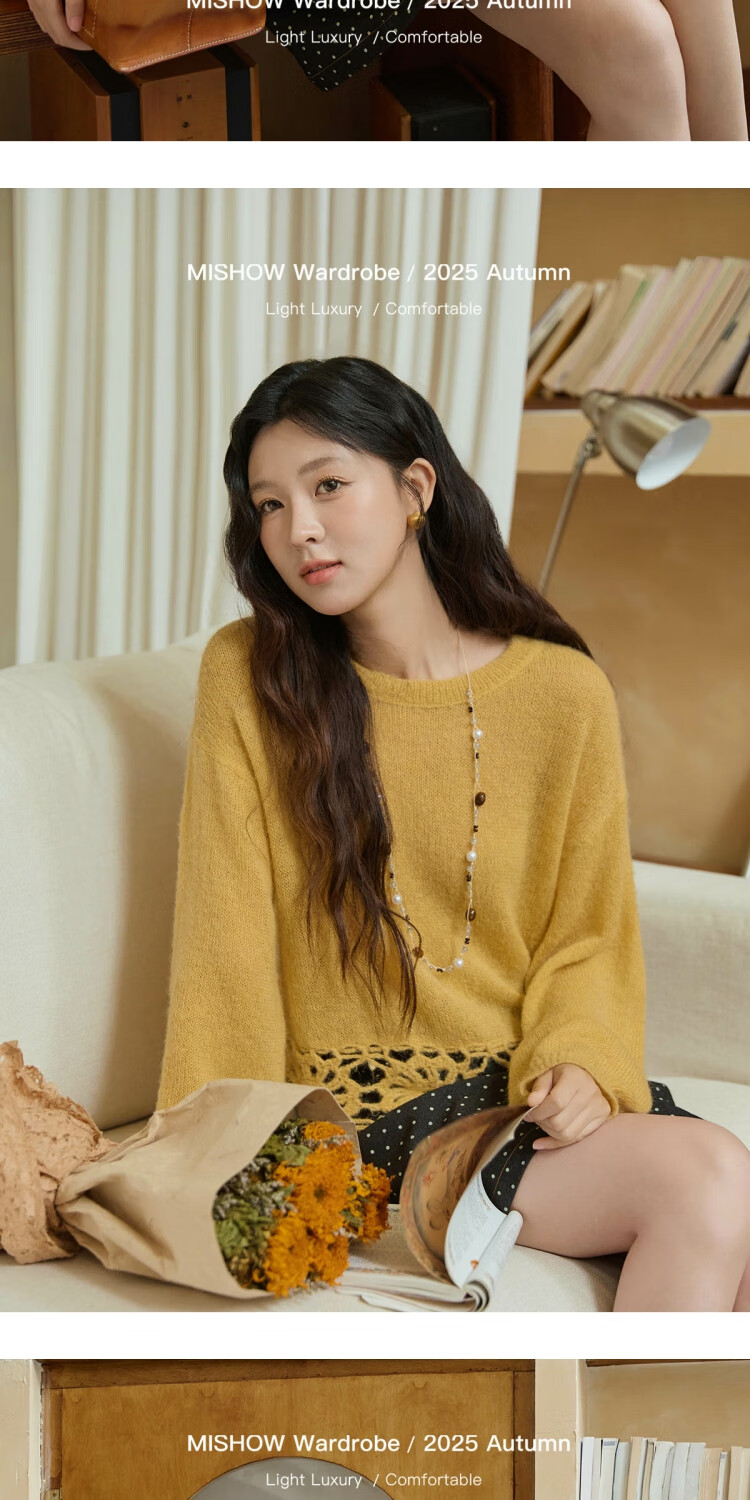 Mystery Show Thin Crocheted Sweater Women's 2025 Autumn New Loose Hollow Lazy Wool Top Lemon Yellow M