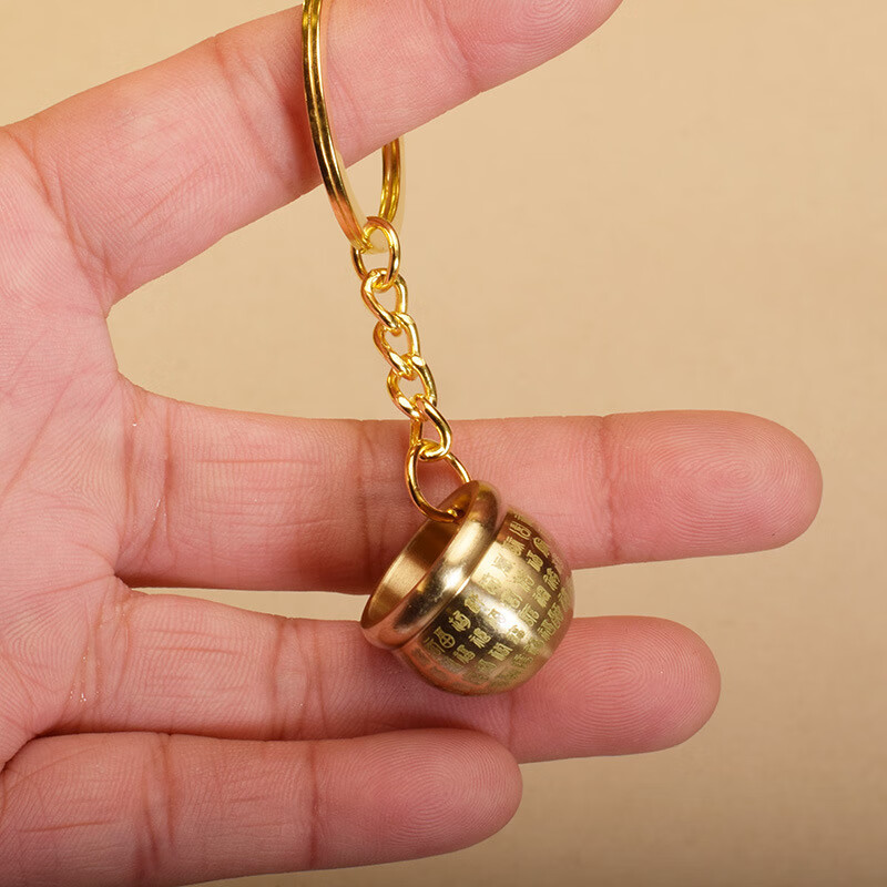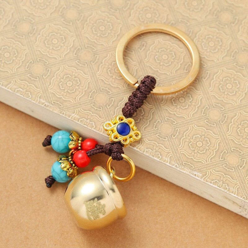 2025 Fortune Brass Keychain Baifu Cylinder Five Emperors Money Hoist Cart Key Pendant High-end Gift Keychain Brown Rope Five Emperors Money + Baifu Cylinder + Gourd/Give Sand