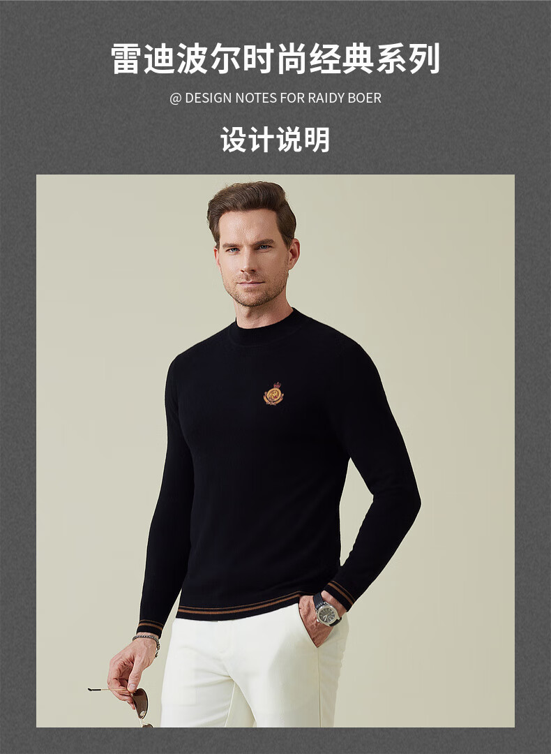 Raidy Boer Raidy Boer/Raidy Boer 100% sheep wool 2025 winter men's contrast color sweater cardigan 5052 black M /170/48