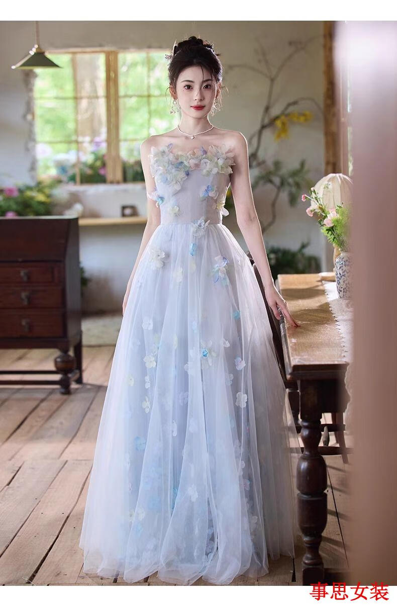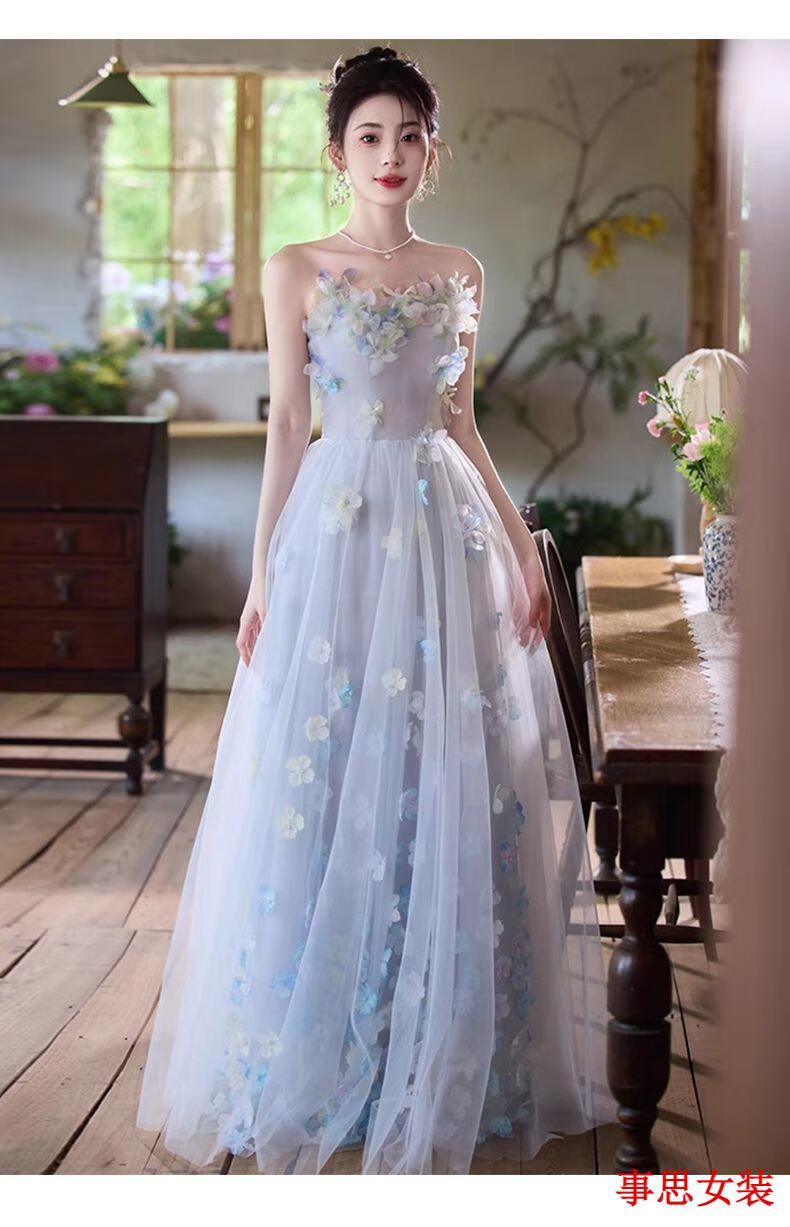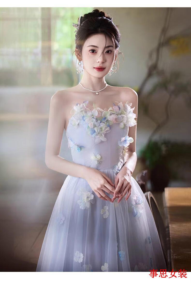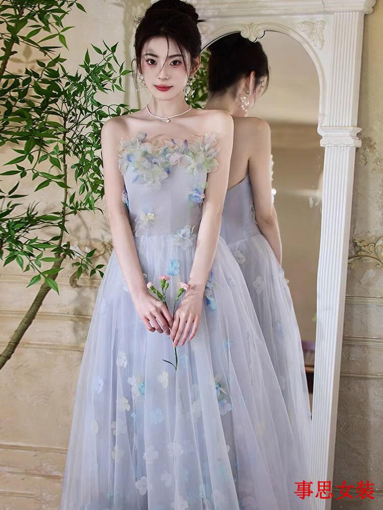 Shisi Tubeless Evening Dress for Women New Style Light Luxury Niche High-end Beautiful Adult Ceremony Banquet Host Feeling Gray 2XL Recommended 125-135 Jin Jin is equal to 0.5 kg