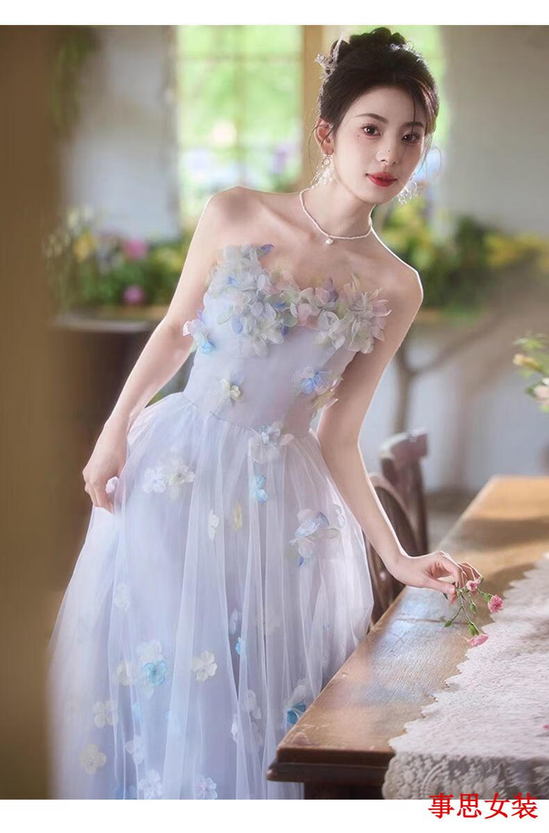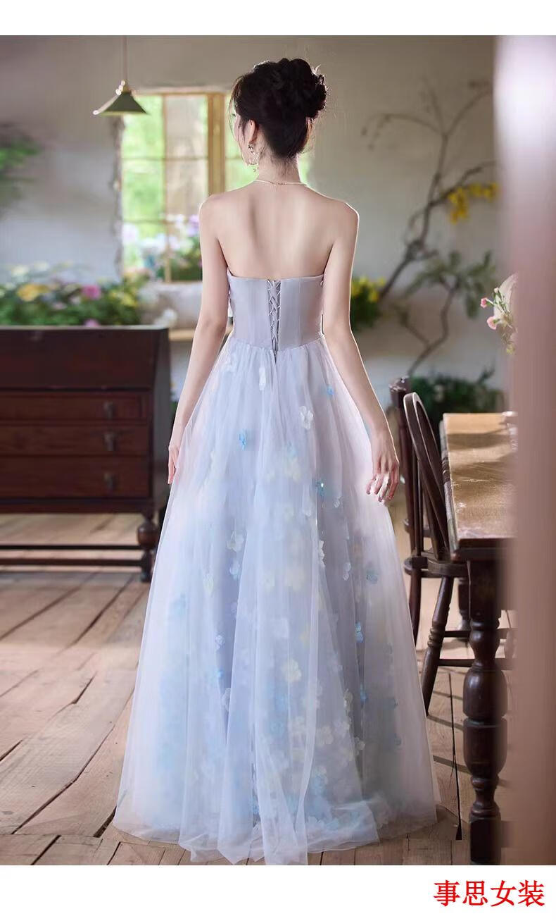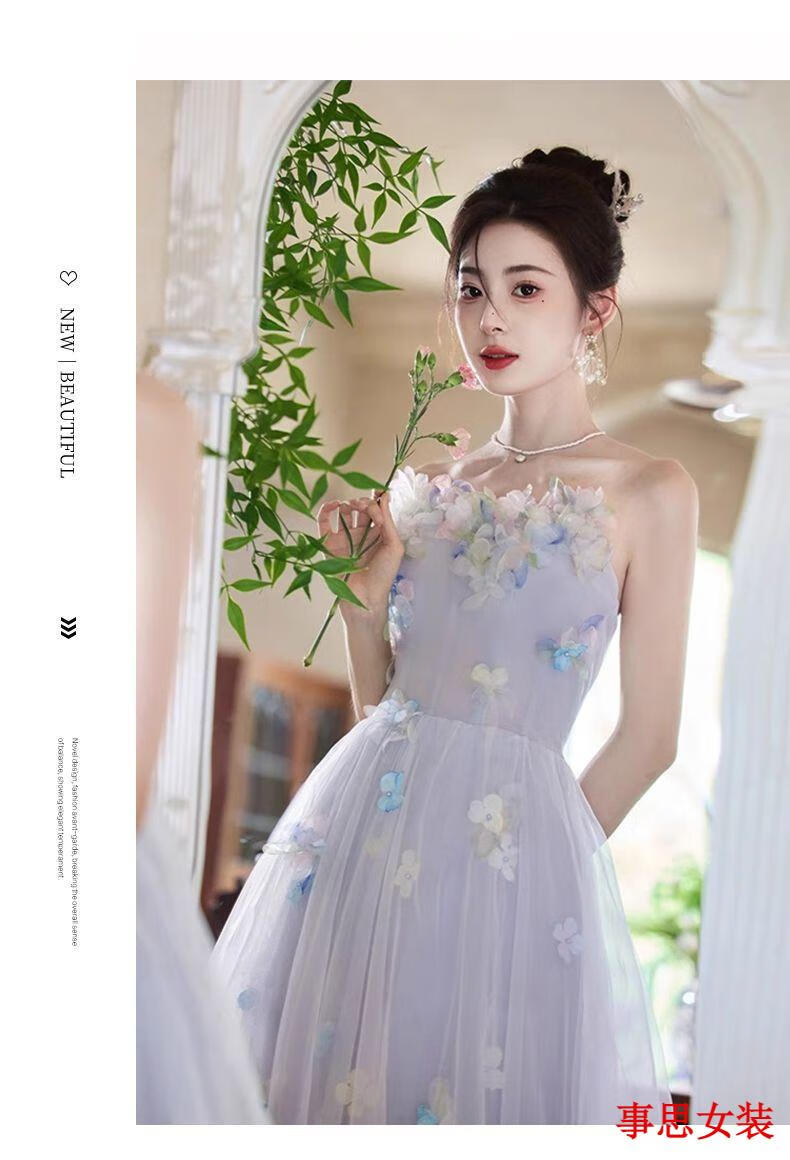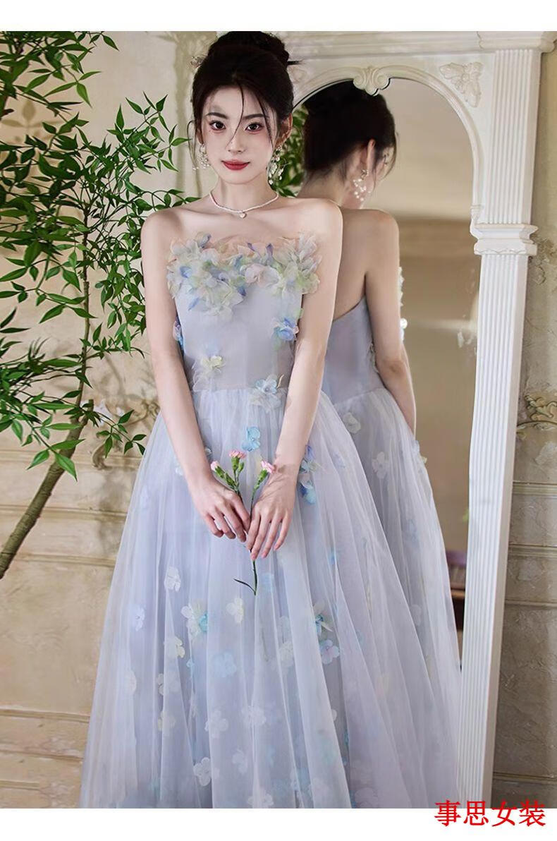 Shisi Tubeless Evening Dress for Women New Style Light Luxury Niche High-end Beautiful Adult Ceremony Banquet Host Feeling Gray 2XL Recommended 125-135 Jin Jin is equal to 0.5 kg