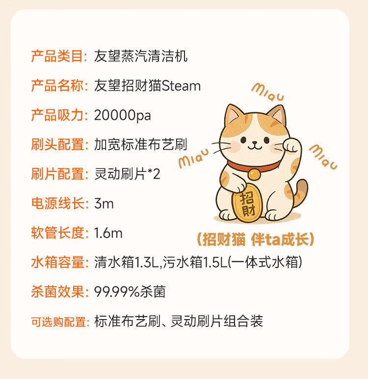 UWANT Flagship Fabric Cleaning Machine Washing and Suction All-in-one Machine Household Carpet Sofa Mattress Lucky Cat Steam Multifunctional Steam Cleaner Lucky Cat