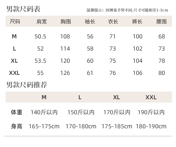 China (cm) 165 / 88-90 170 / 96-98 175 / 108-110 180 / 118-122 185 / 126-130