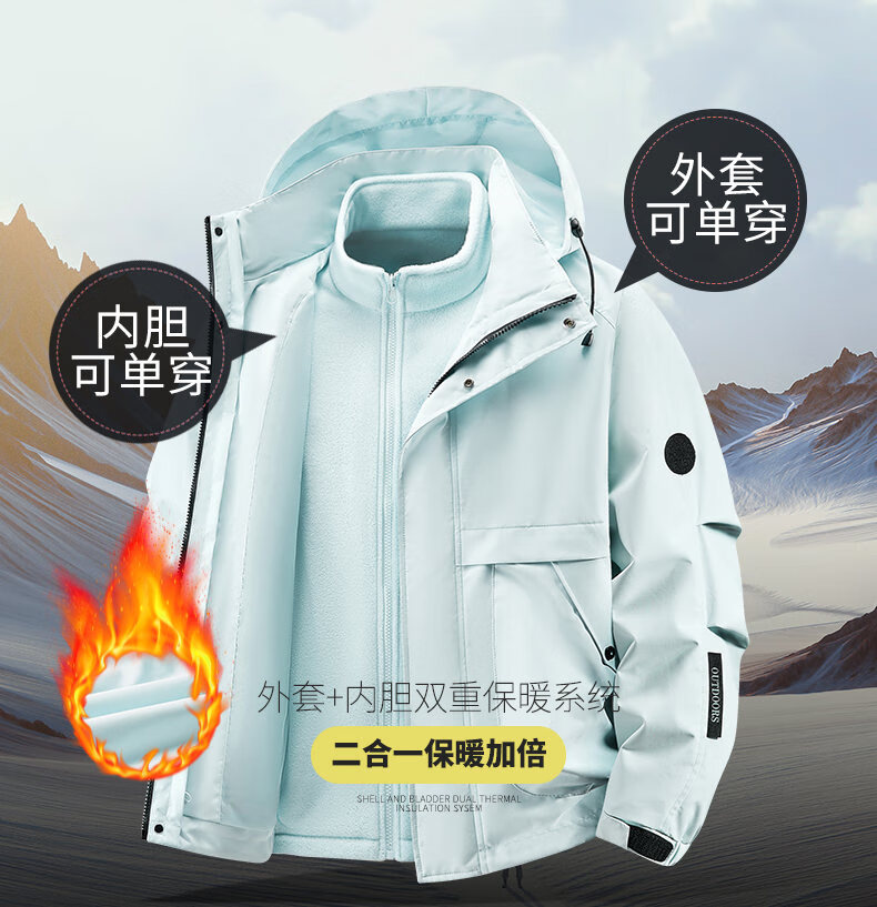 Men's and women's outdoor three-in-one jacket 2025 new windproof and waterproof autumn and winter jacket mountaineering jacket with liner black XL